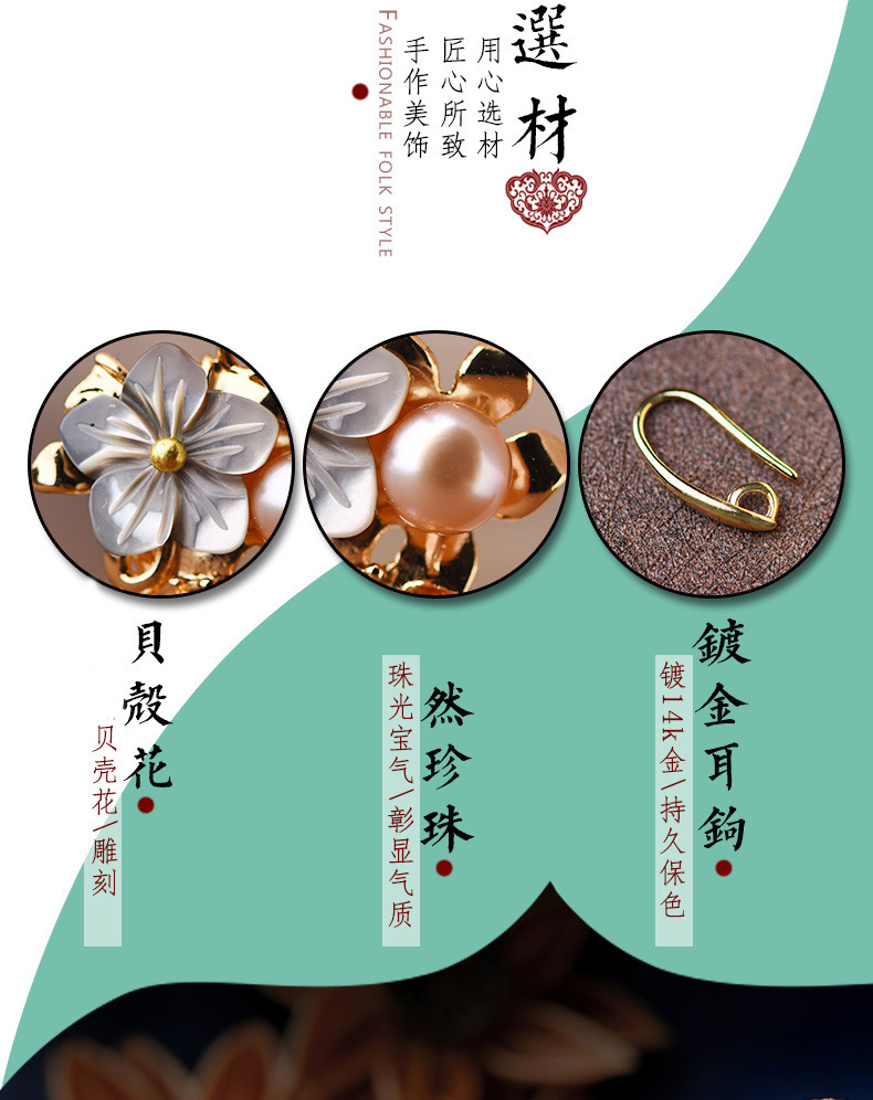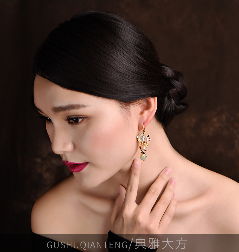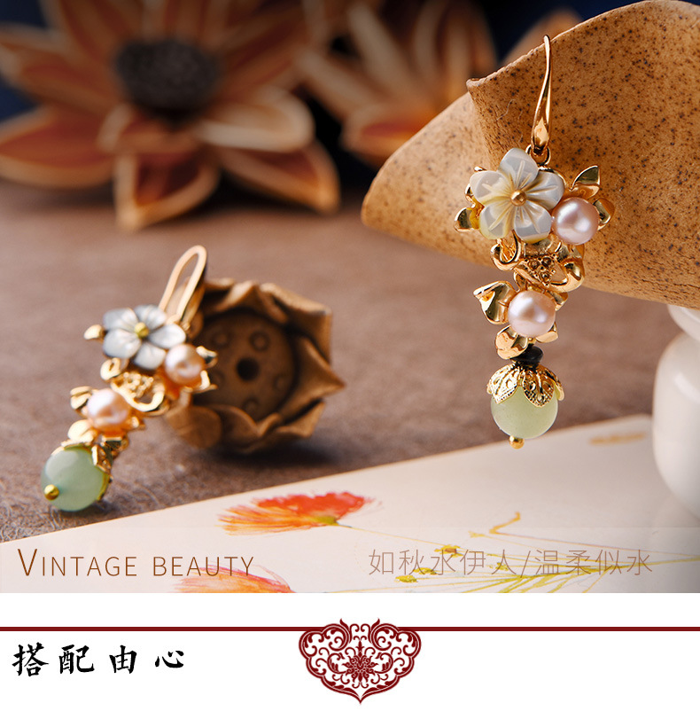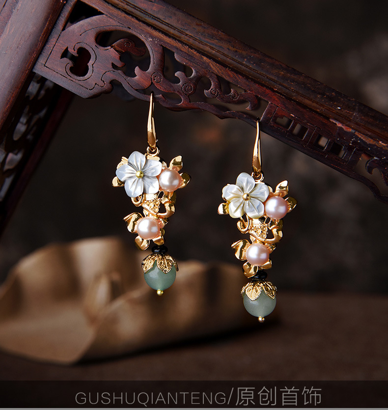 JGL-03220058原创古风耳环长款耳环珍珠耳坠个性中国风耳饰耳环女