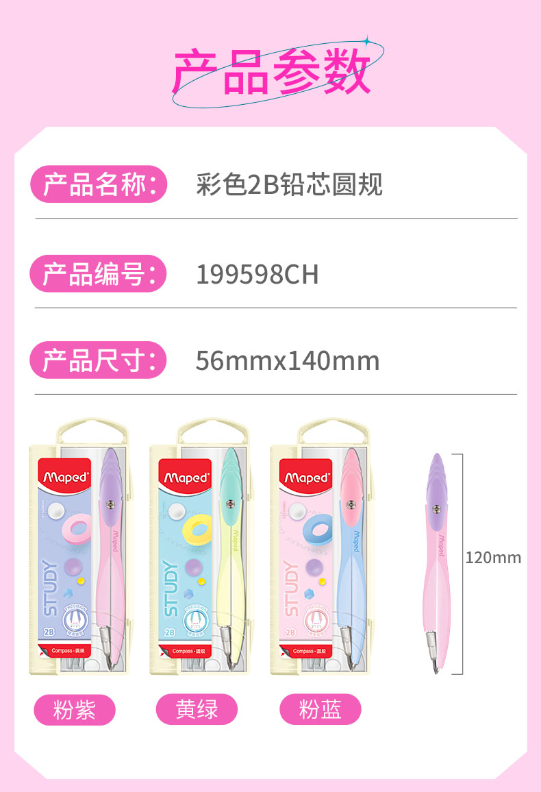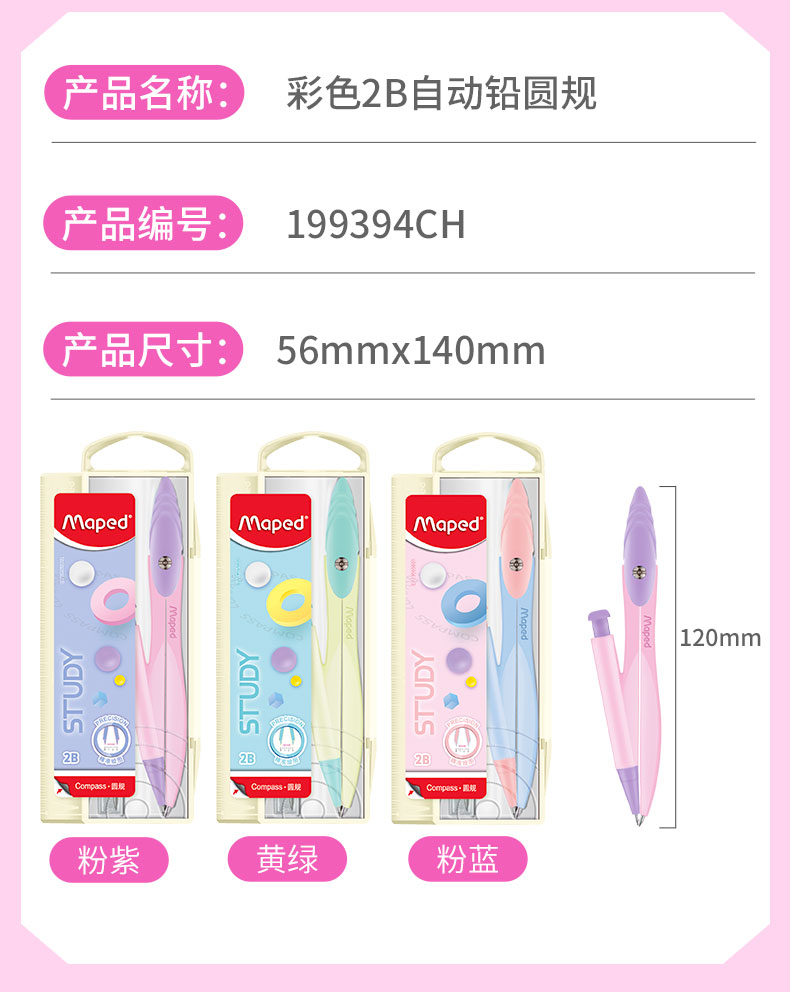 法国马培德彩色 2B自动铅圆规 学生圆规