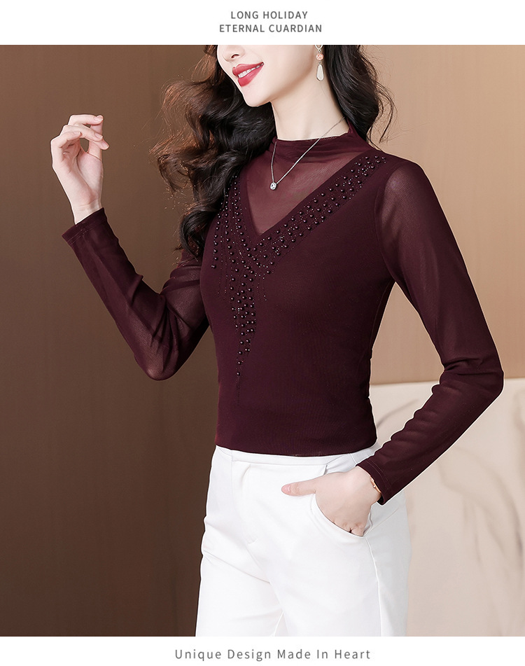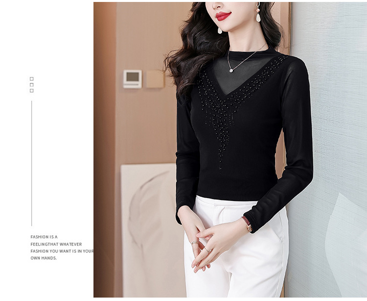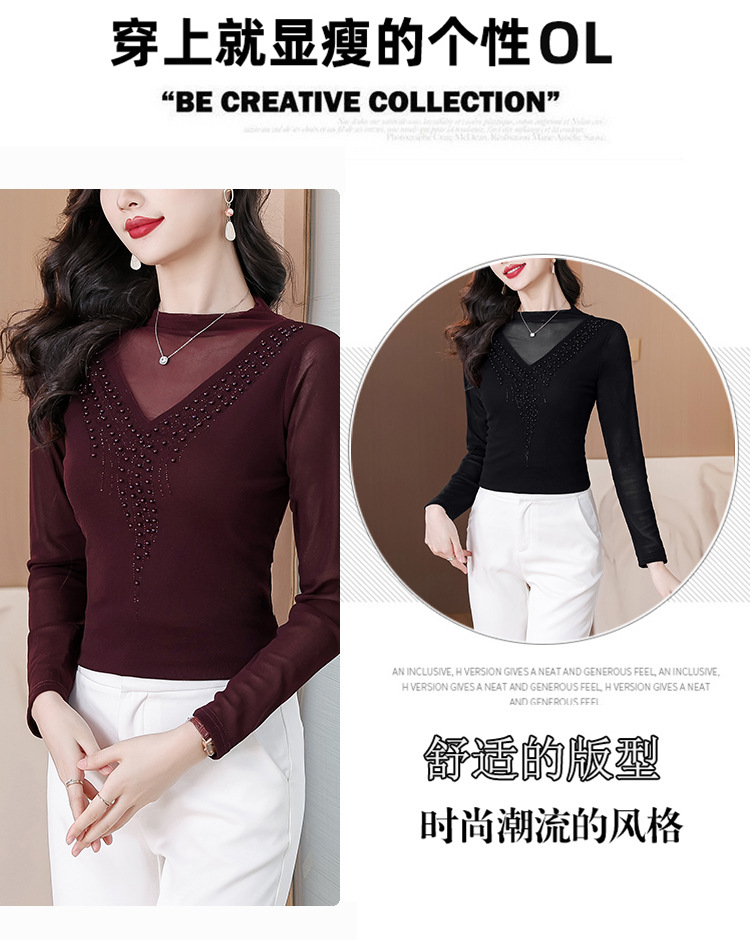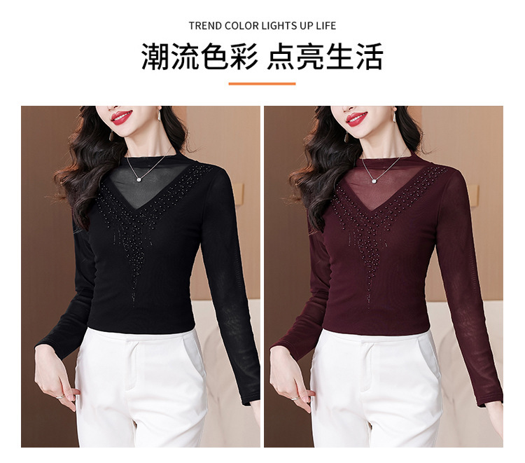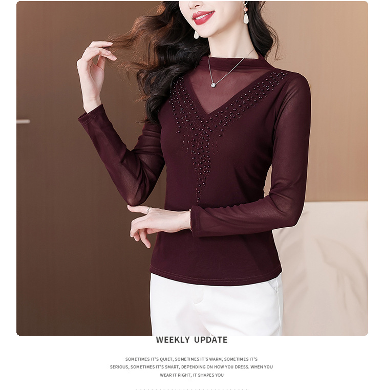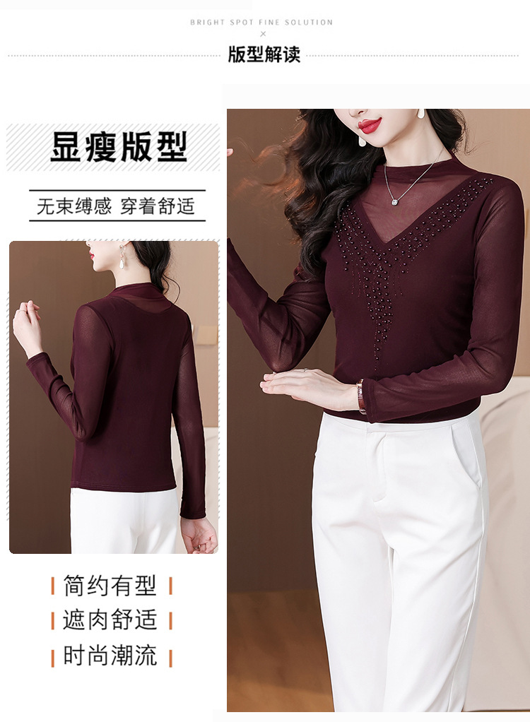 打底衫网纱烫钻,气质洋气妈妈装显瘦长袖上衣KQL-D36M8318