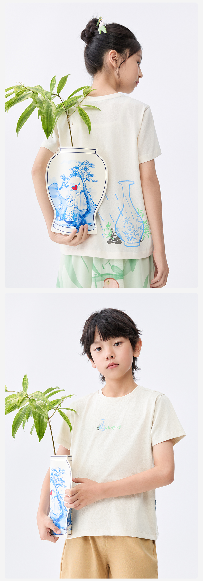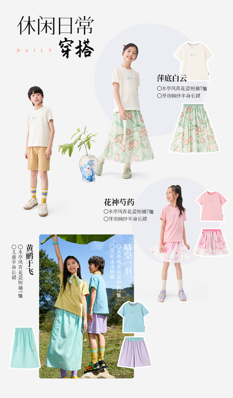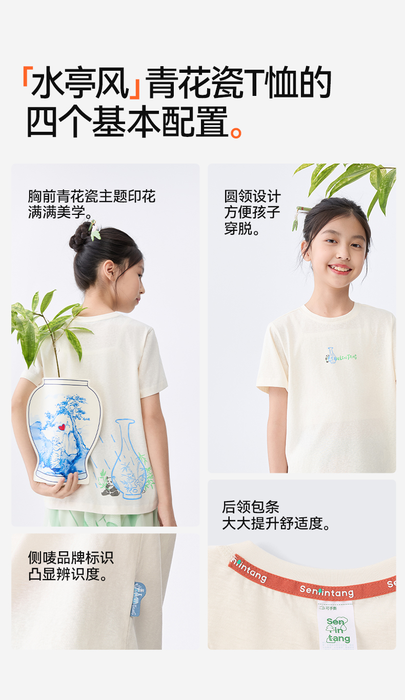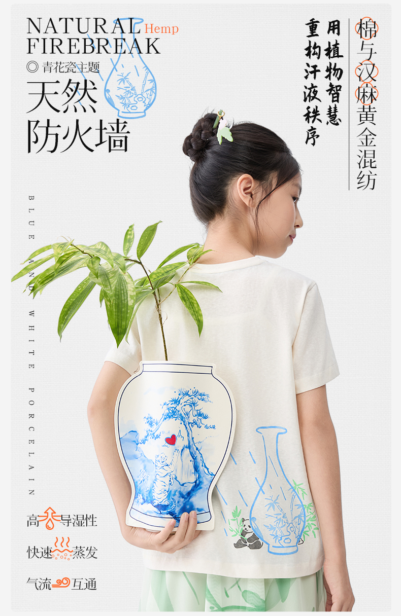 【水亭风青花瓷短袖T恤】森林棠25夏款儿童清凉透气轻奢汉麻亲子款短袖40322515