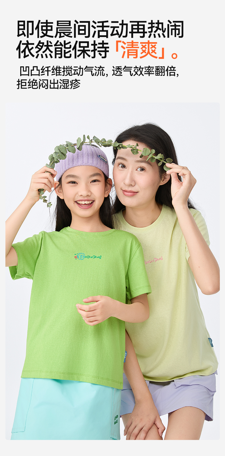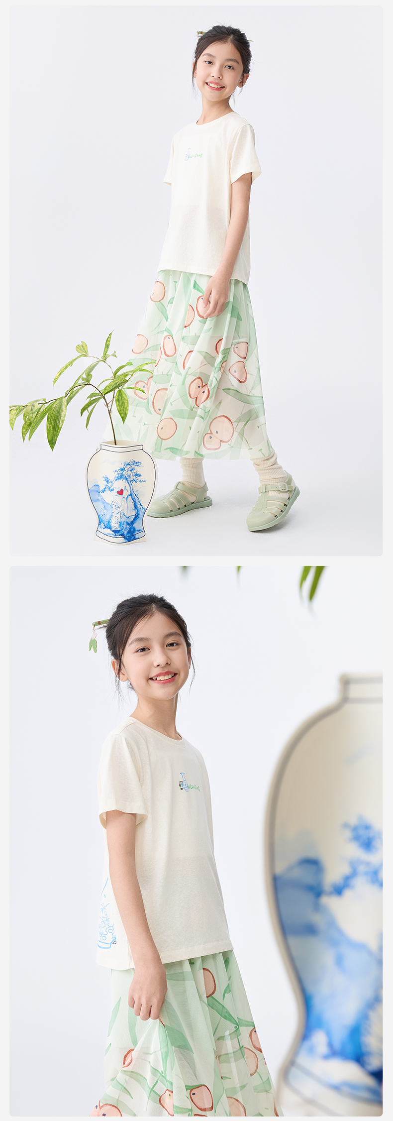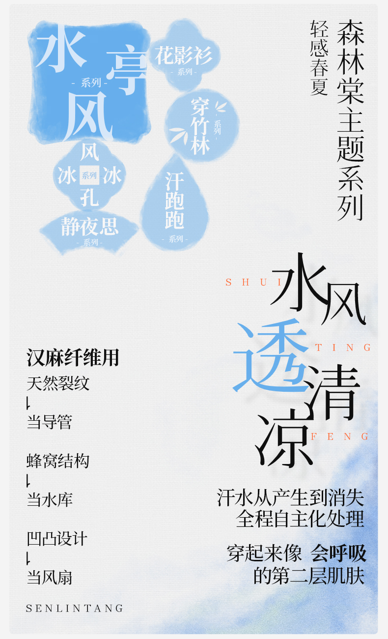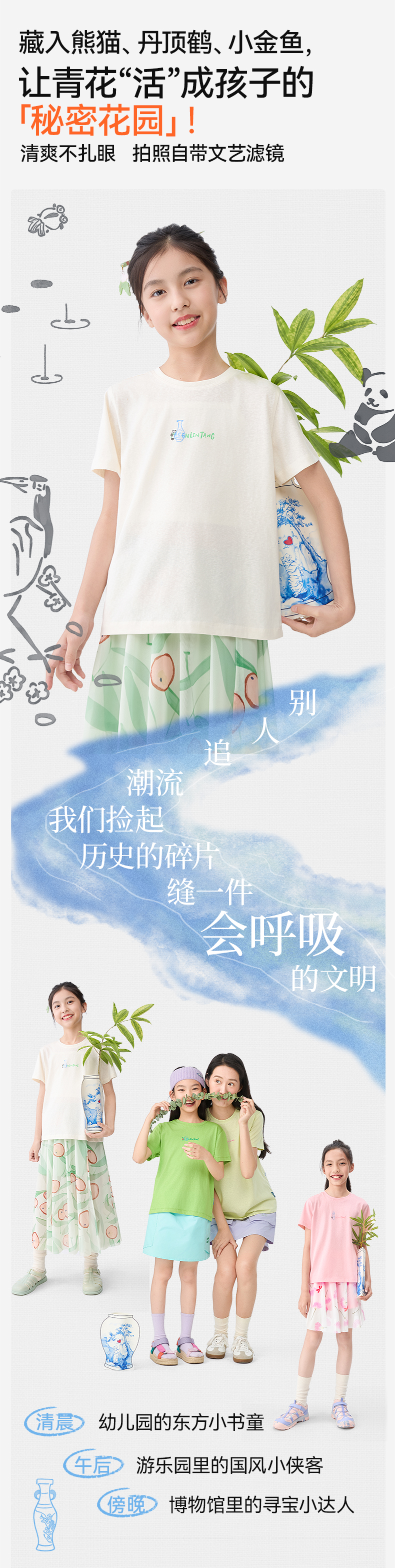 【水亭风青花瓷短袖T恤】森林棠25夏款儿童清凉透气轻奢汉麻亲子款短袖40322515