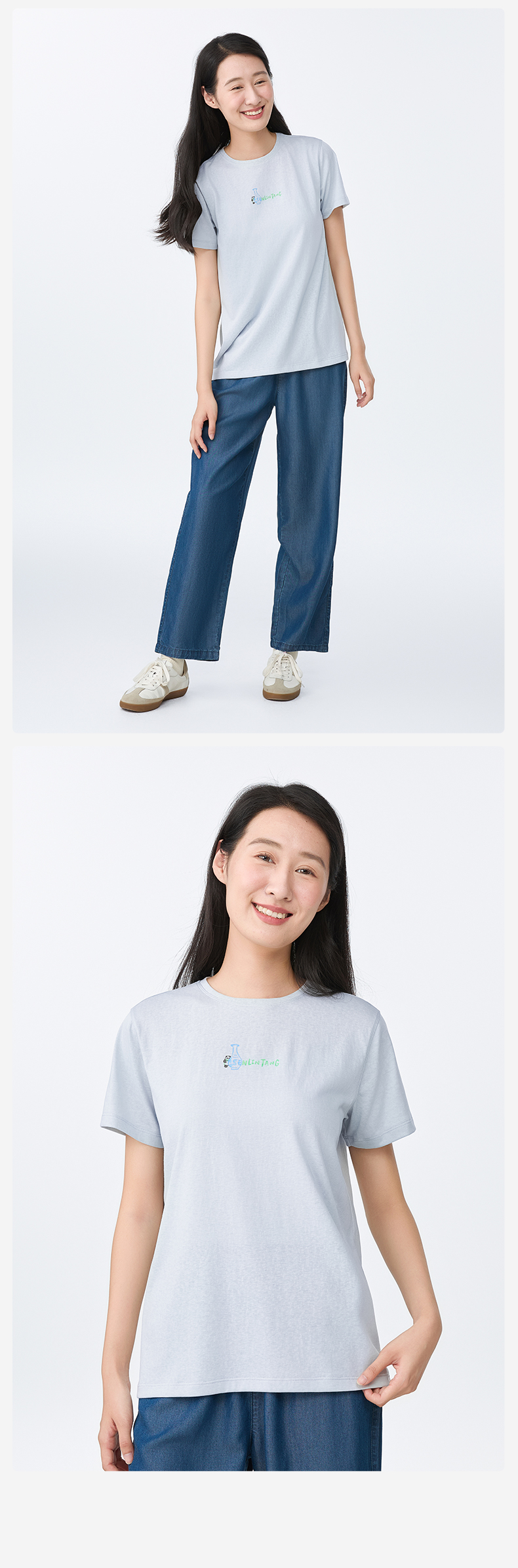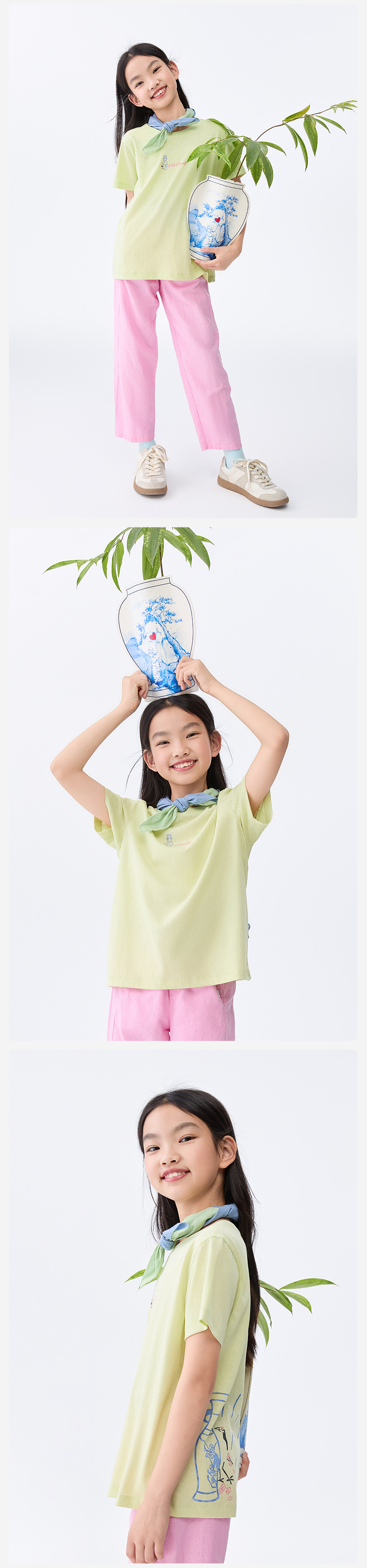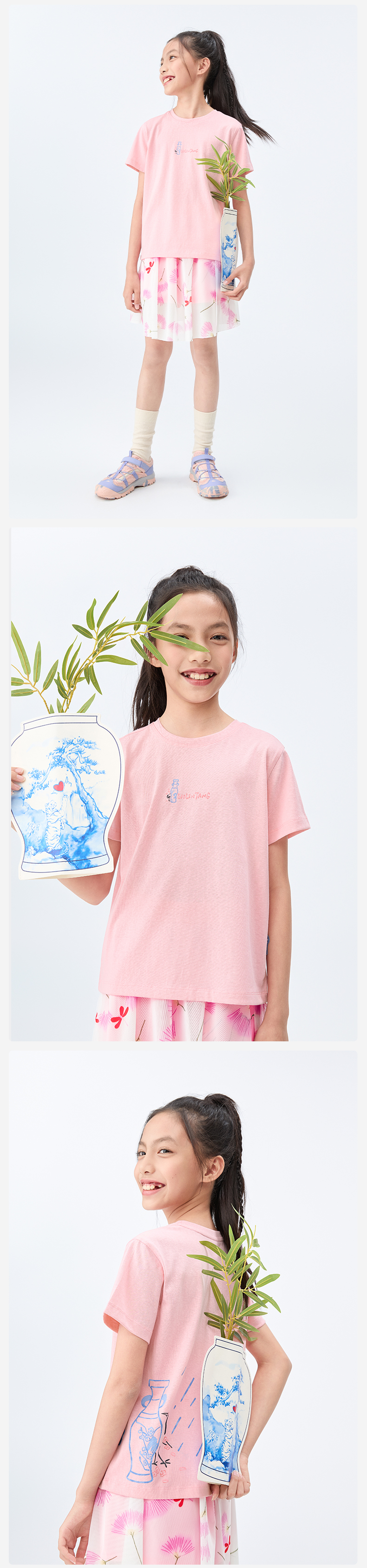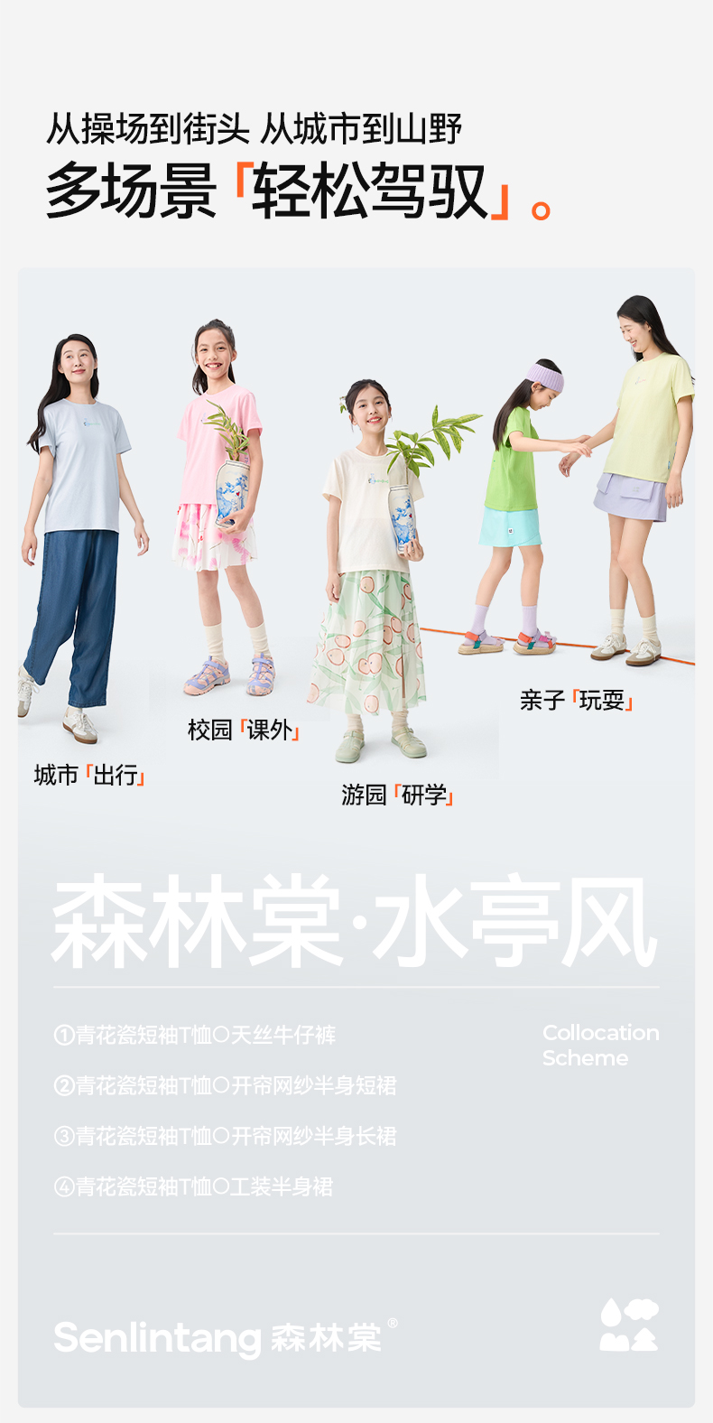 【水亭风青花瓷短袖T恤】森林棠25夏款儿童清凉透气轻奢汉麻亲子款短袖40322515