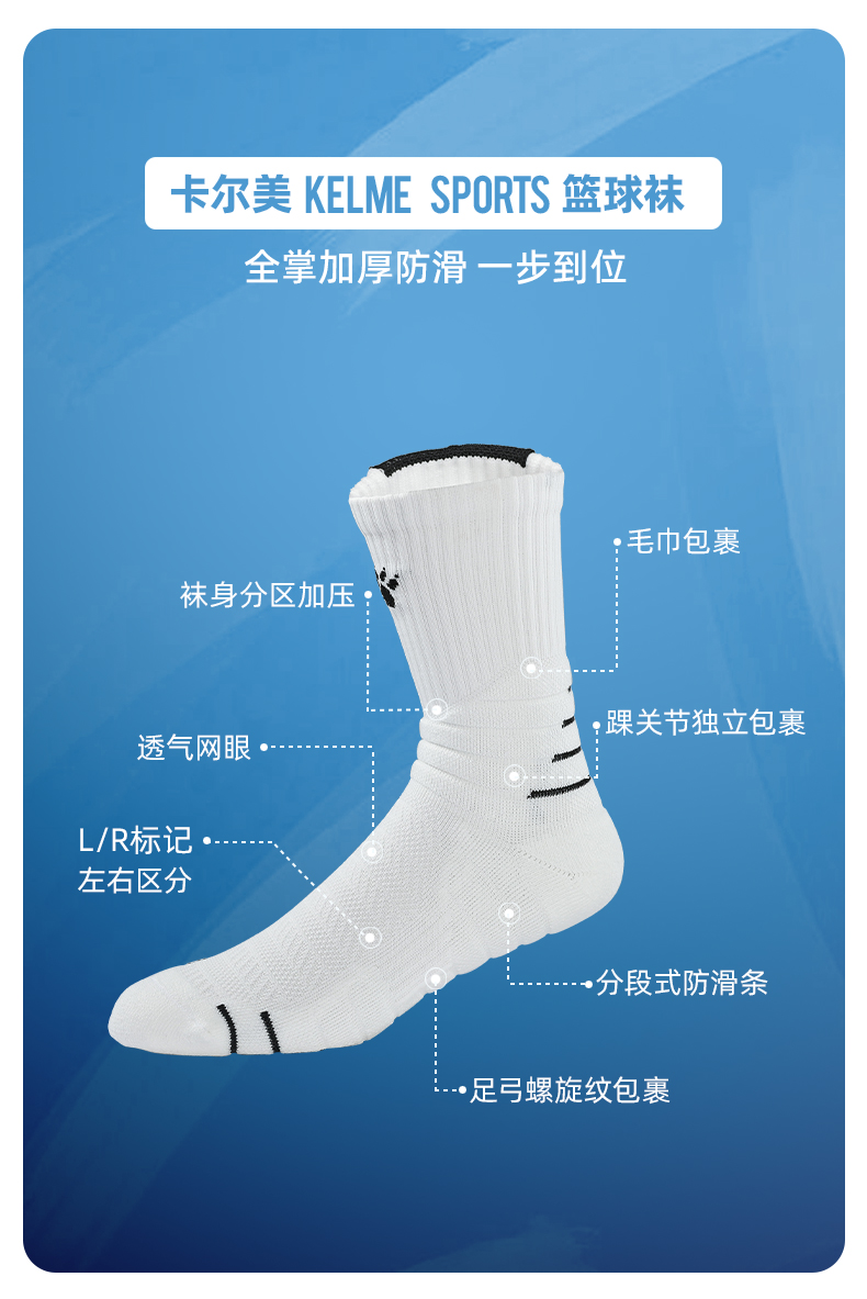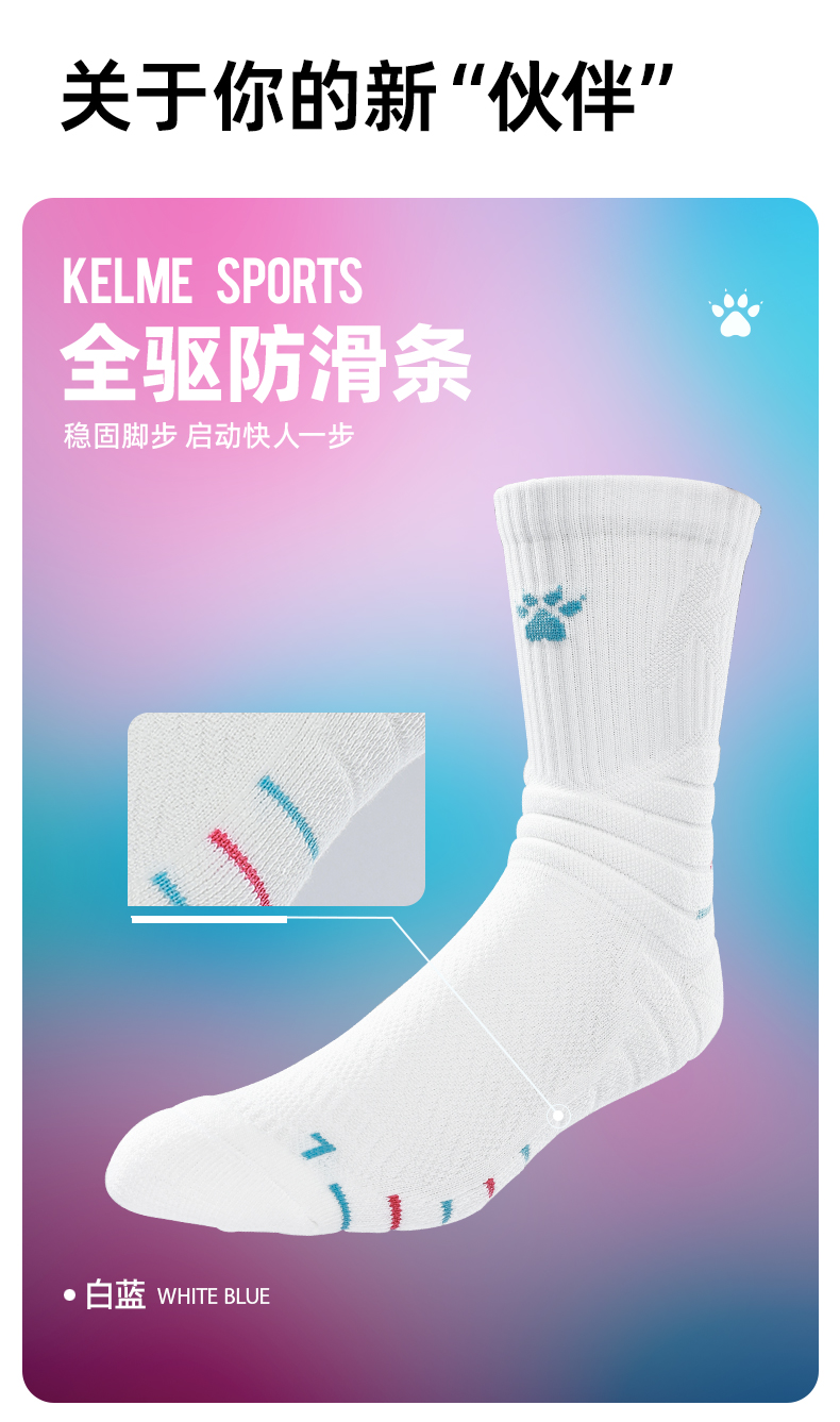 卡尔美舒适运动长筒篮球袜实战