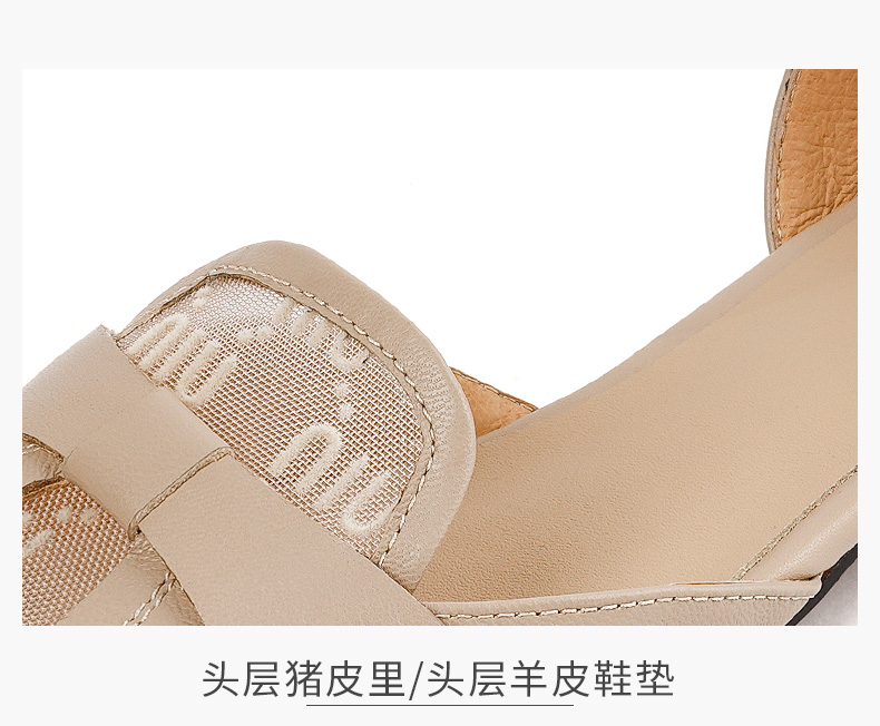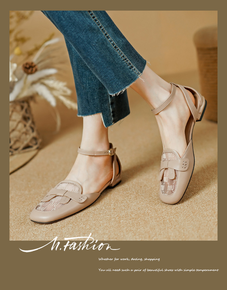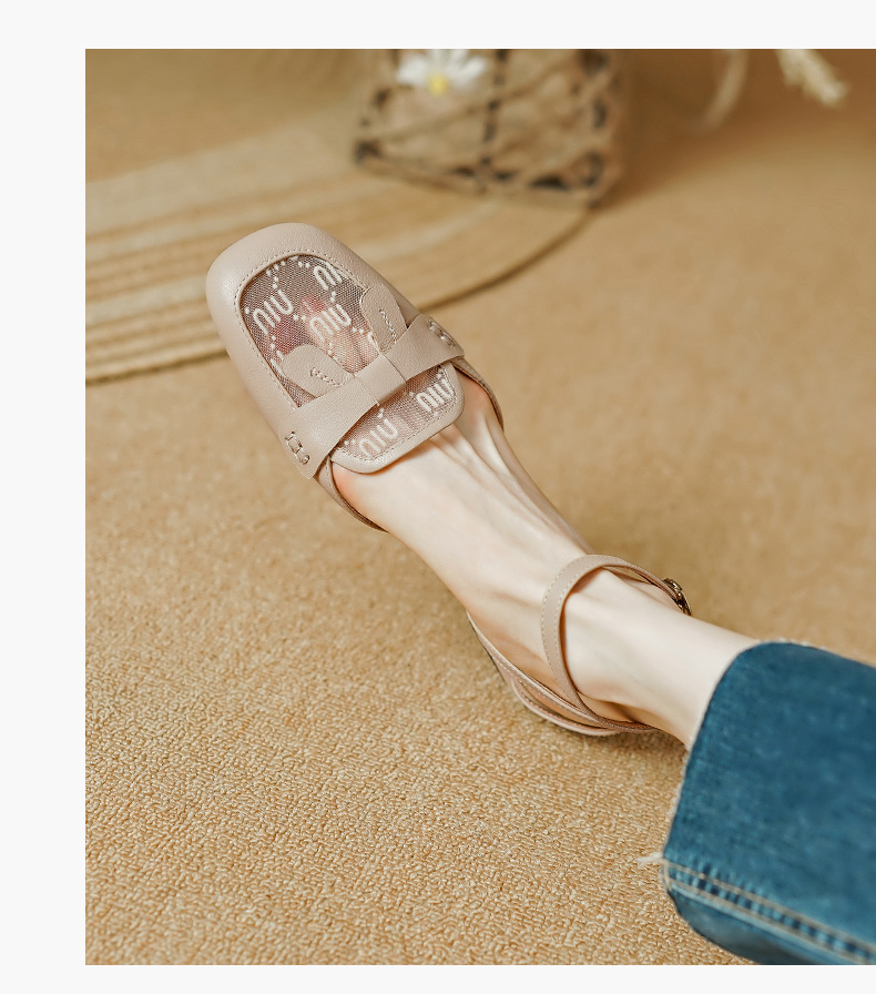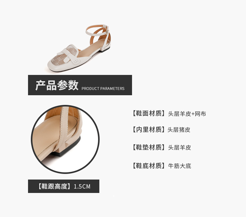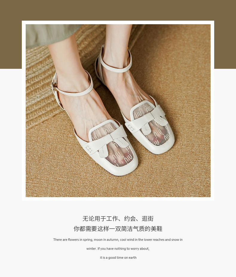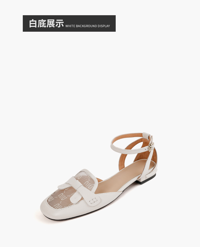 优雅百搭,里外全头层皮拼接网纱平底凉鞋PS1368