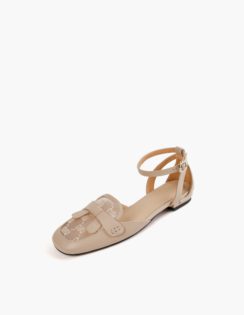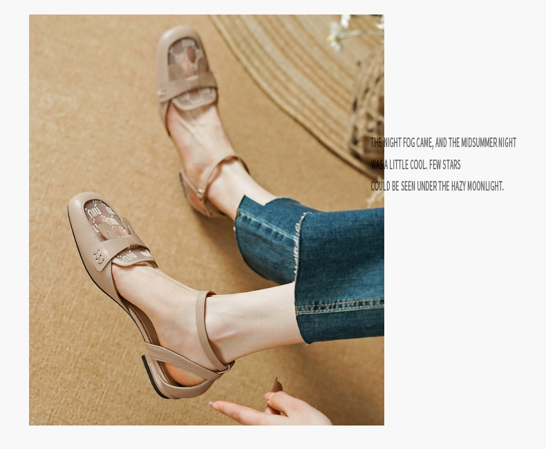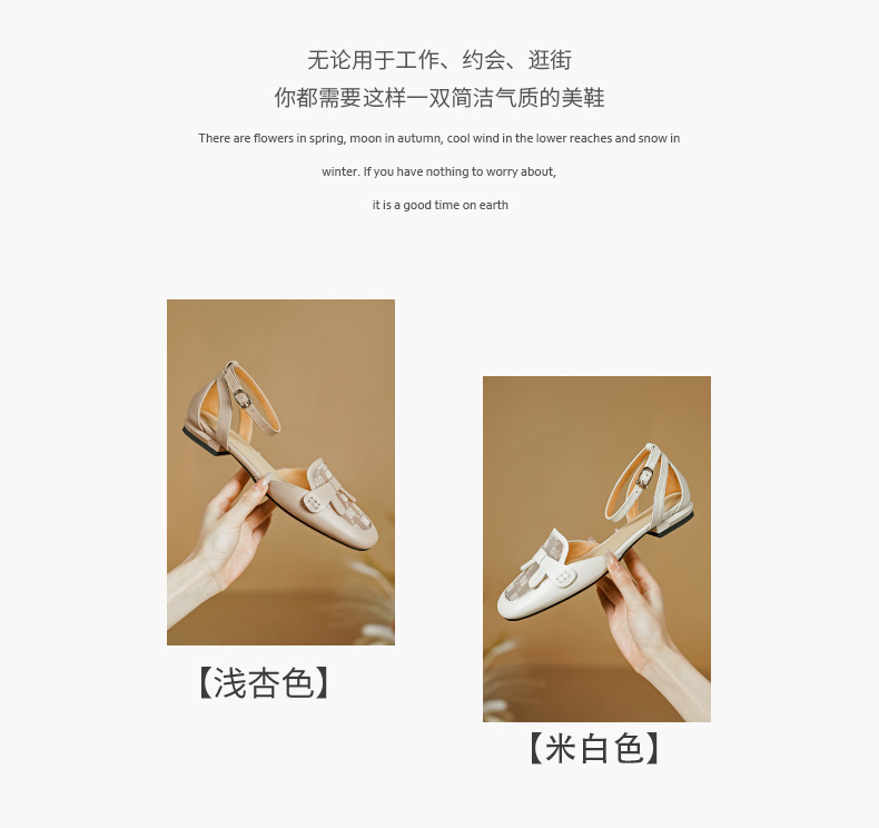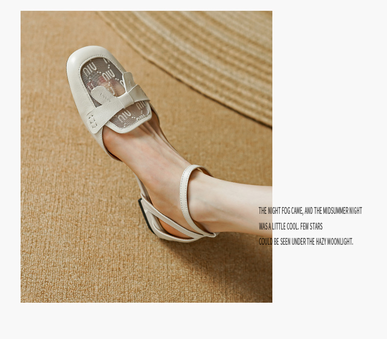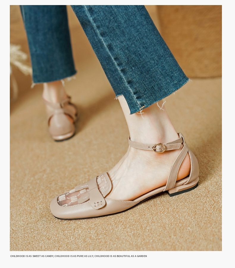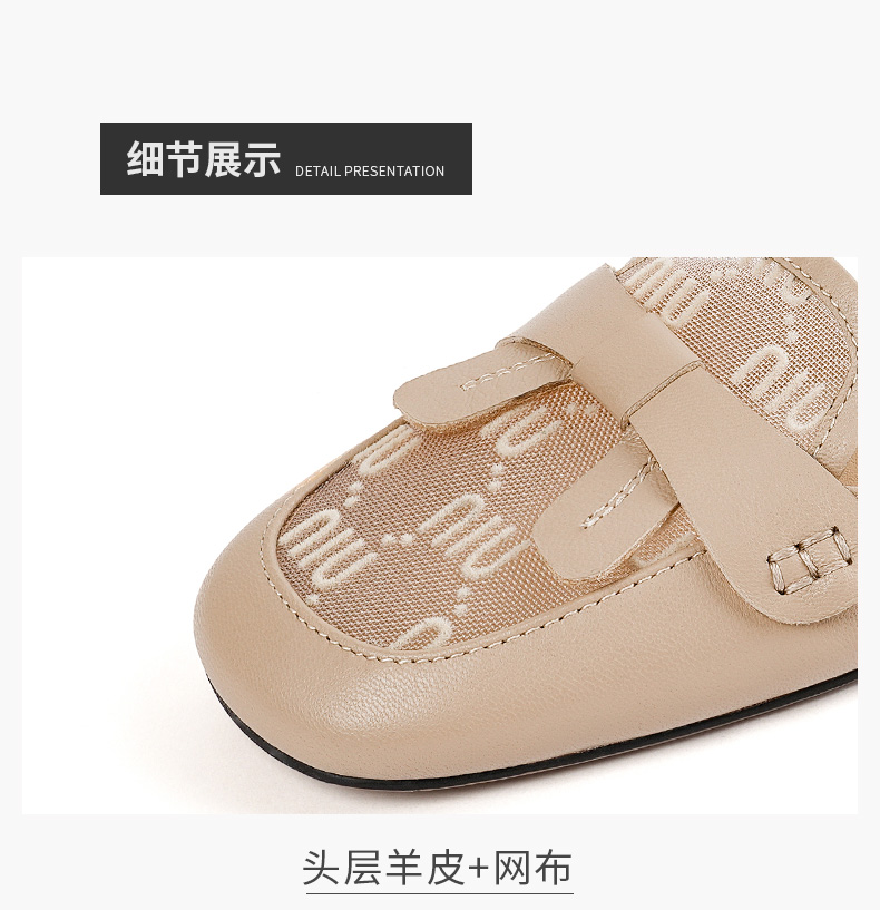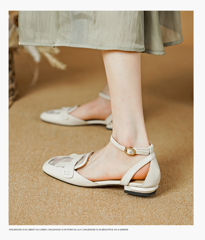 优雅百搭,里外全头层皮拼接网纱平底凉鞋PS1368