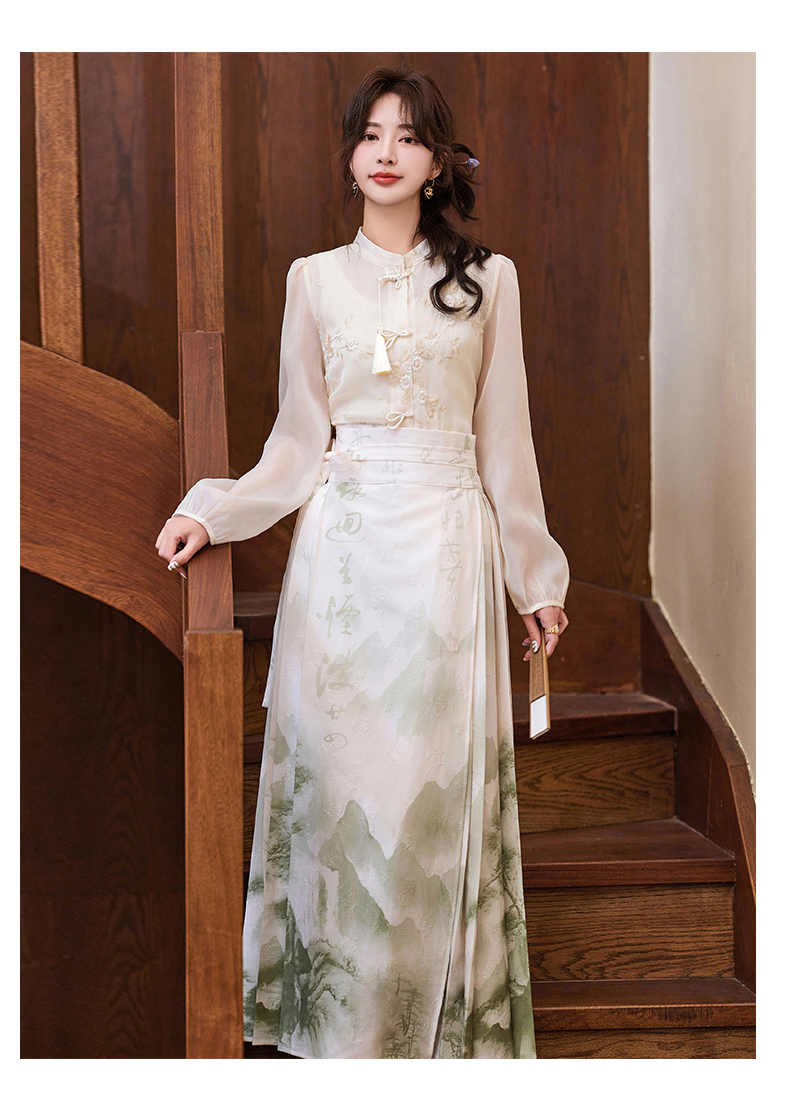 春夏季新款,民族风绣花衬衫+古典长裙两件套HR-BLKE9907