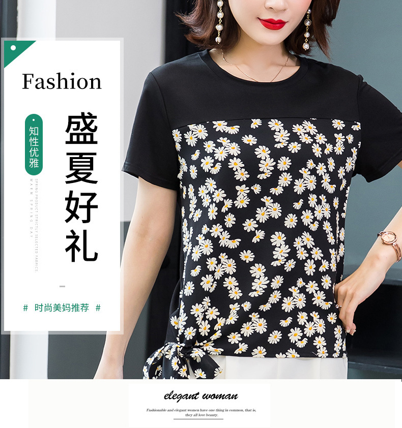 MQ-1099-2026夏装新款宽松娃娃领短袖印花雪纺衫YY