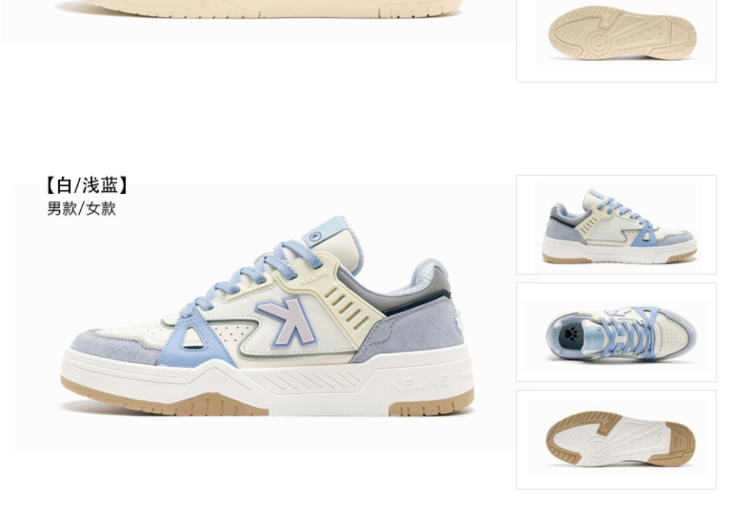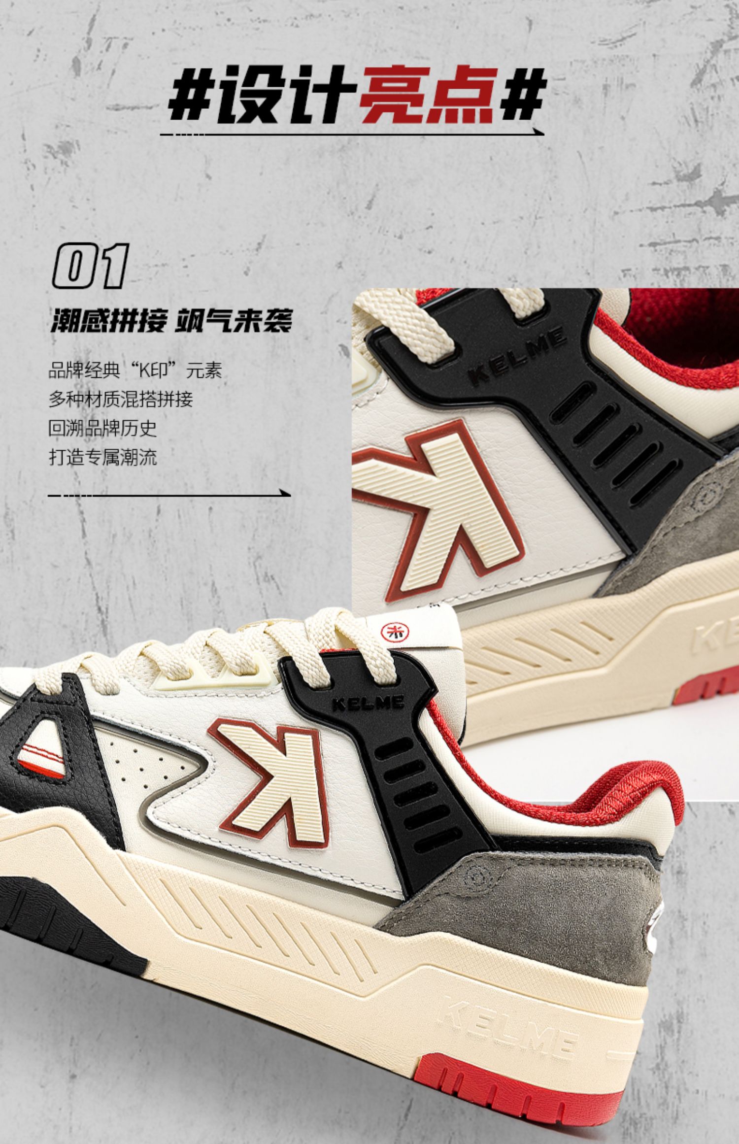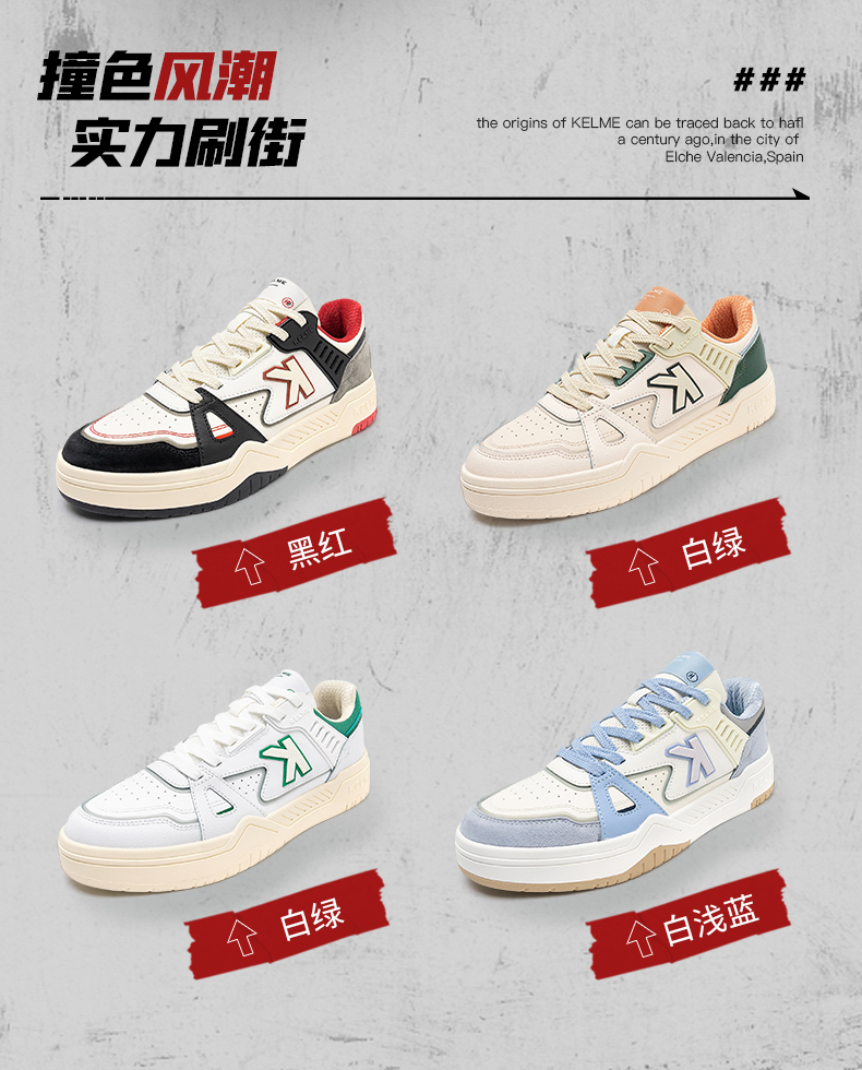 KELME卡尔美男休闲鞋情侣板鞋厚底运动鞋拼接春小白鞋