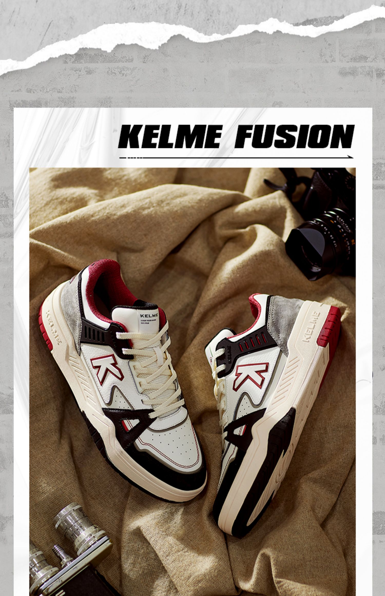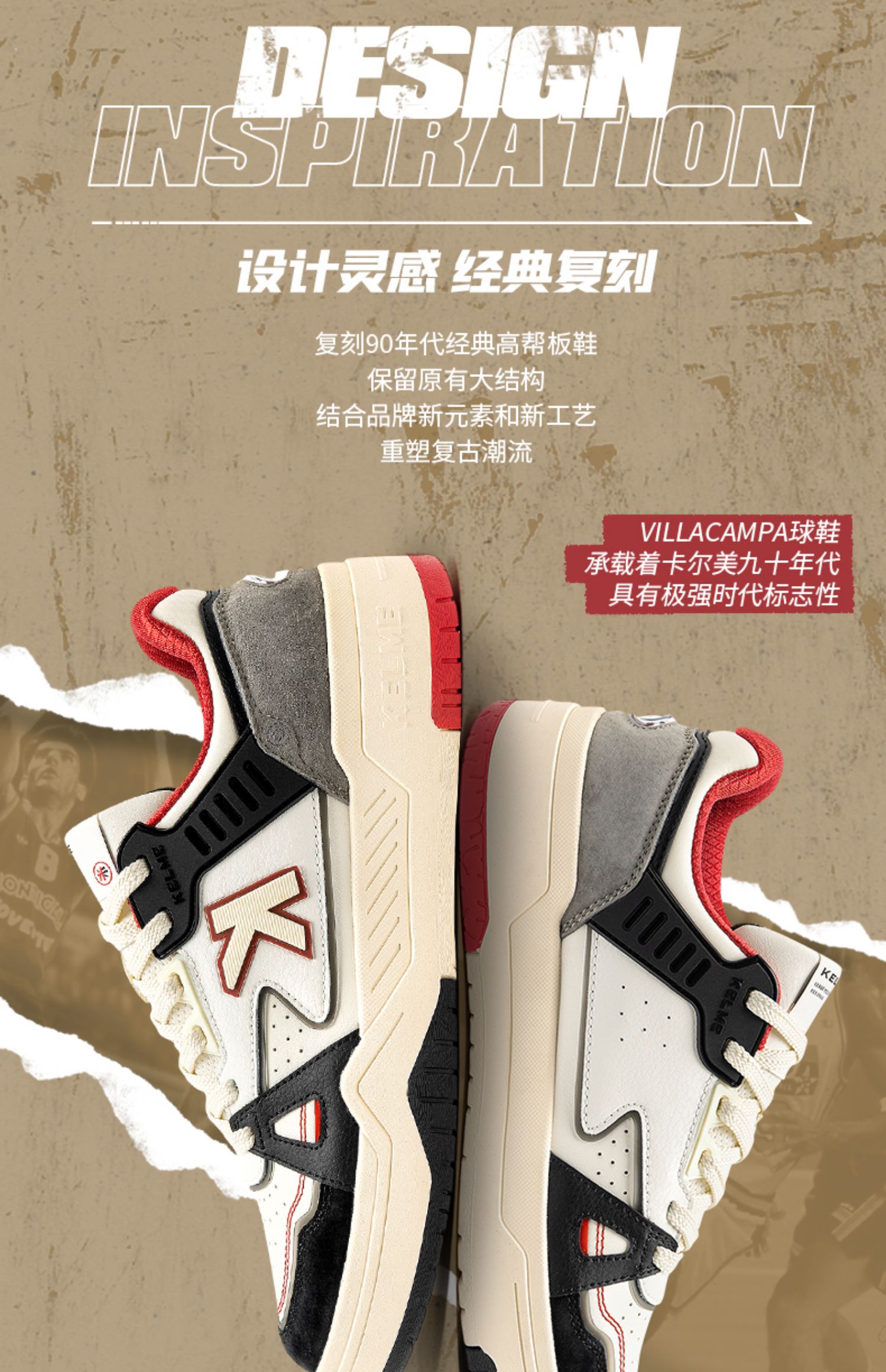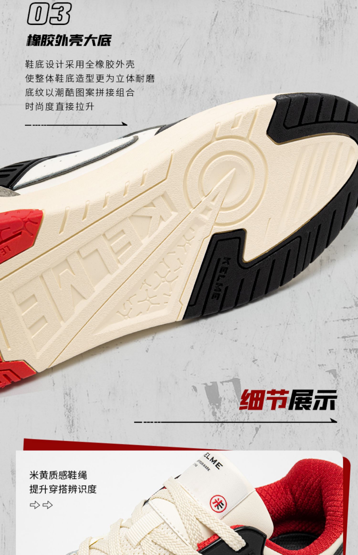 KELME卡尔美男休闲鞋情侣板鞋厚底运动鞋拼接春小白鞋