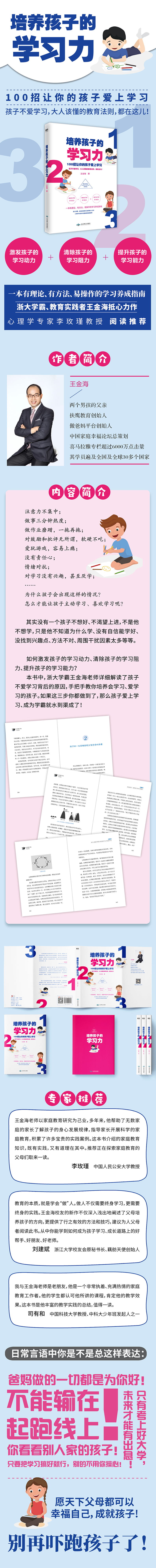 本书中,浙大学霸王金海老师详细解读了孩子不爱学习背后的原因,手把手教你培养会学习、爱学习的孩子。如果这三步你都做到了,那么孩子爱上学习、成为学霸就水到渠成了!