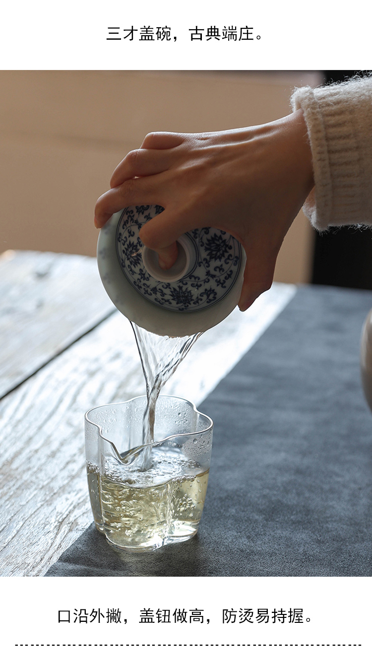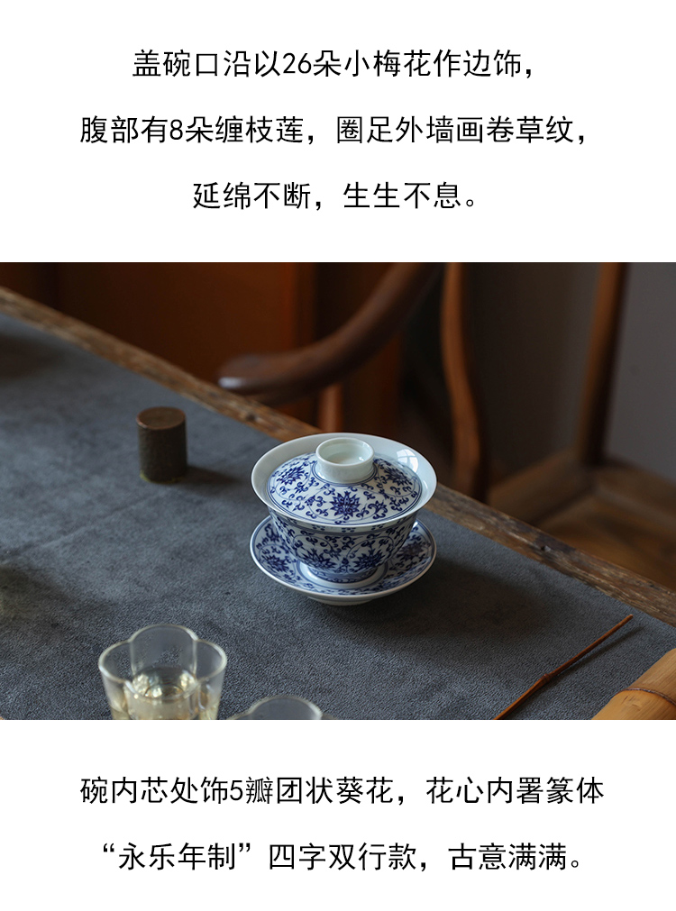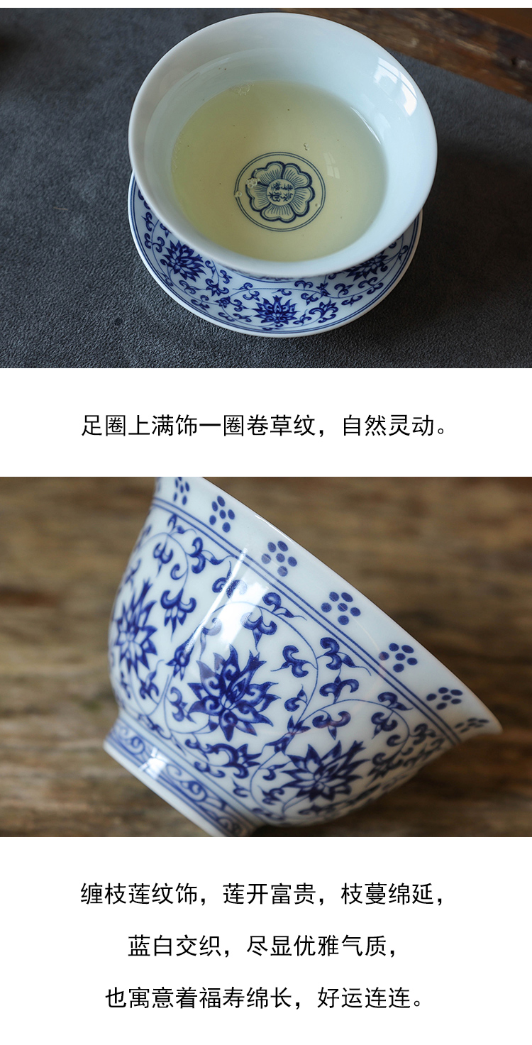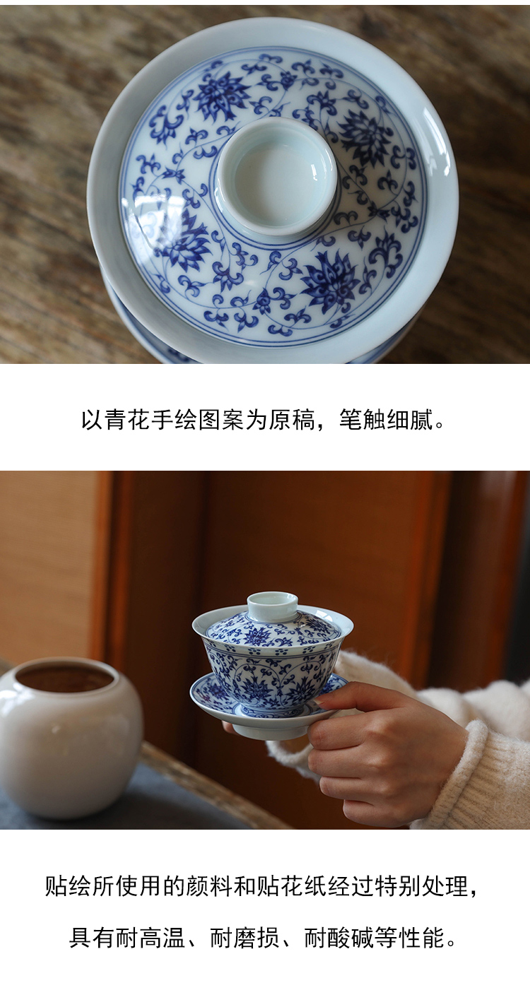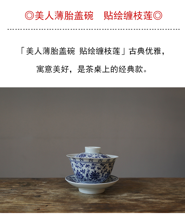 茶香记 美人薄胎盖碗贴绘缠枝莲120ml景德镇陶瓷三才盖碗功夫茶具
