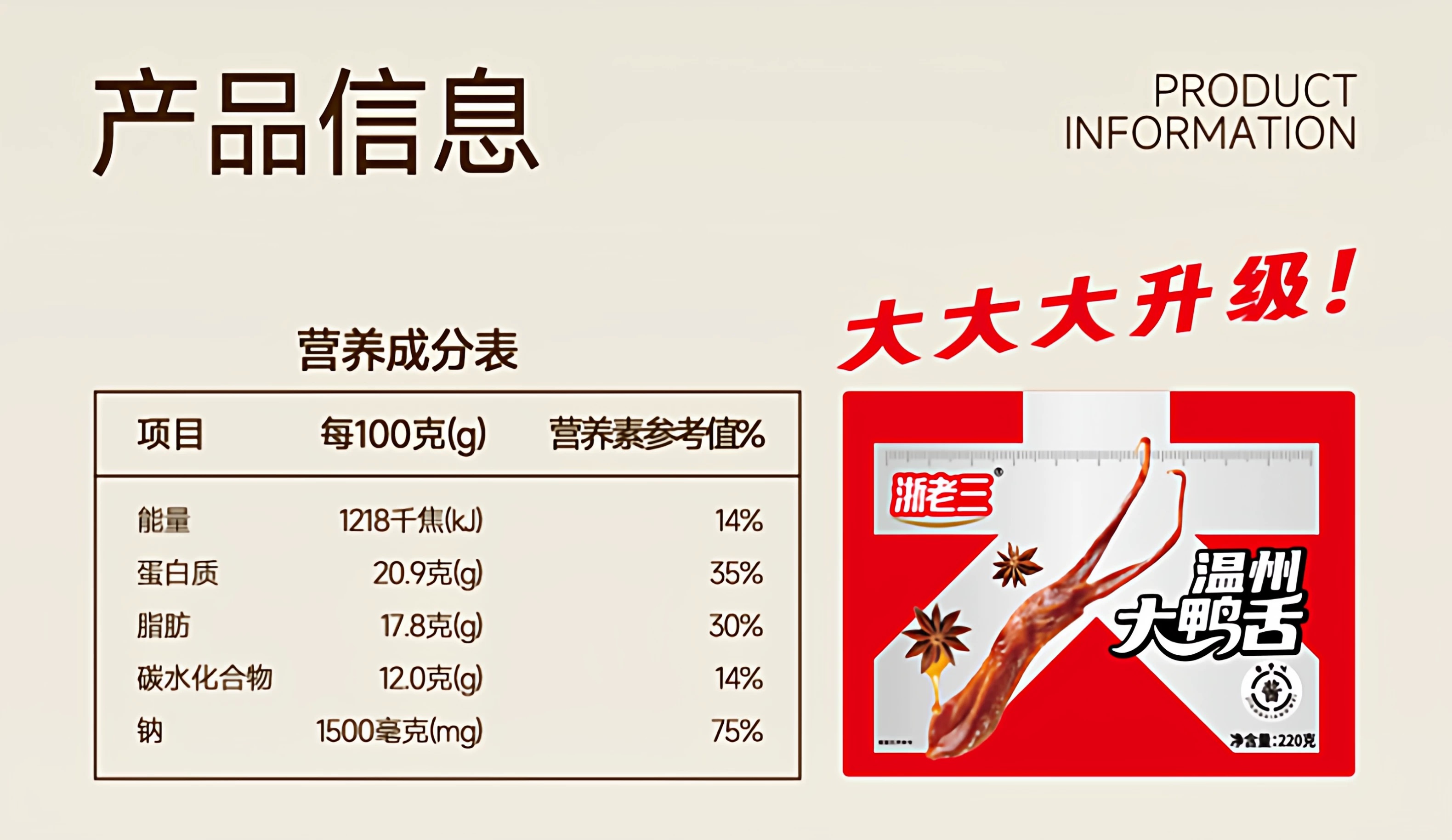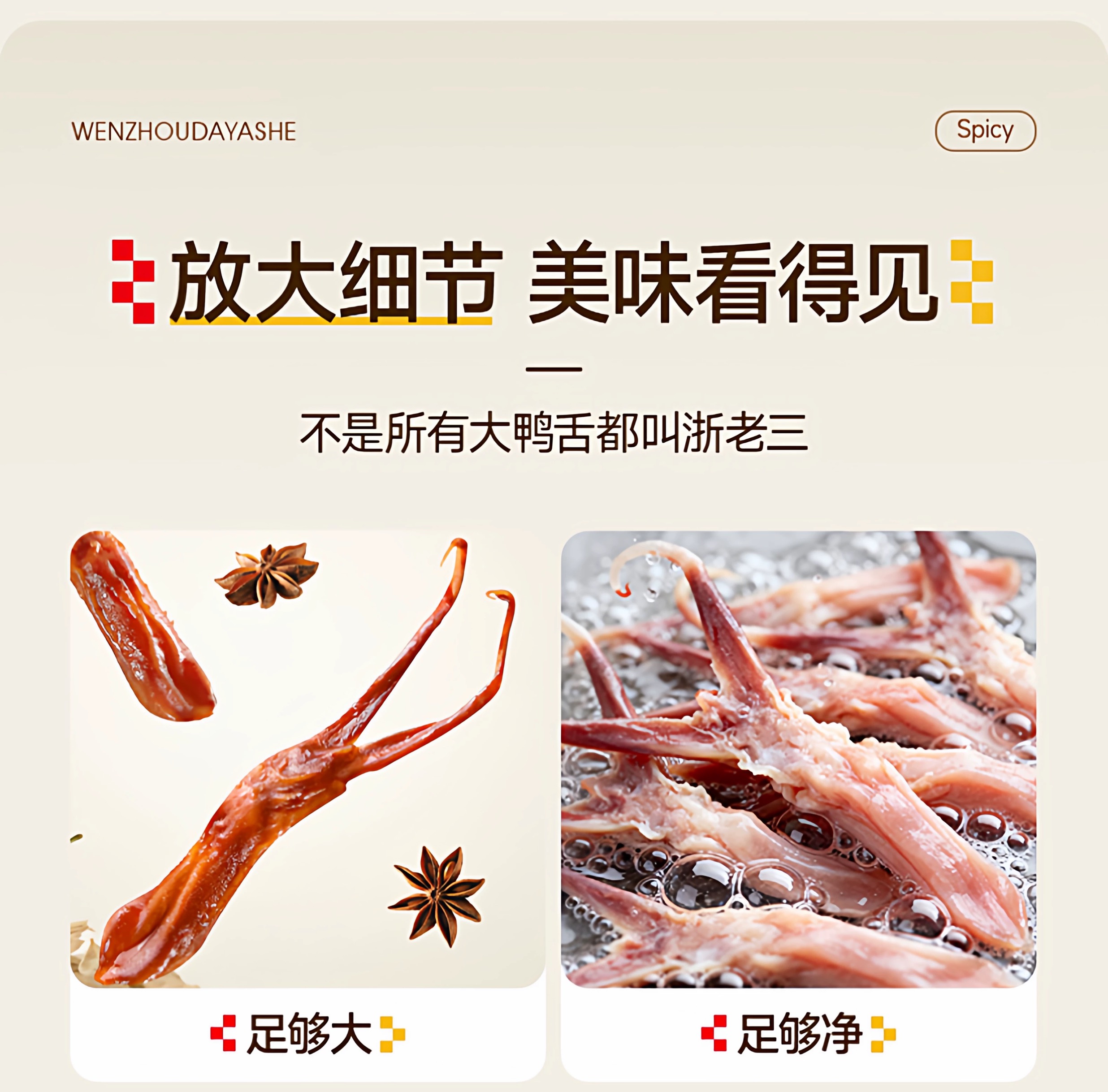 【个大肉厚】开袋即食正宗温州鸭舌浙老三 肉质鲜嫩弹牙 饱满多汁 浓香四溢 220g/包