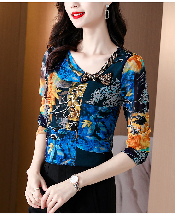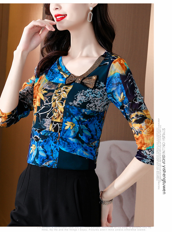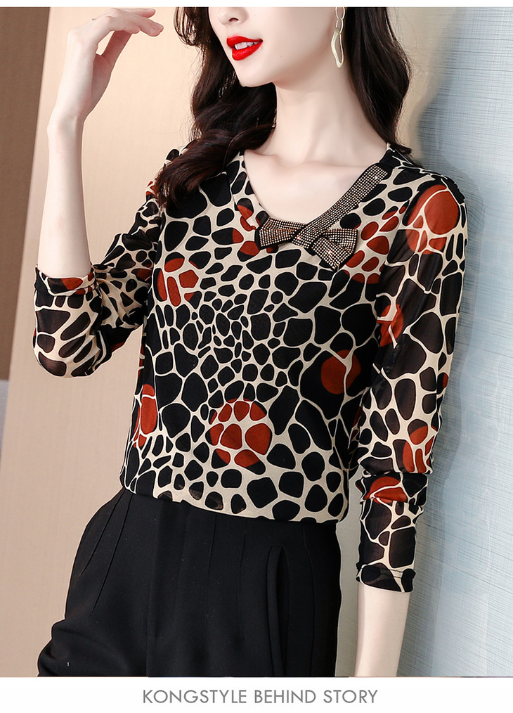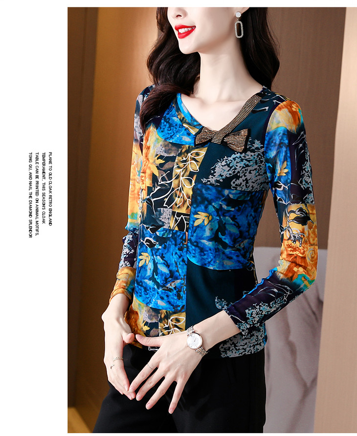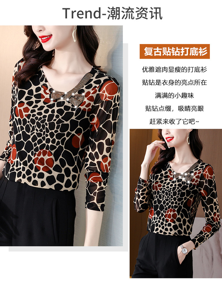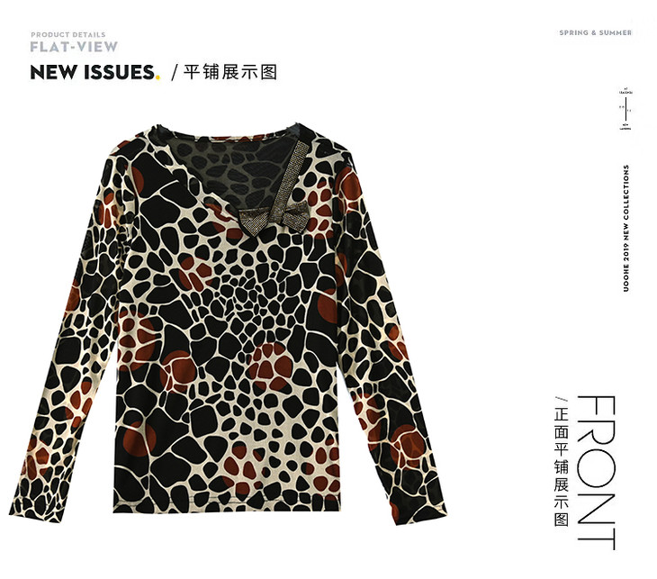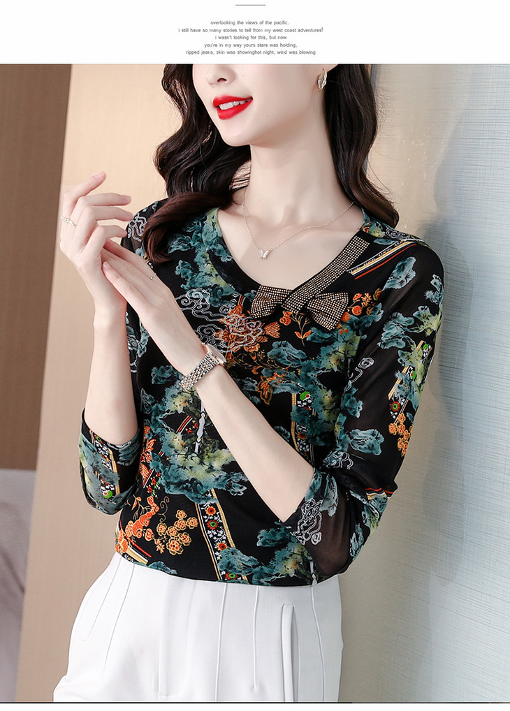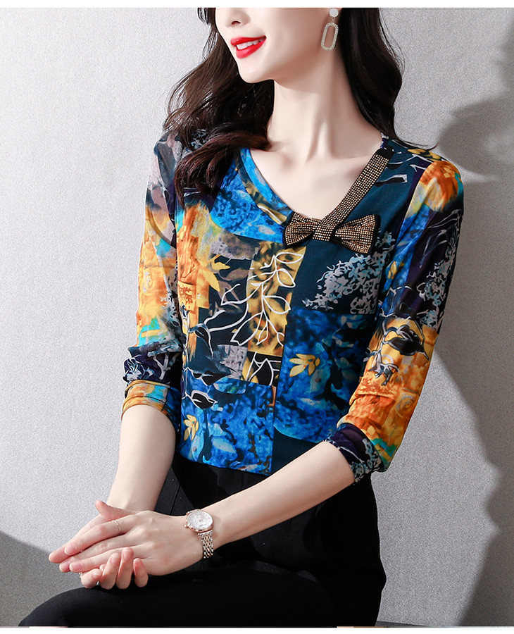KQL 210H826秋季弹力V领镶钻修身显瘦减龄小衫【薄款】