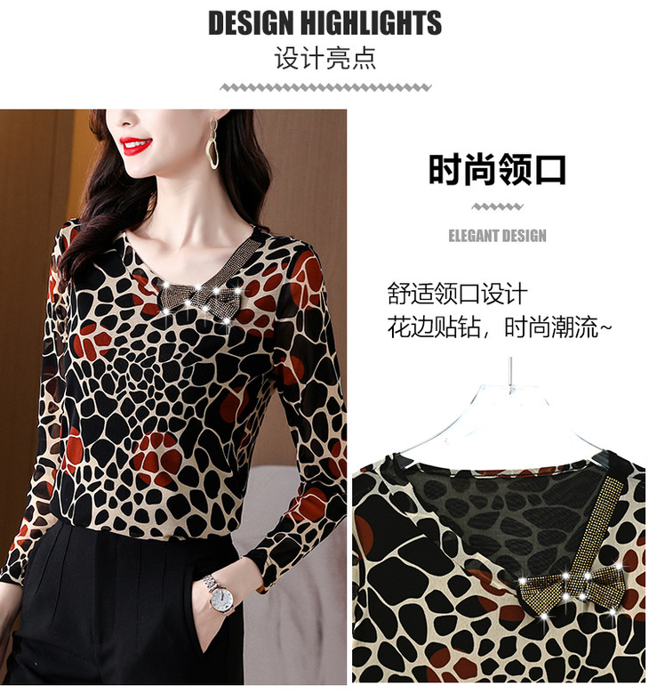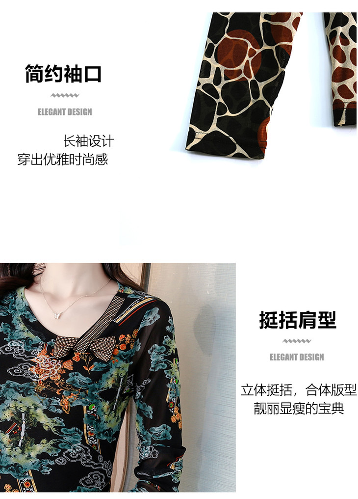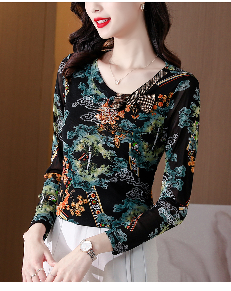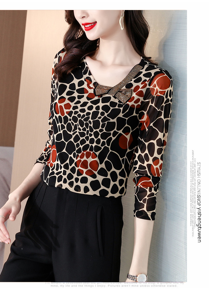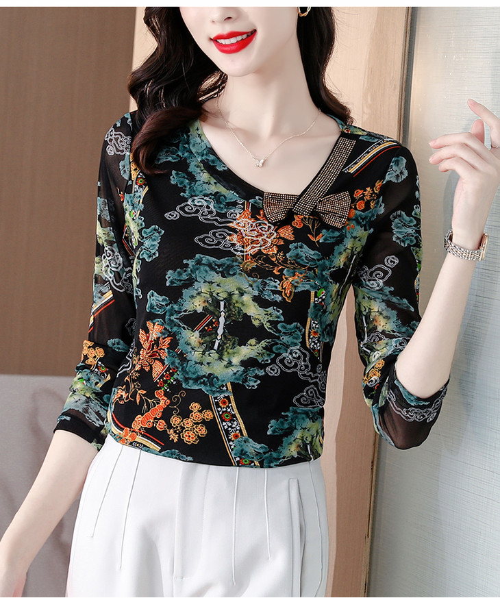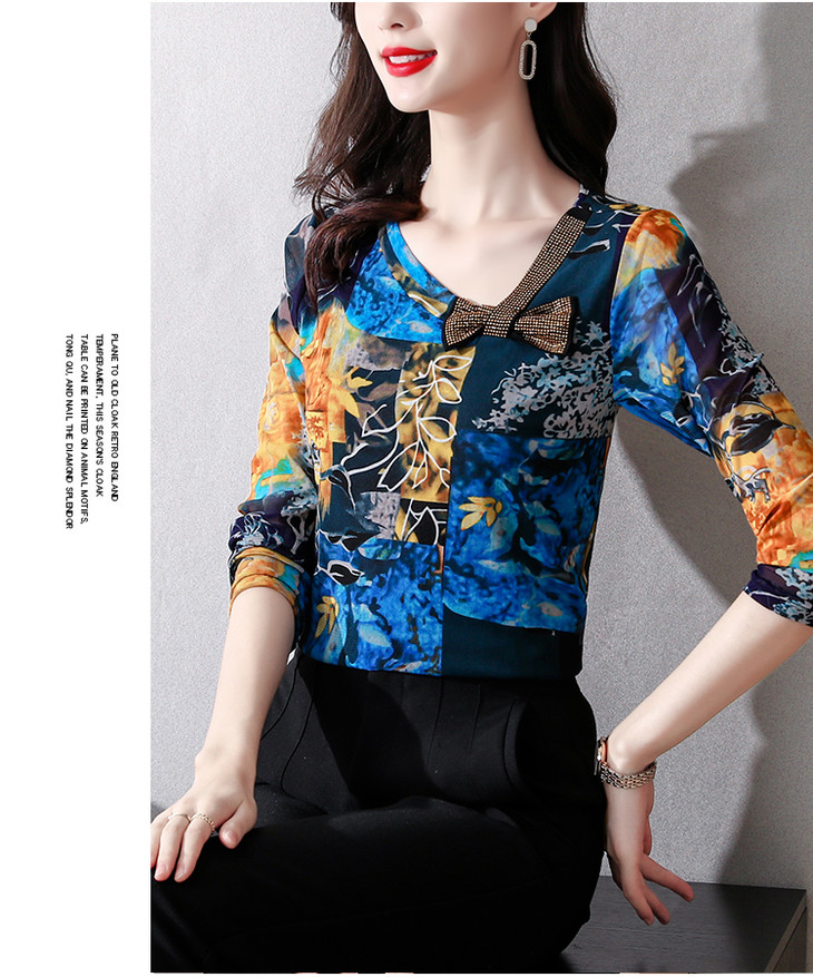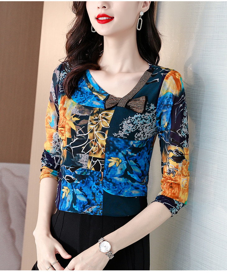 KQL 210H826秋季弹力V领镶钻修身显瘦减龄小衫【薄款】