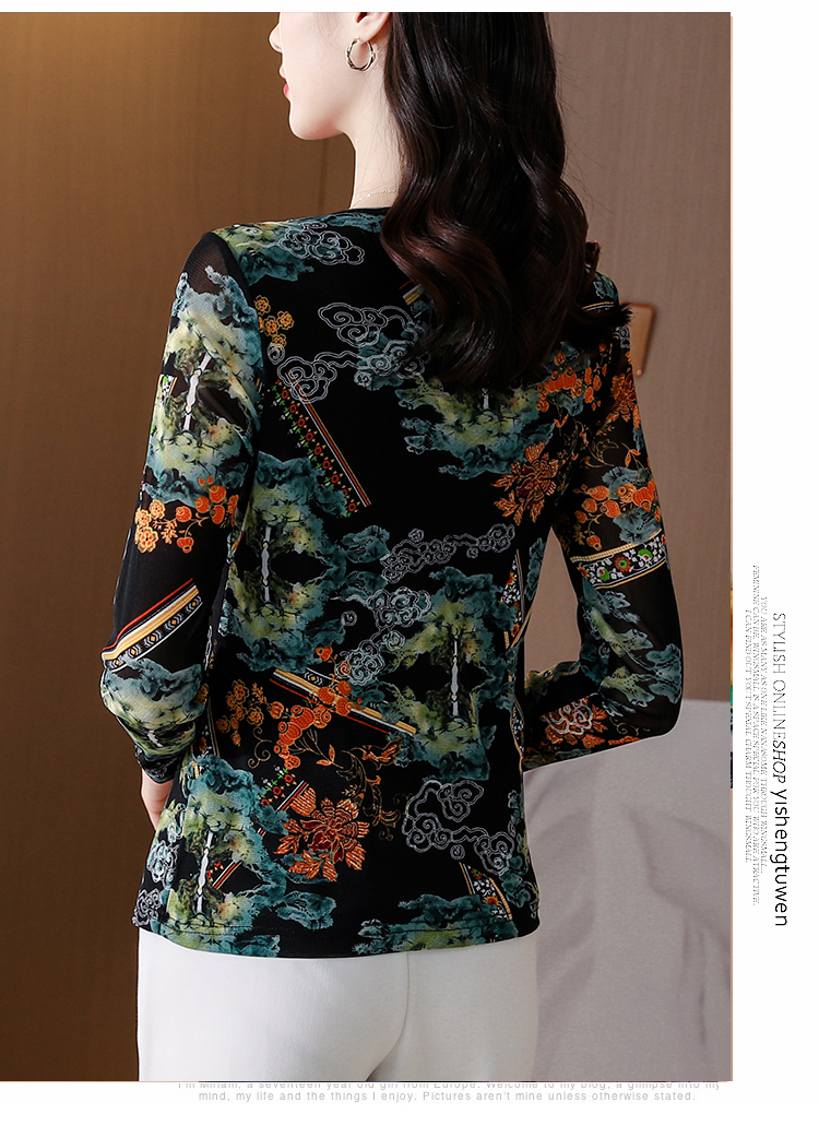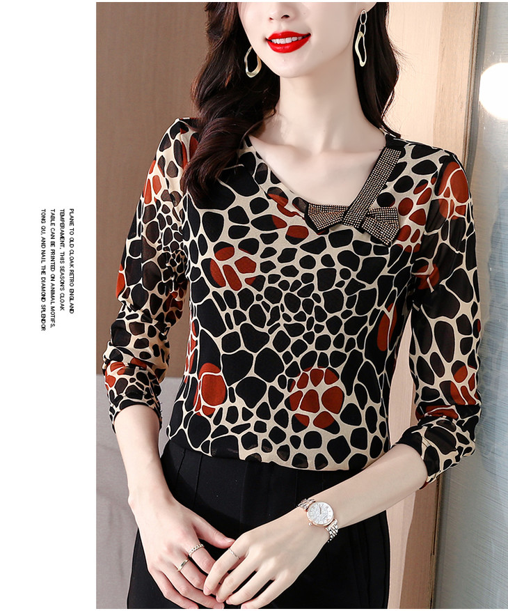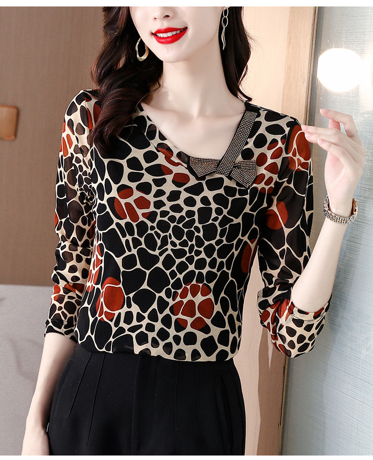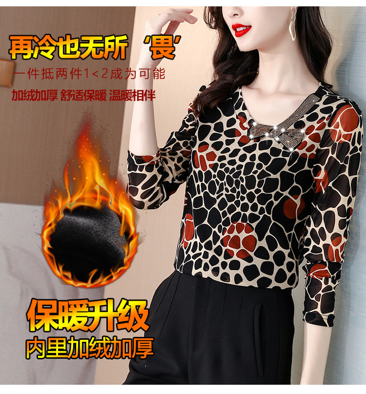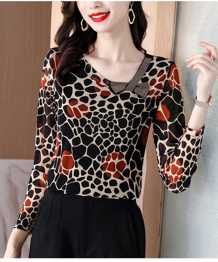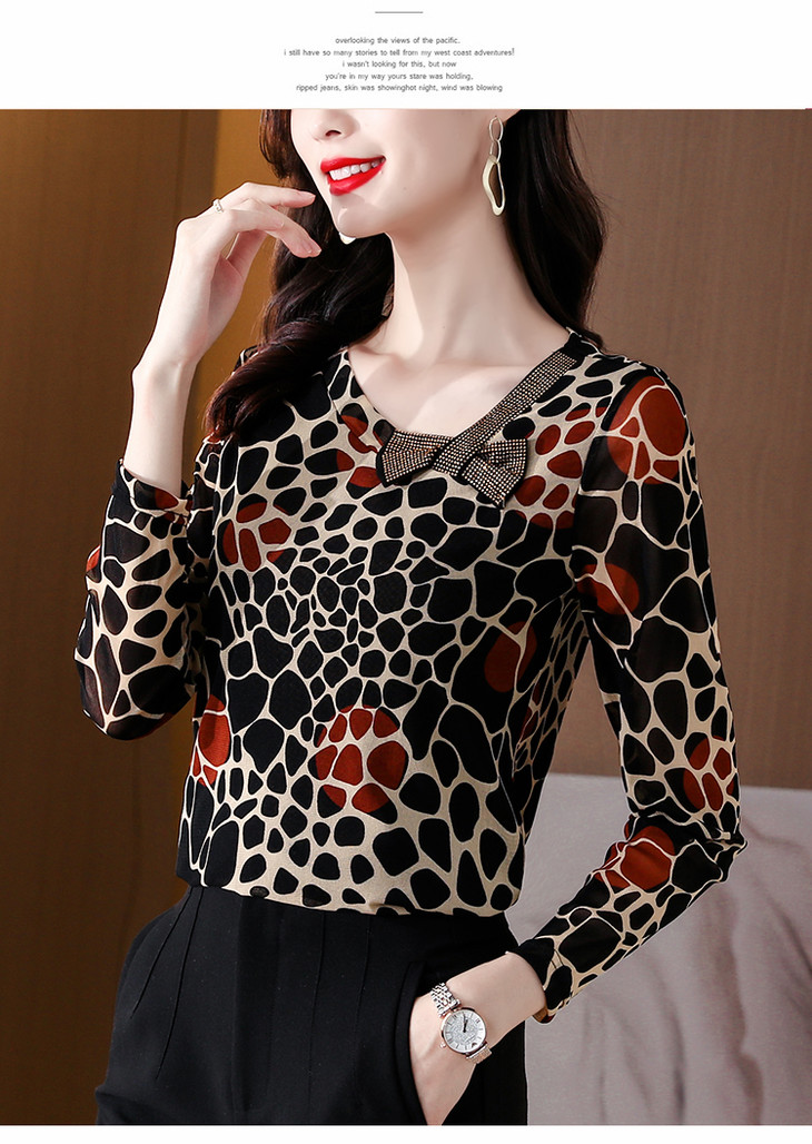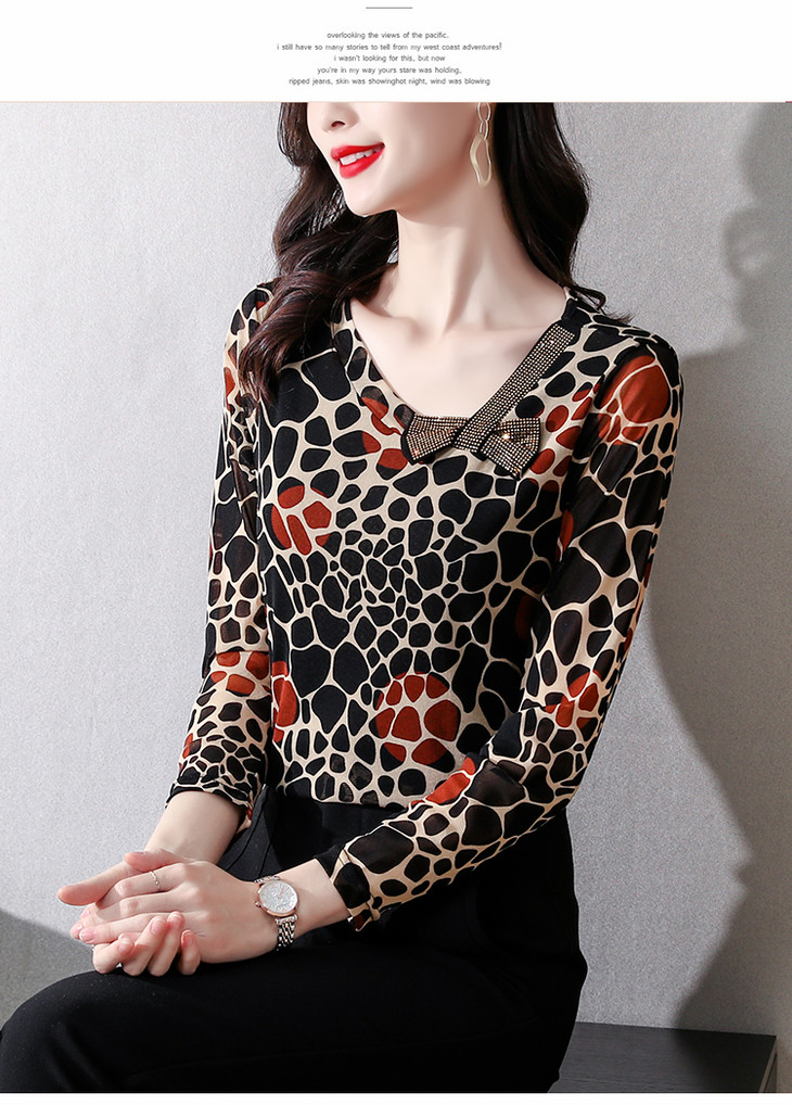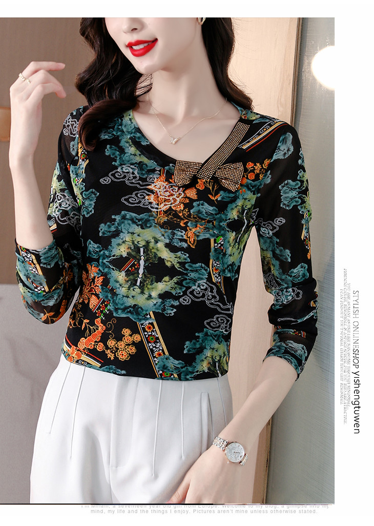 KQL 210H826秋季弹力V领镶钻修身显瘦减龄小衫【薄款】