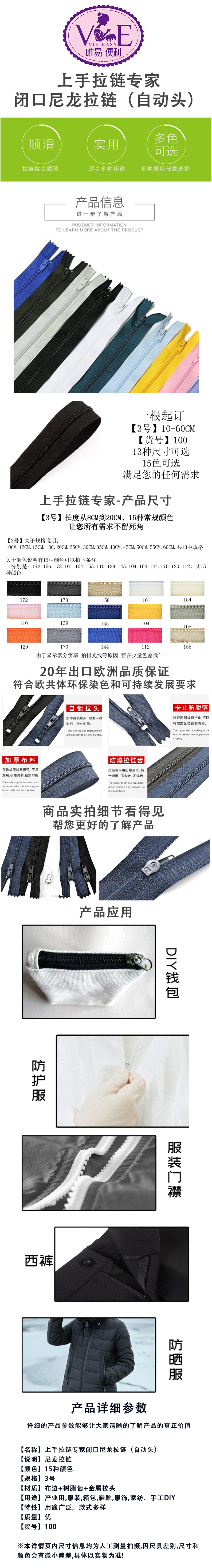 【货号100】4.2#尼龙闭口拉链(自动头)