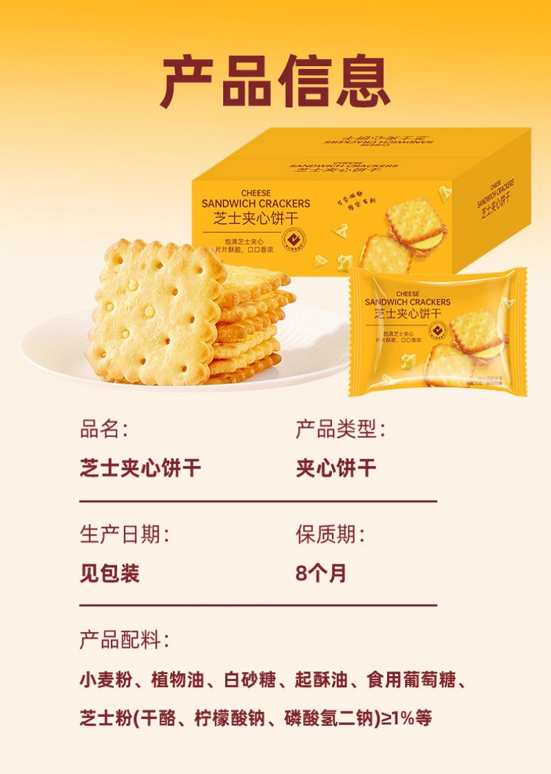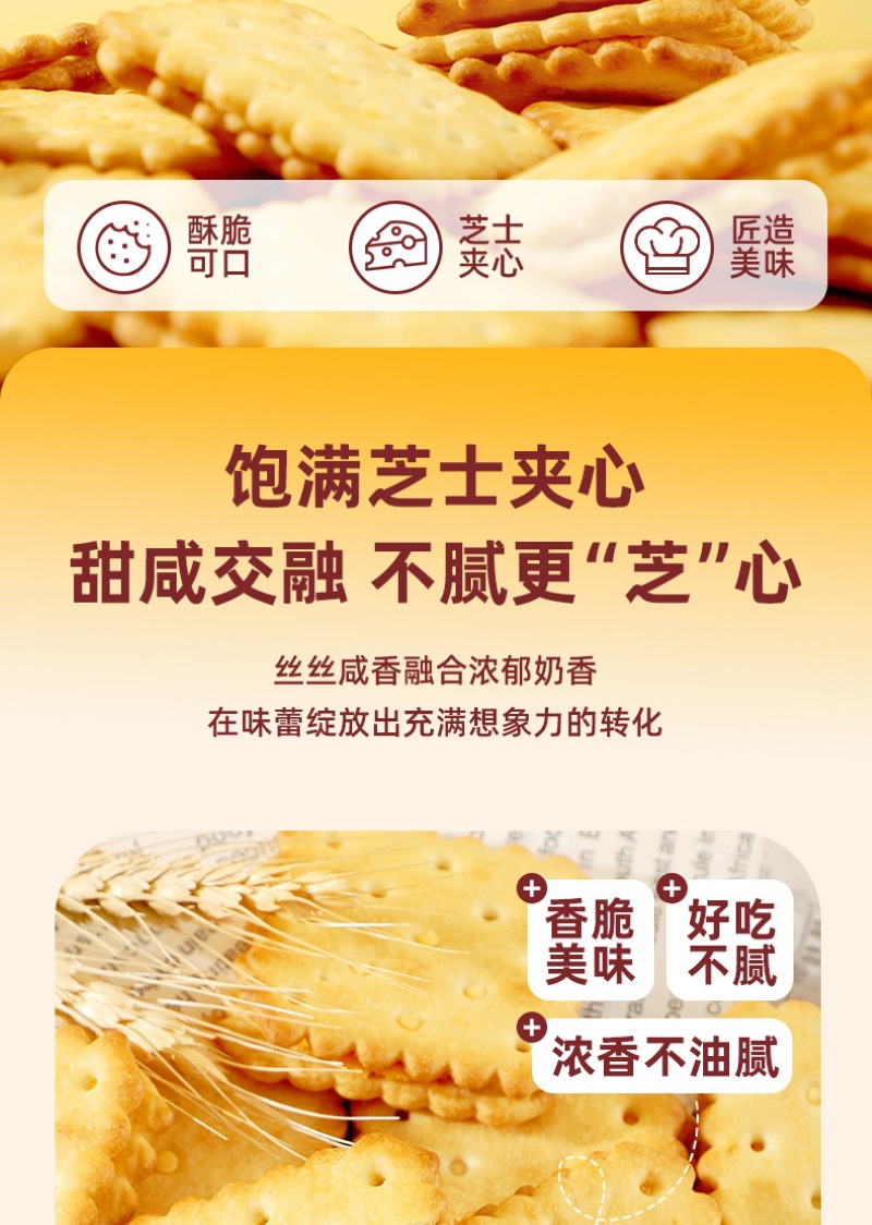 【香脆美味!好吃不腻】山姆同款芝士味夹心饼干整箱办公室早餐解馋小零食小吃休闲食品整箱。xb