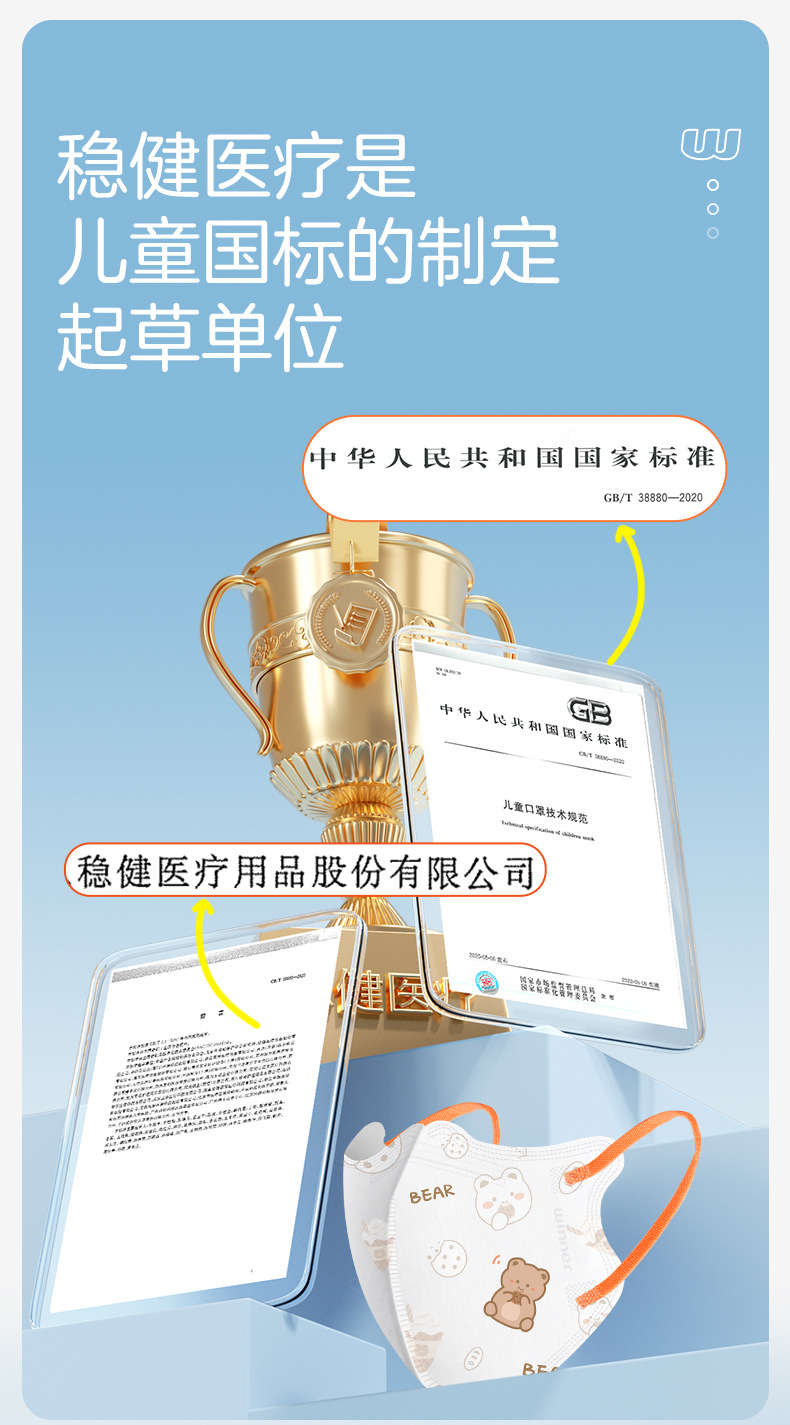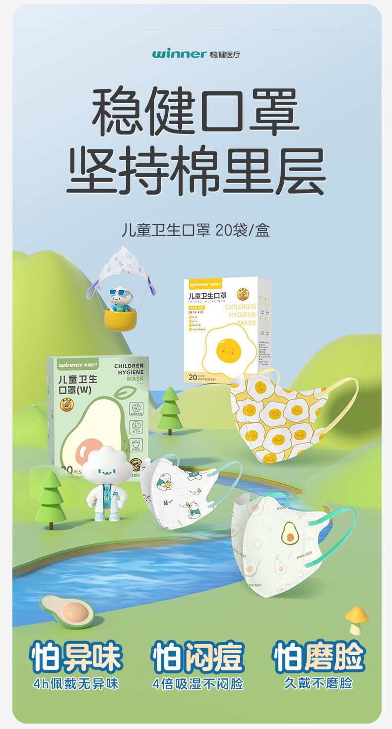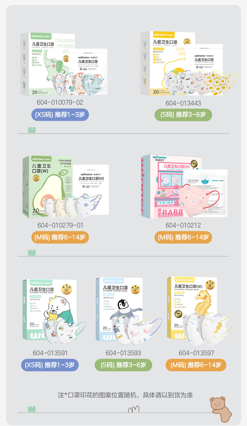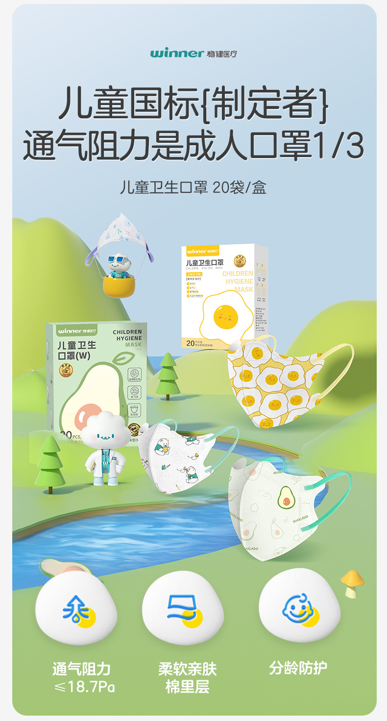 春节不打烊【专为儿童设计❗️柔软亲肤出门必备】winner稳健儿童口罩立体印花一次性独立轻薄透气20只。jd