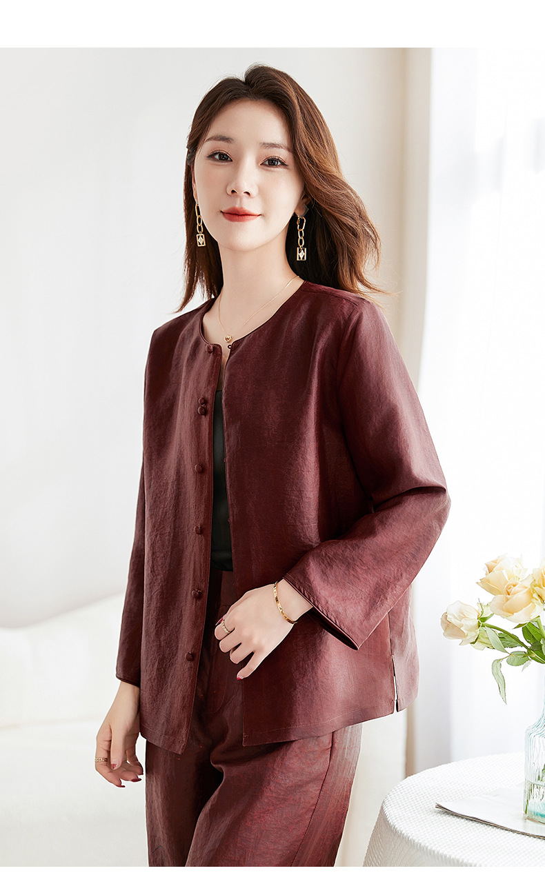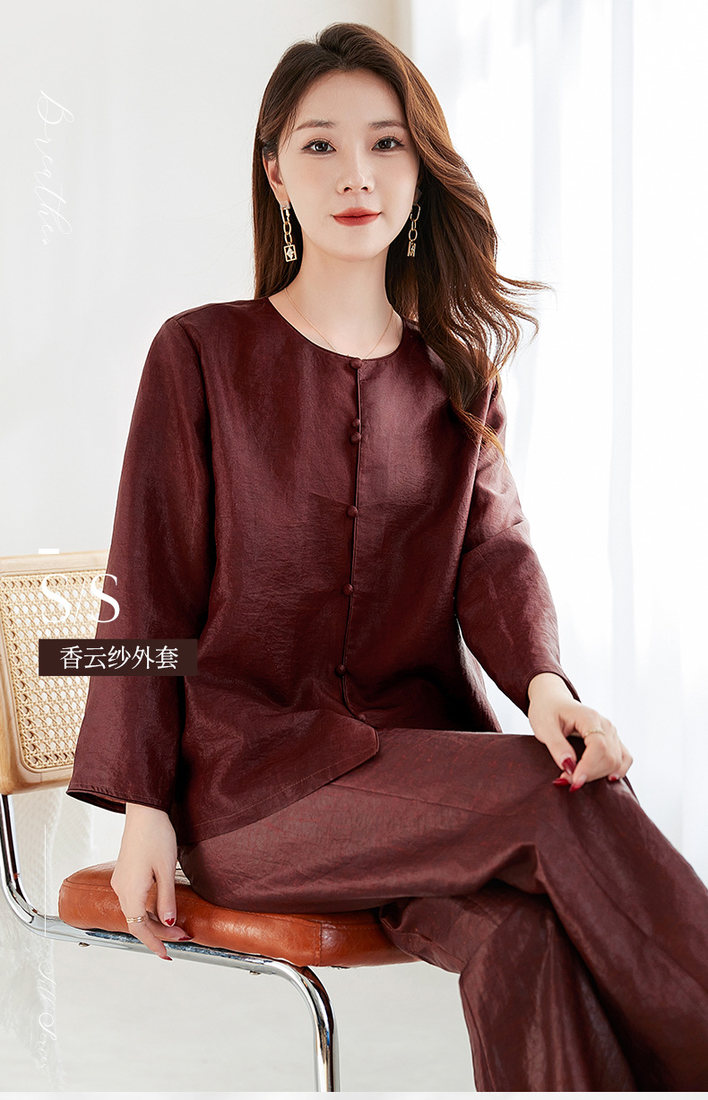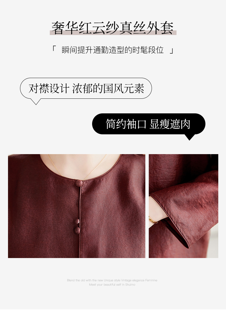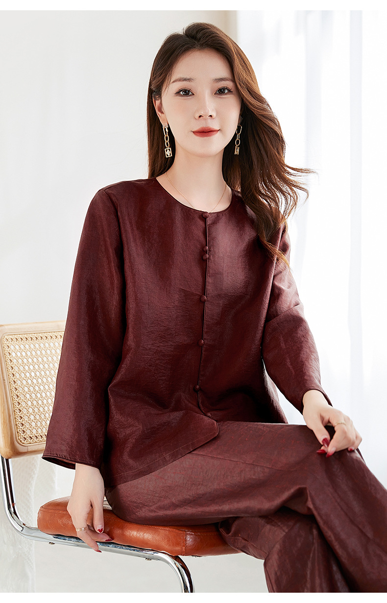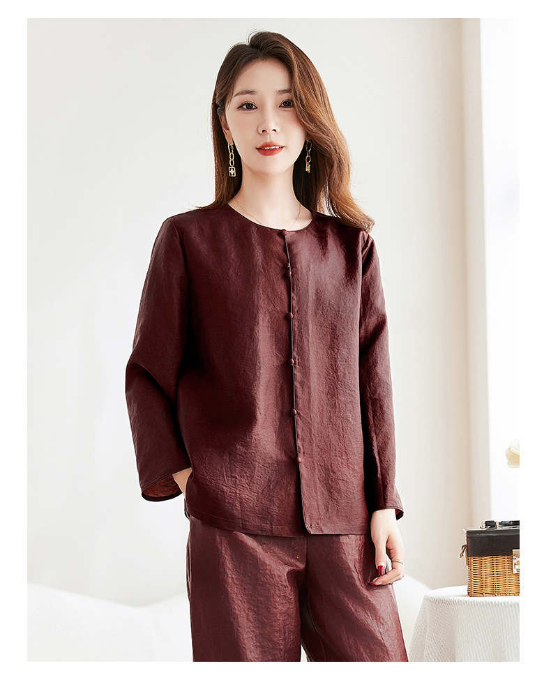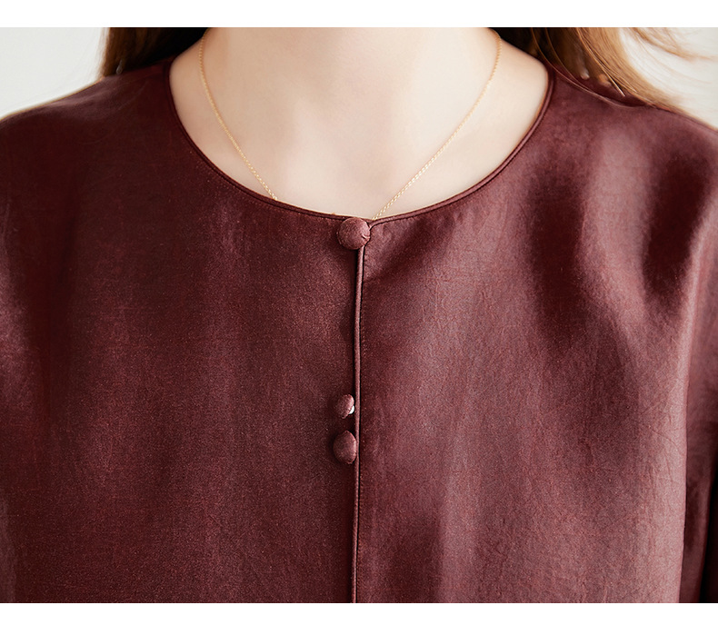 QS-62599598国风新中式香云纱圆领衬衫女外穿桑蚕丝衬衫女62599598