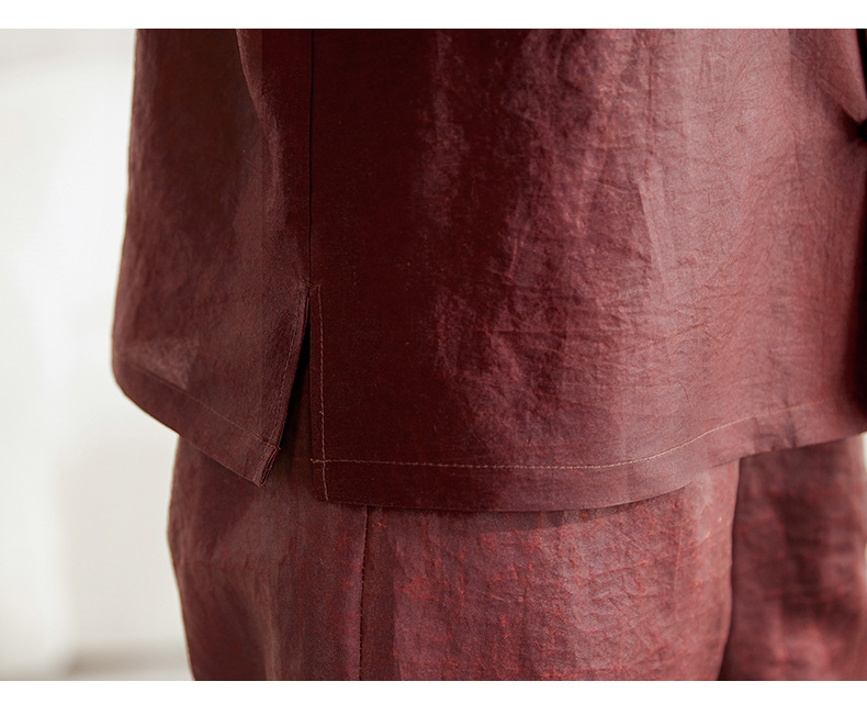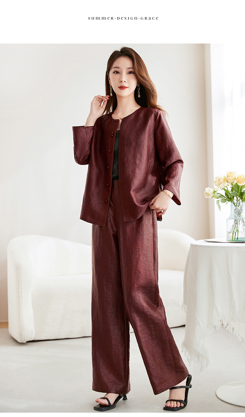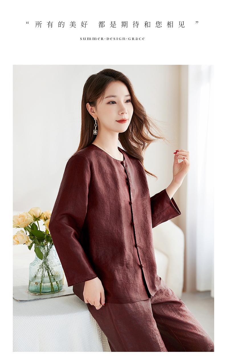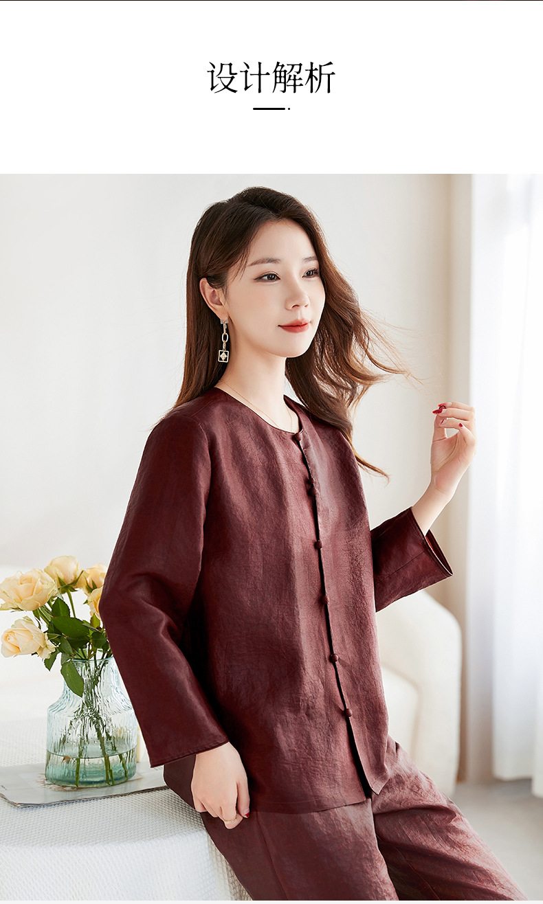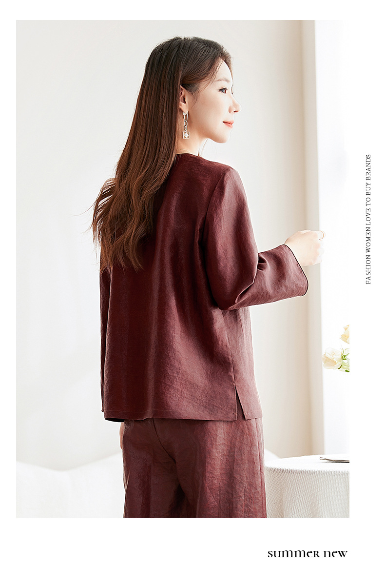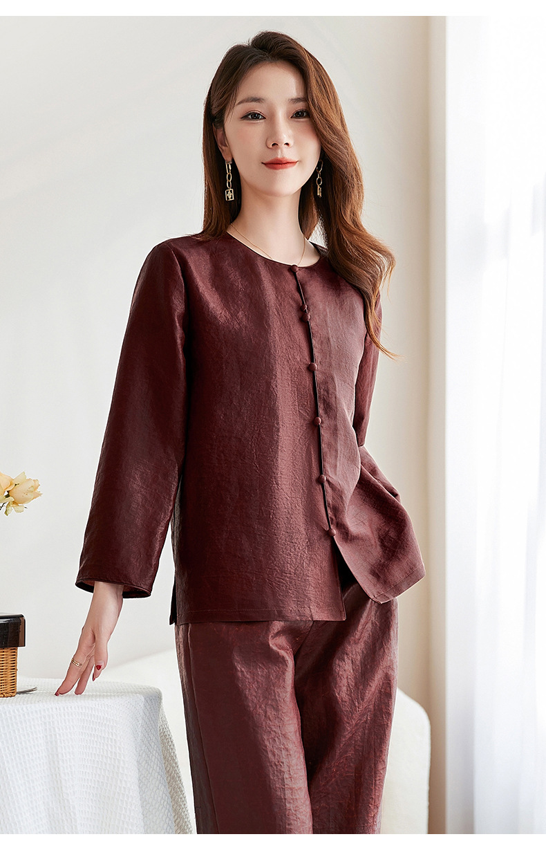 QS-62599598国风新中式香云纱圆领衬衫女外穿桑蚕丝衬衫女62599598