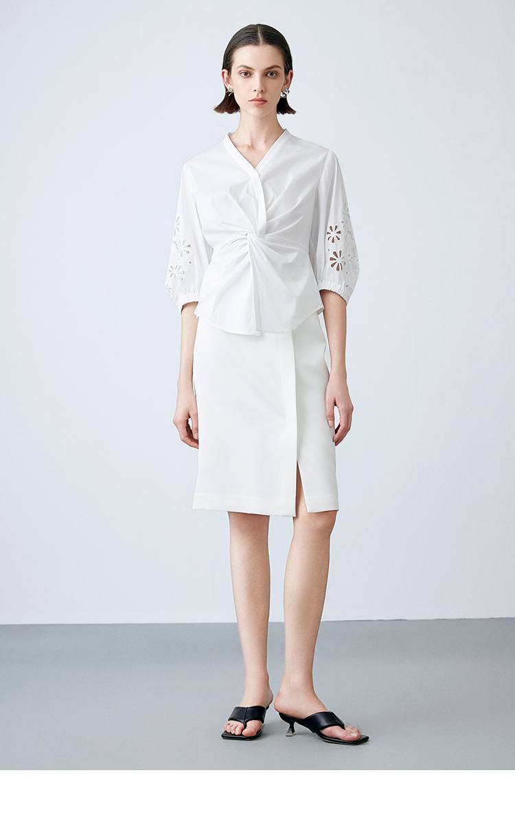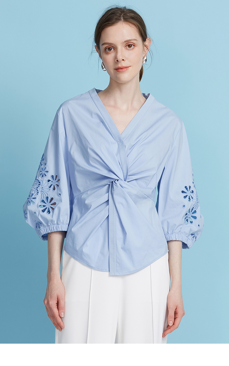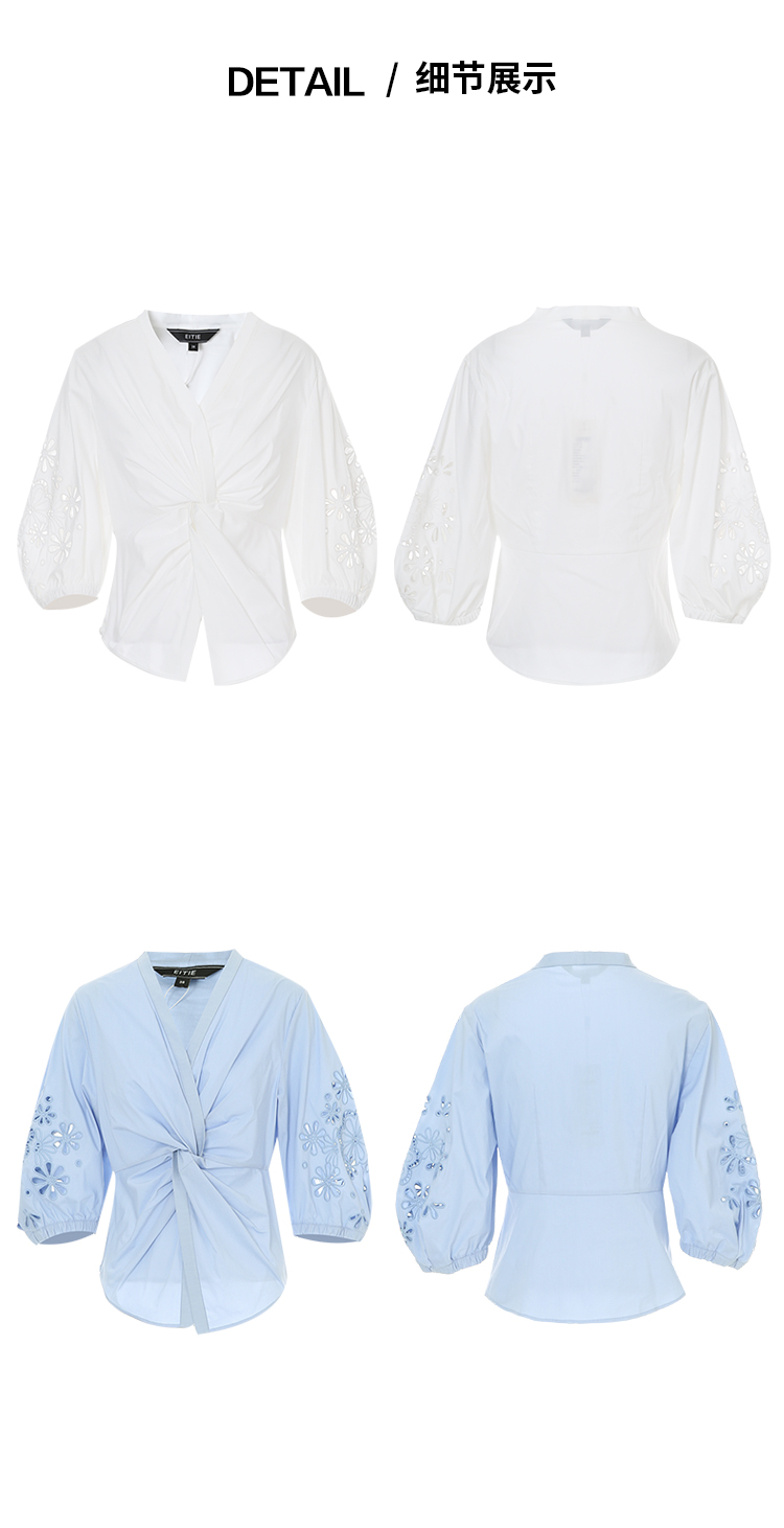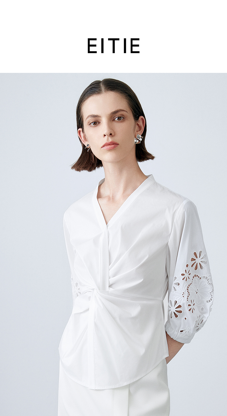 EITIE爱特爱夏季新款气质修身V领扭结设计上衣7713409