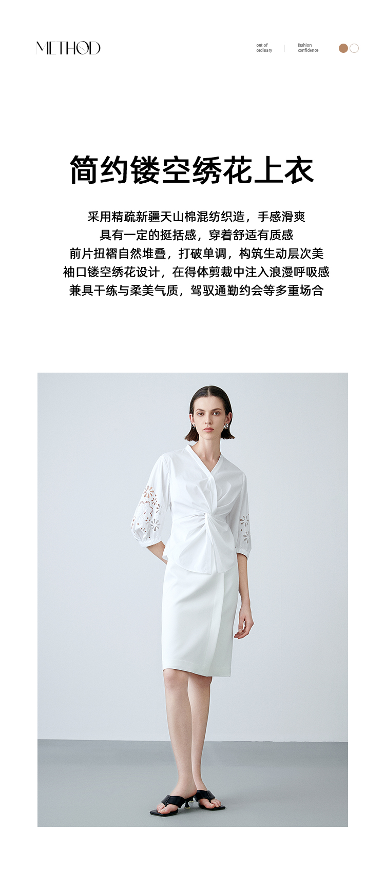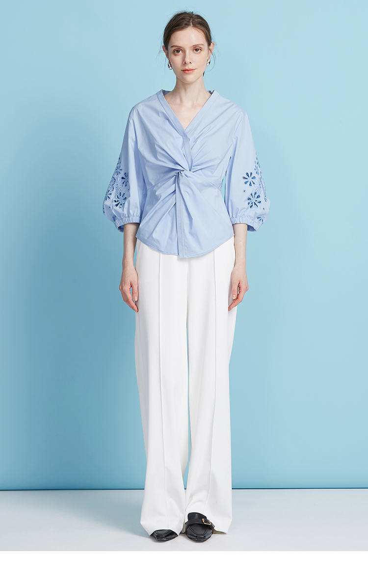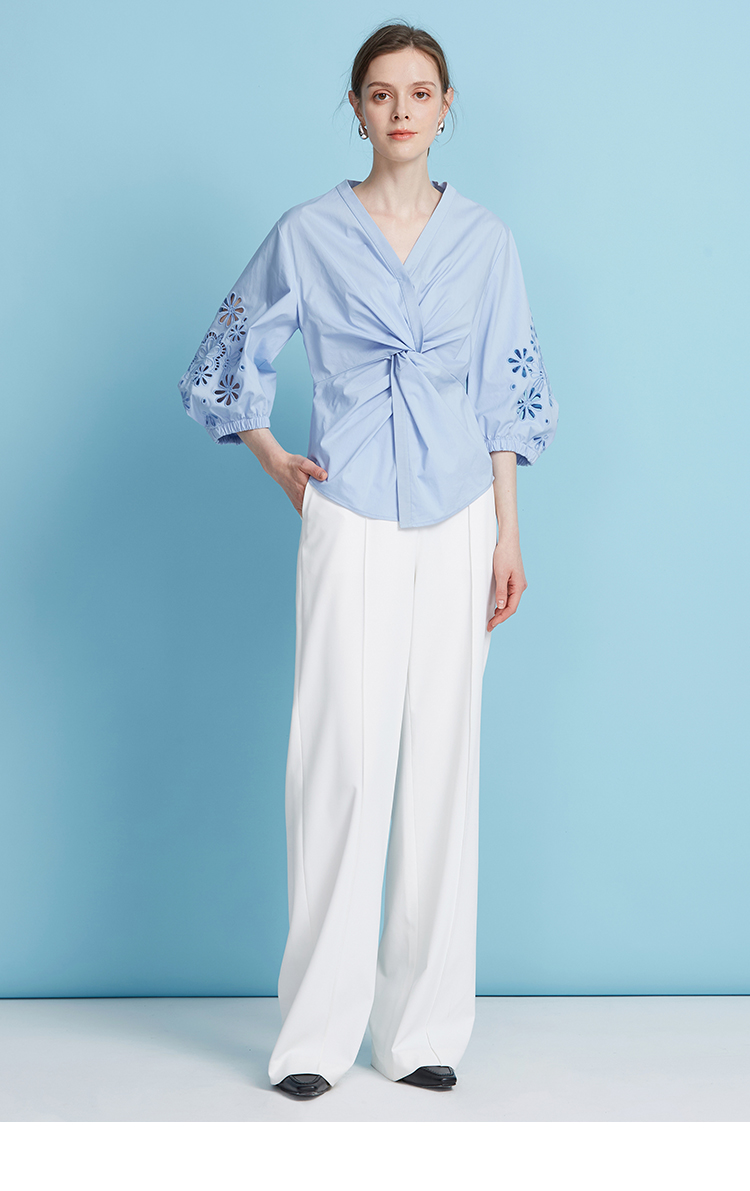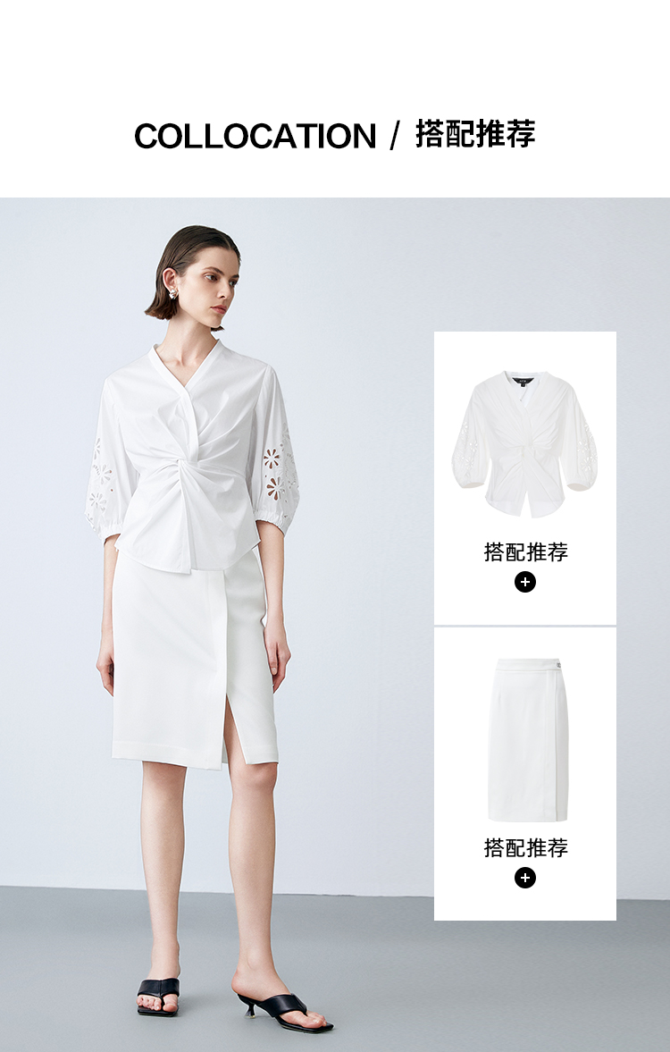 EITIE爱特爱夏季新款气质修身V领扭结设计上衣7713409