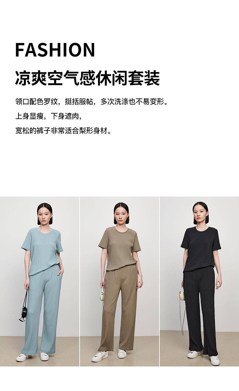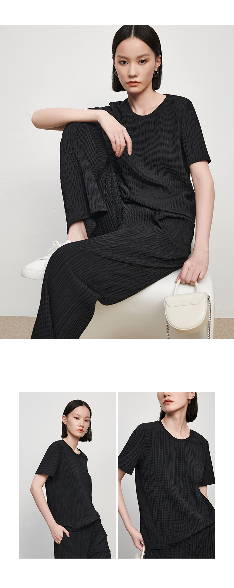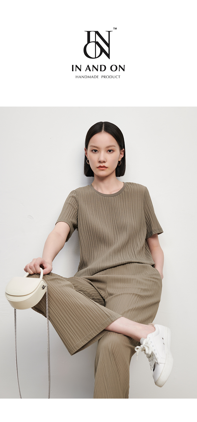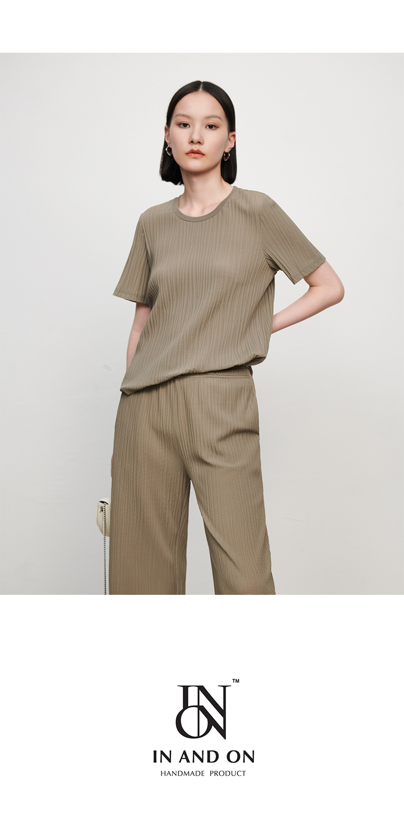 IN AND ON三宅褶皱套装女2023夏季新款短袖上衣休闲垂感显瘦阔腿裤两件套