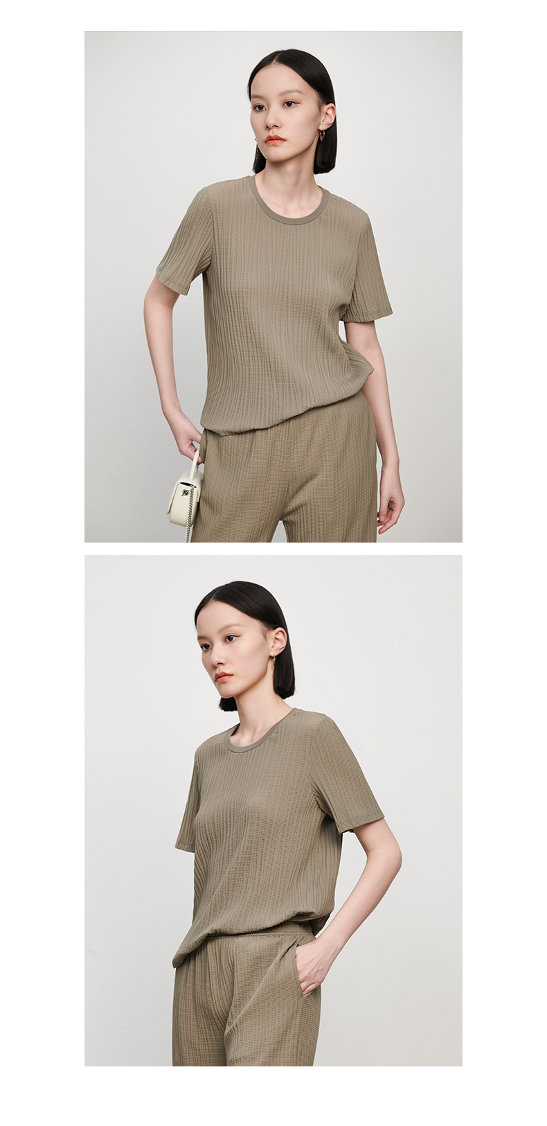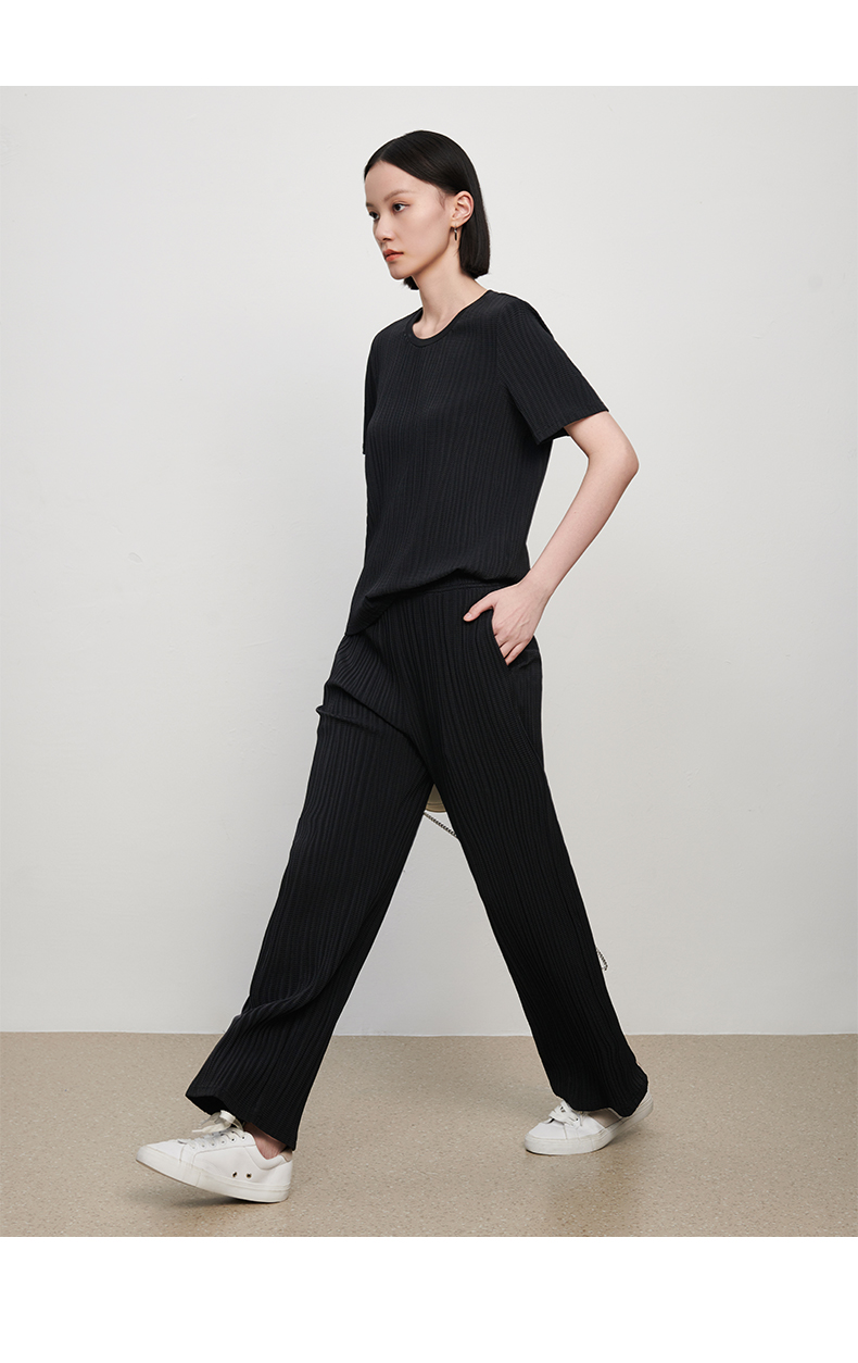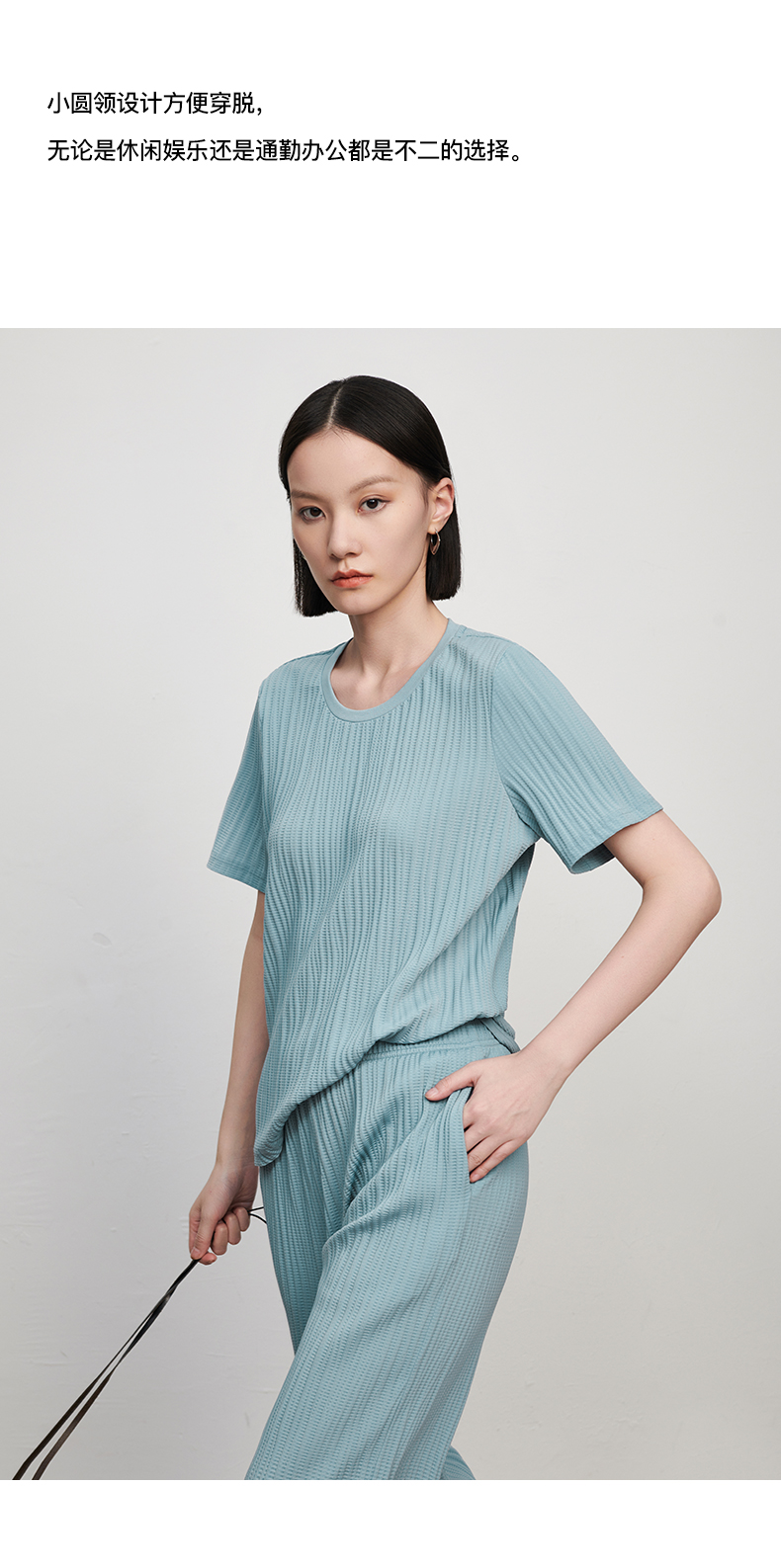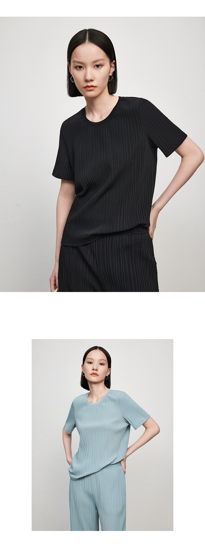 IN AND ON三宅褶皱套装女2023夏季新款短袖上衣休闲垂感显瘦阔腿裤两件套