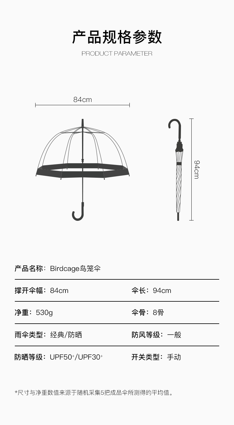 FULTON富尔顿英国进口透明雨伞手动直柄鸟笼伞