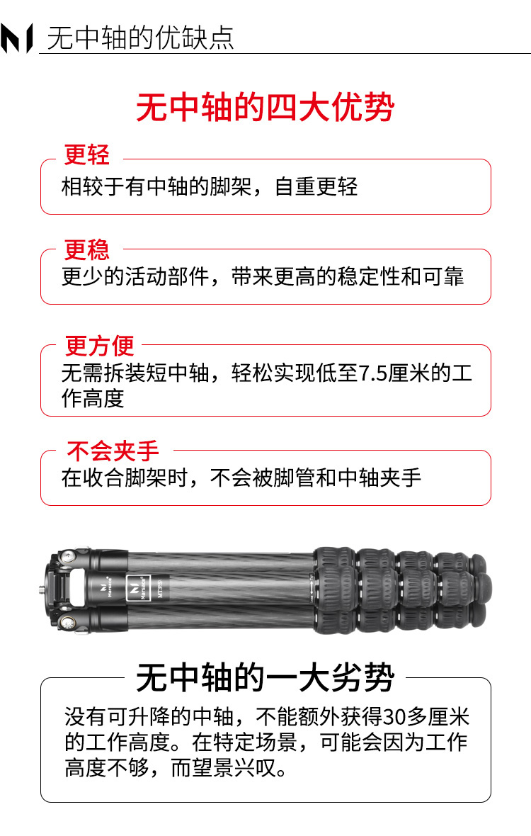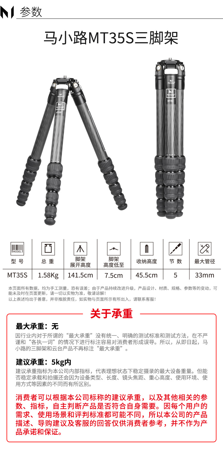 马小路Marsace MT35S专业稳定款无中轴三脚架 33MM管径
