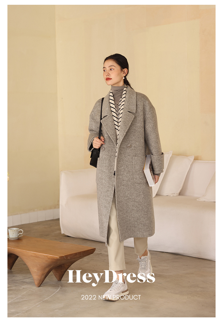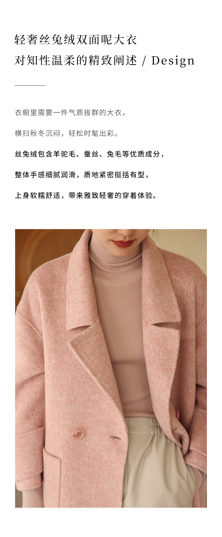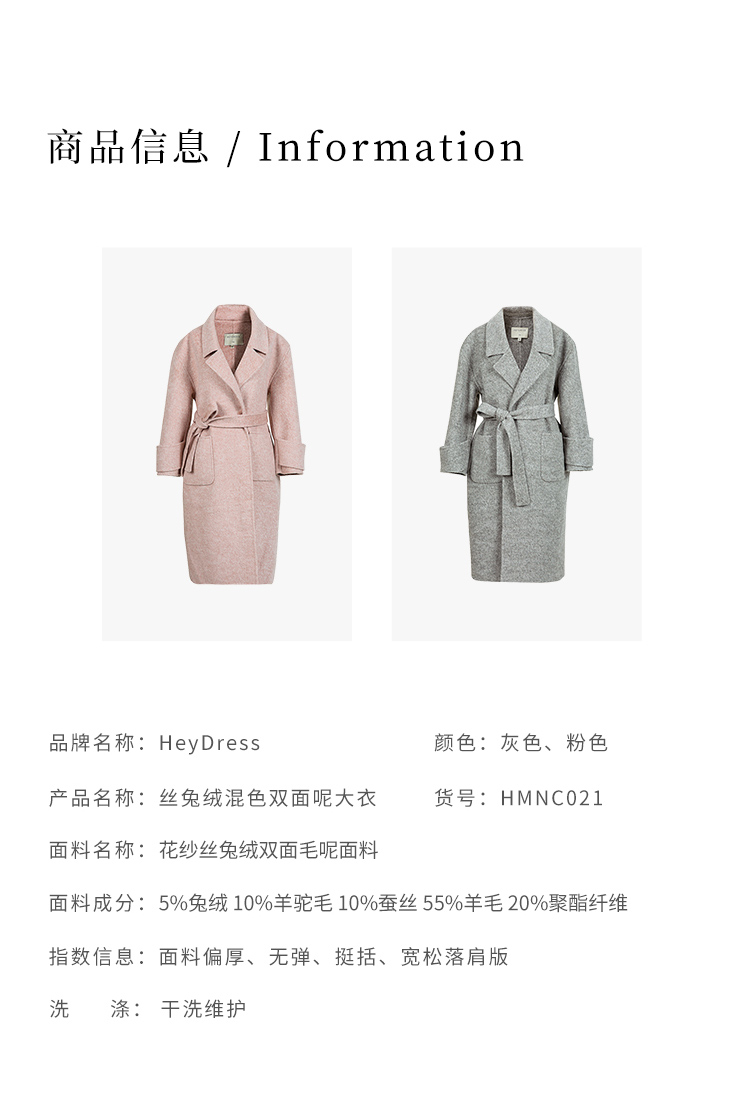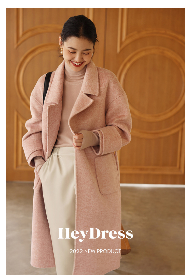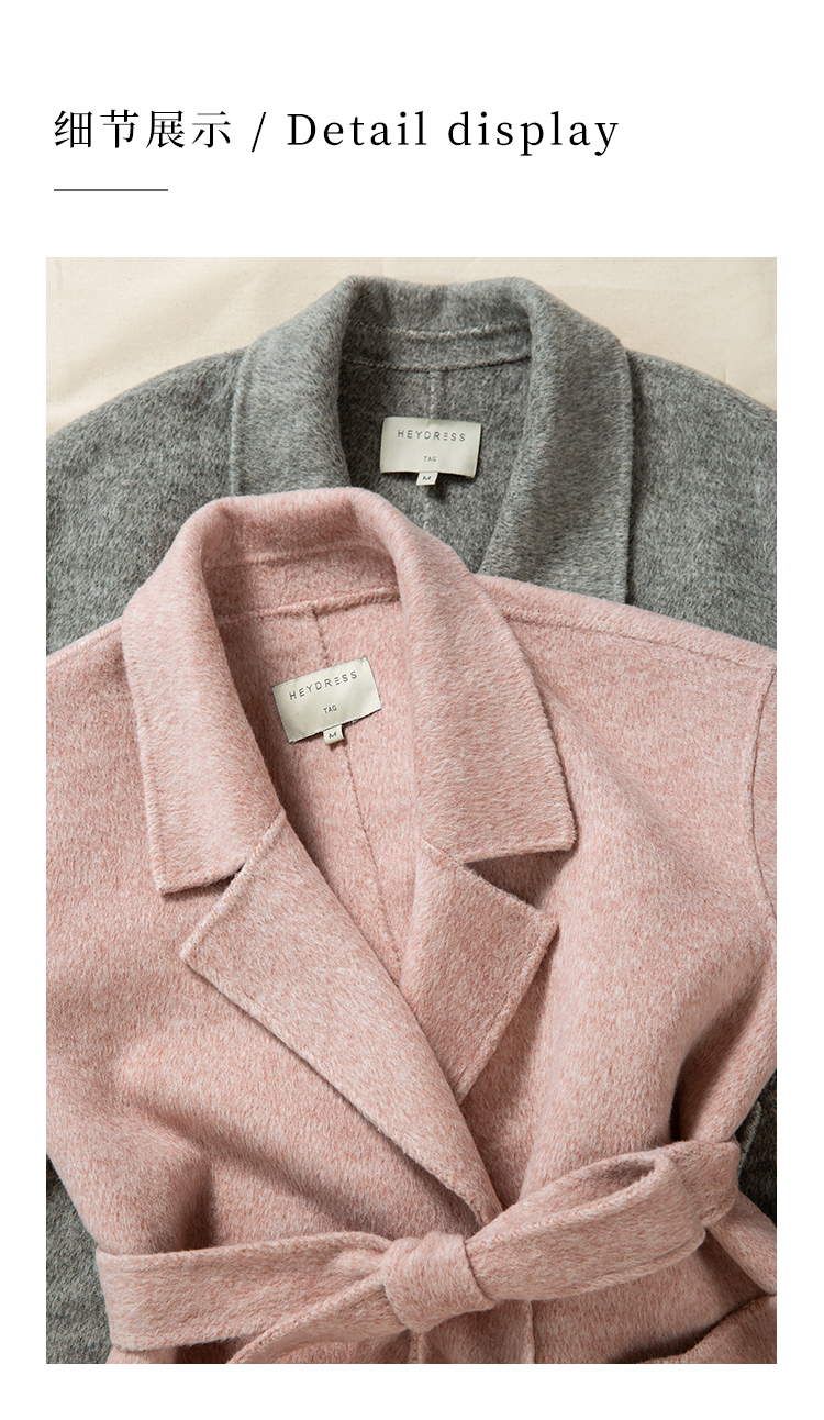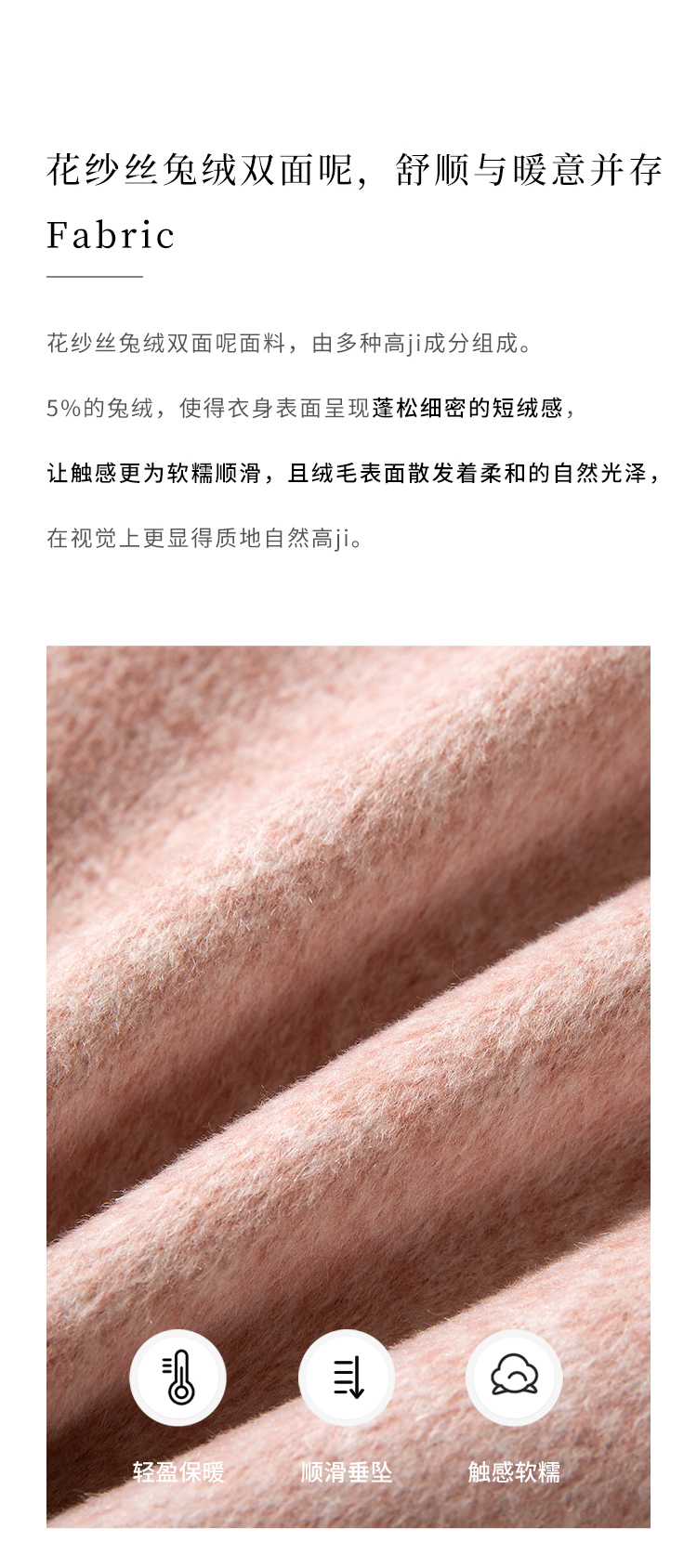 HeyDress丝兔绒毛呢外套女秋冬宽松收腰双面呢感温柔羊毛大衣