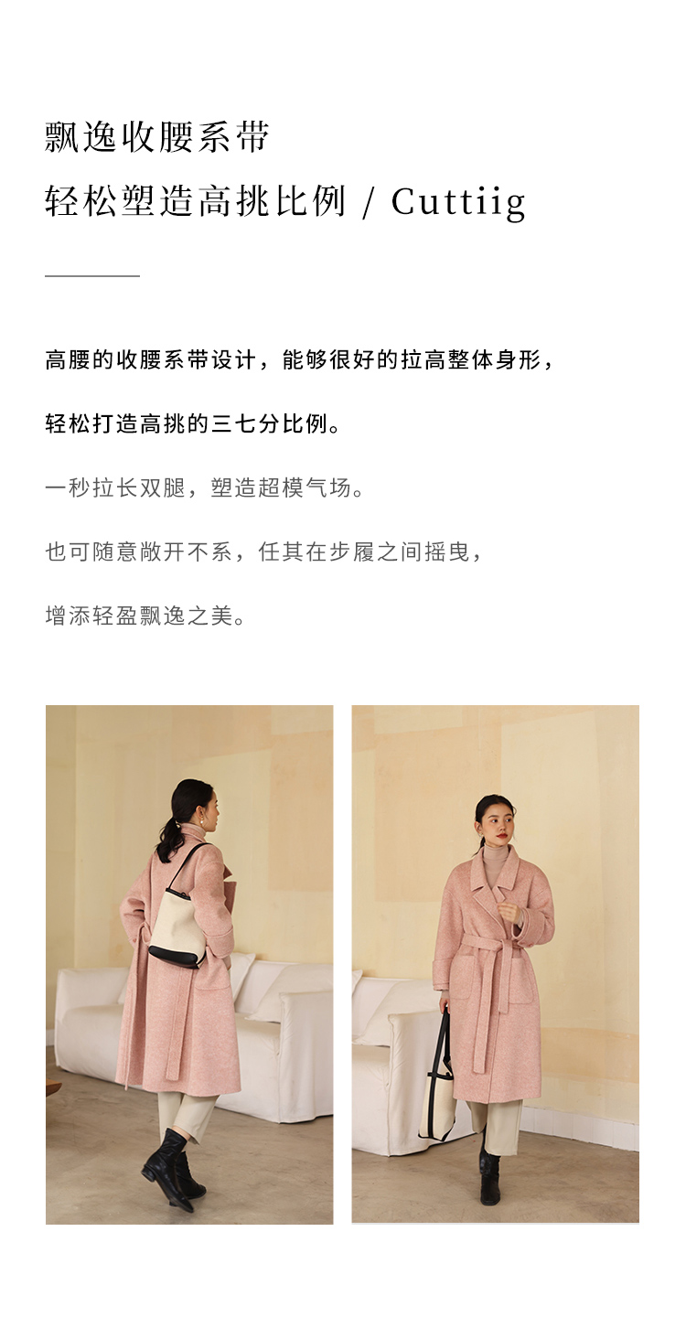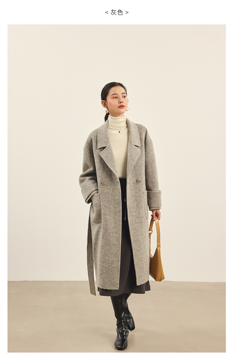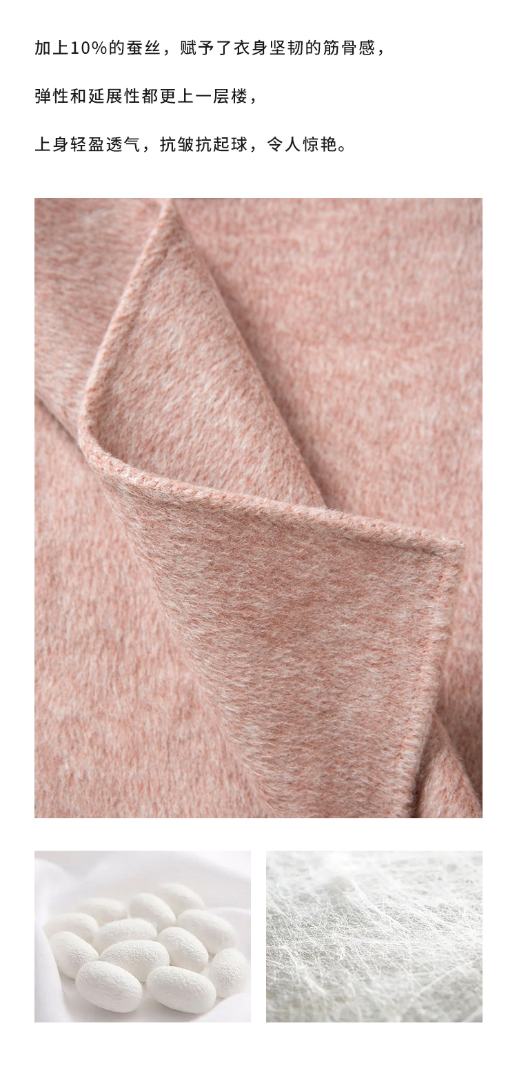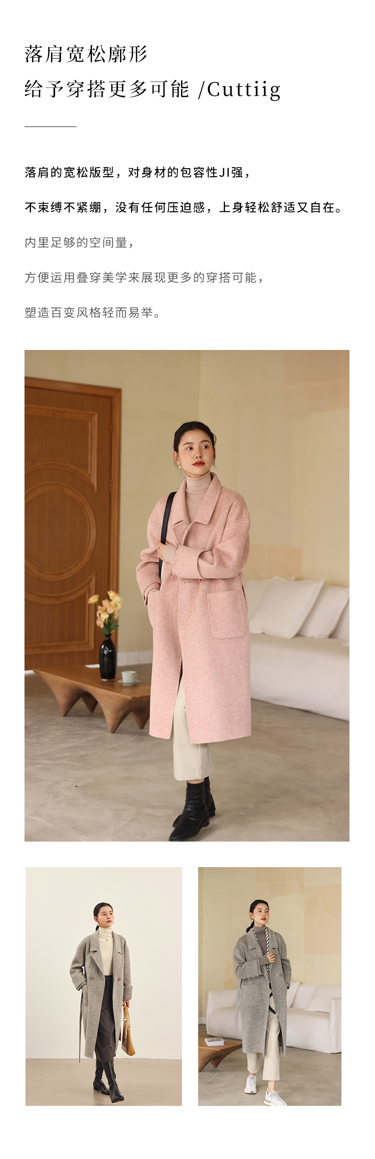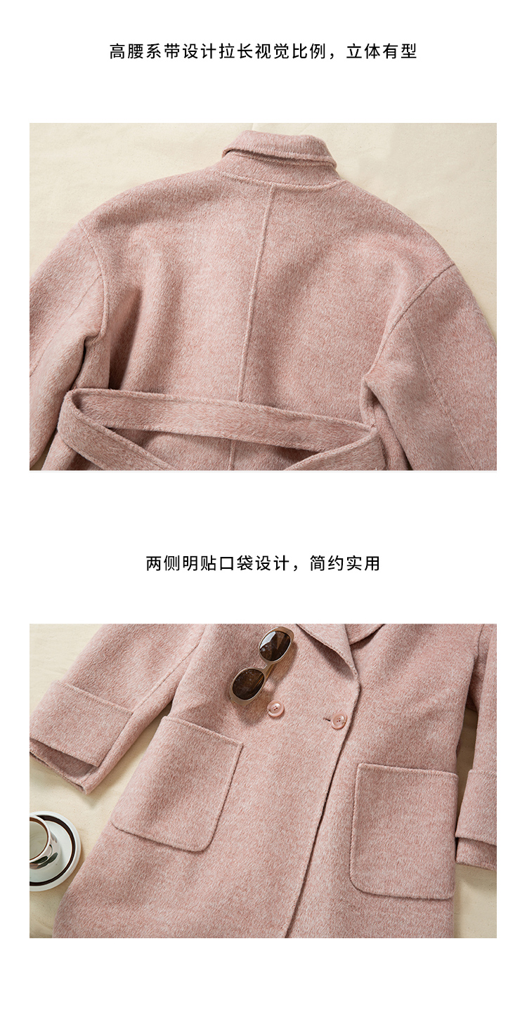 HeyDress丝兔绒毛呢外套女秋冬宽松收腰双面呢感温柔羊毛大衣