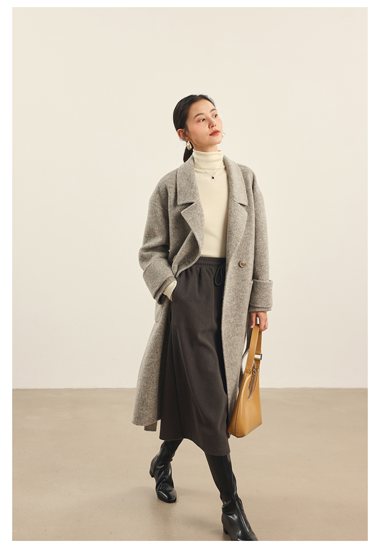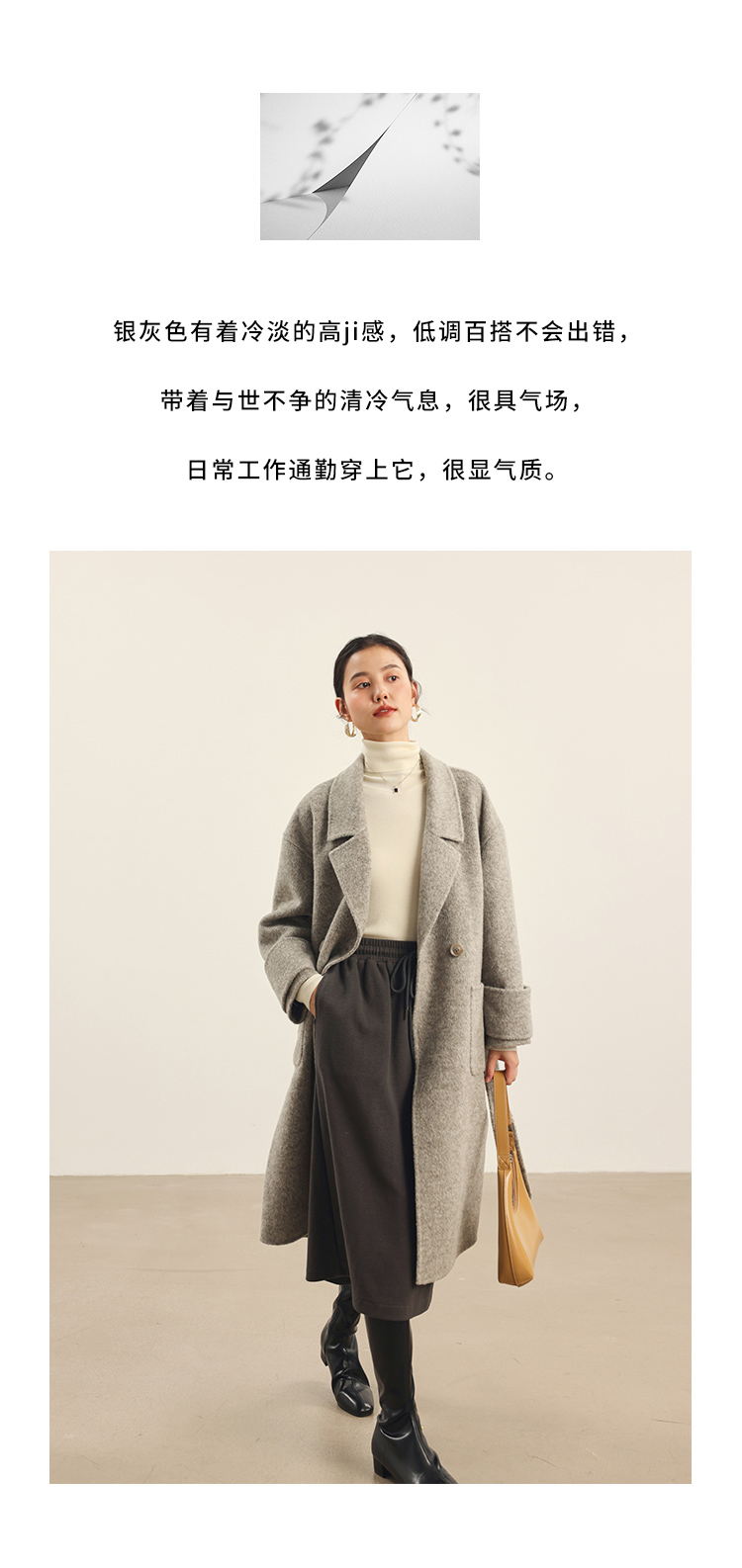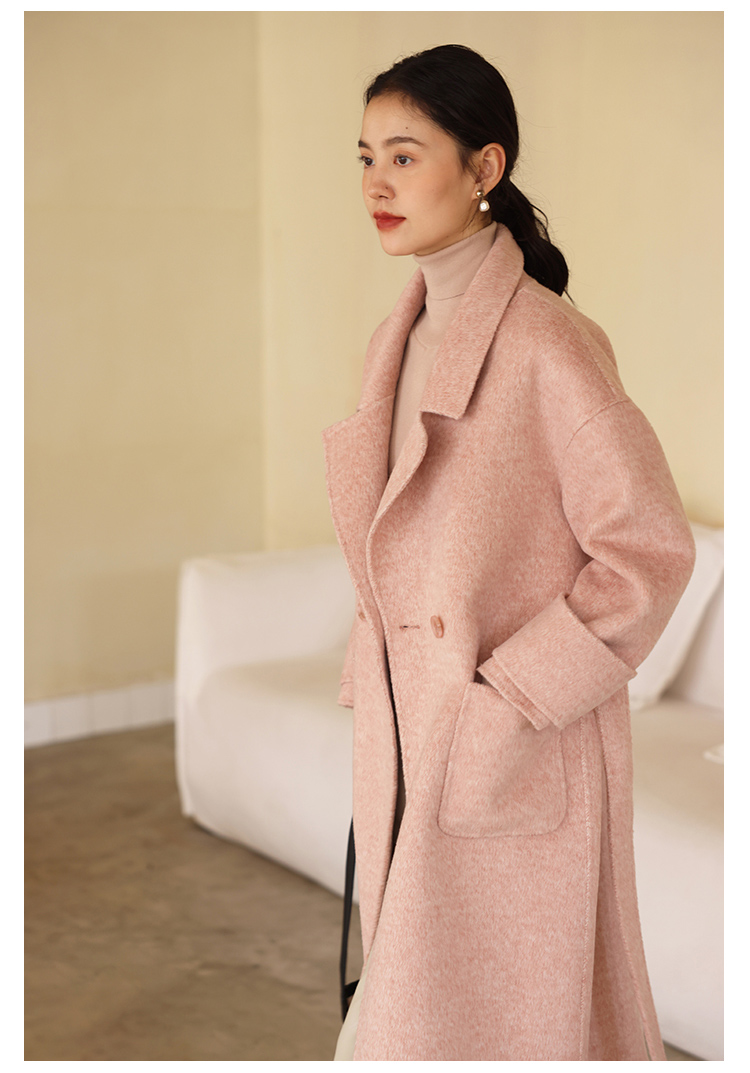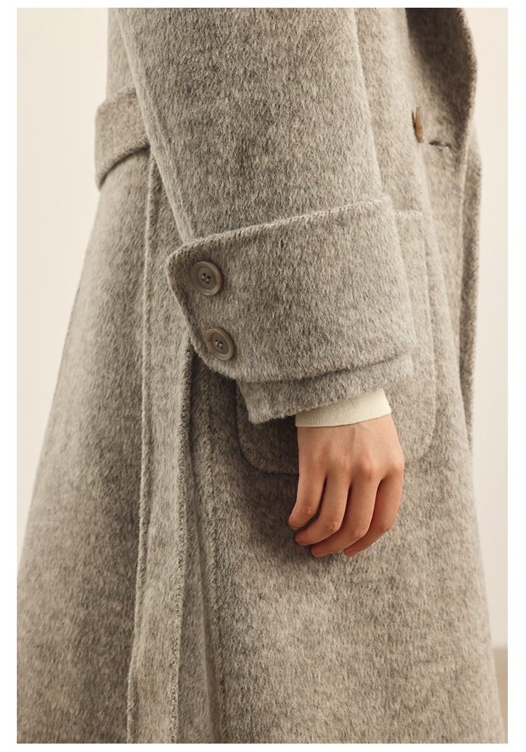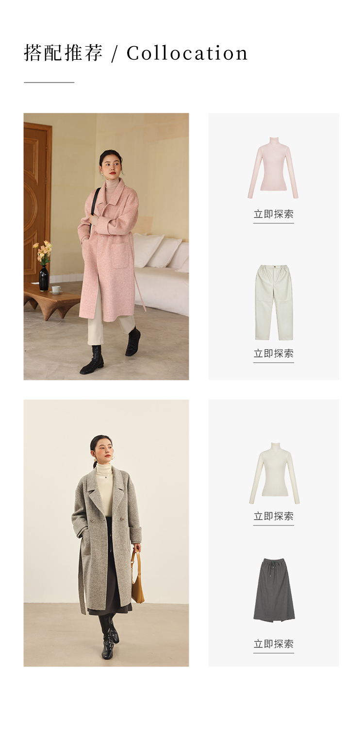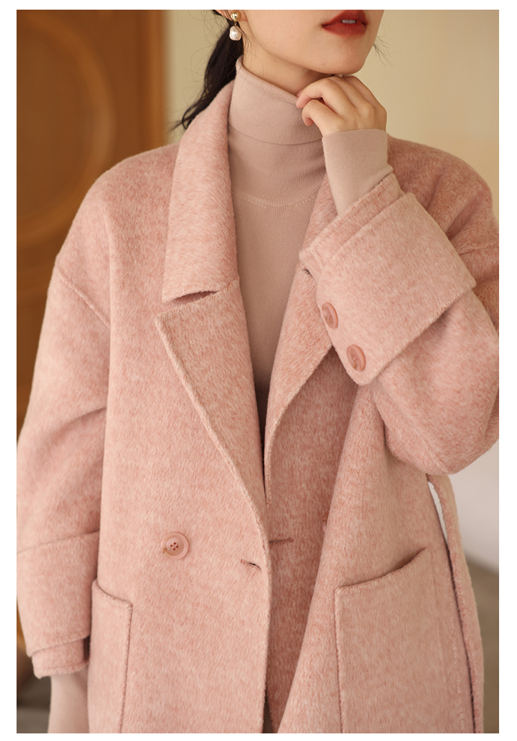HeyDress丝兔绒毛呢外套女秋冬宽松收腰双面呢感温柔羊毛大衣