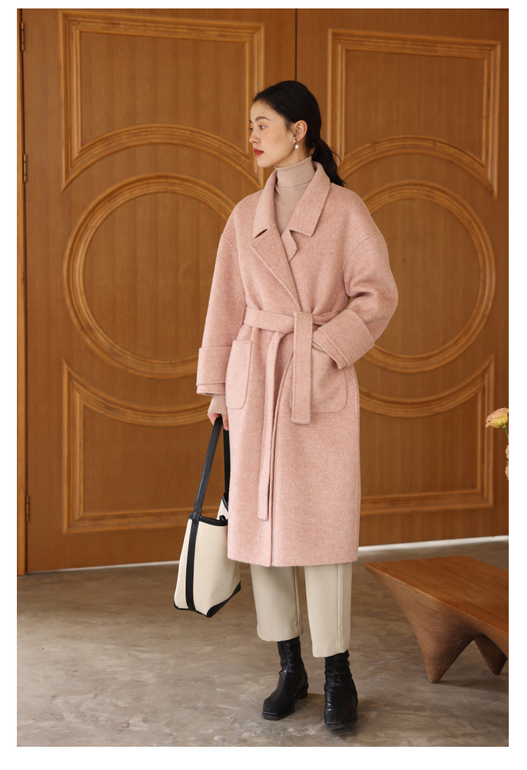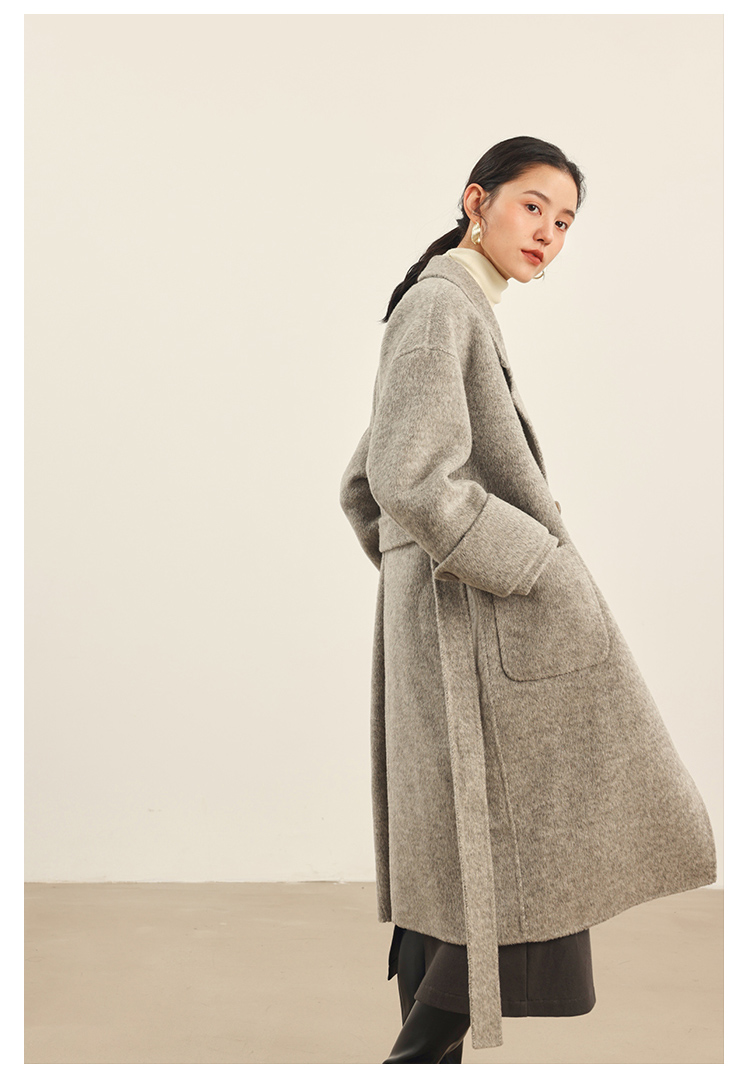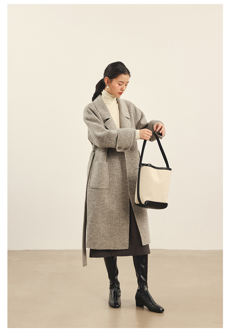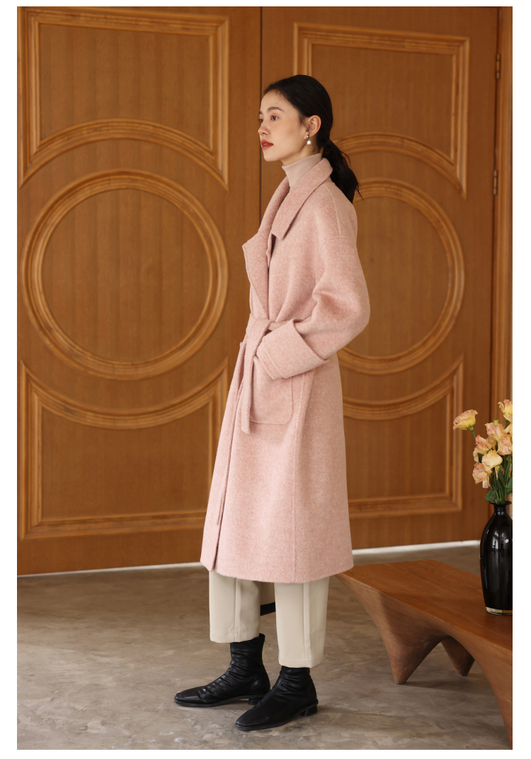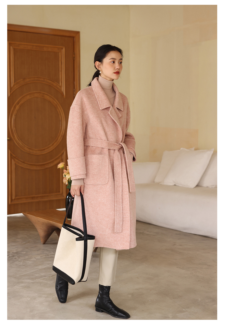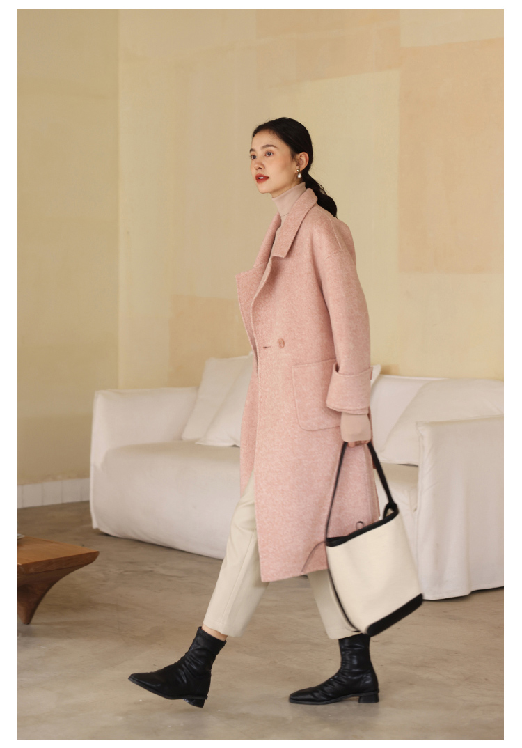 HeyDress丝兔绒毛呢外套女秋冬宽松收腰双面呢感温柔羊毛大衣