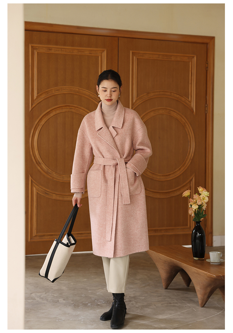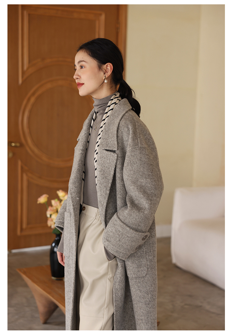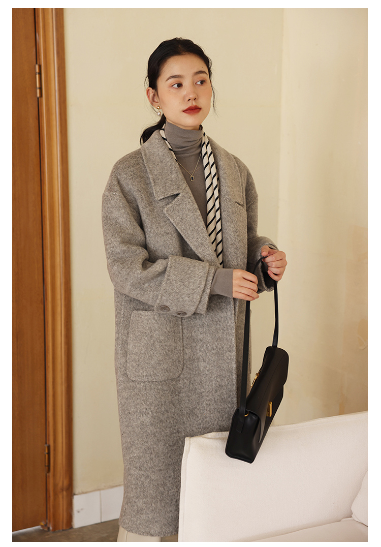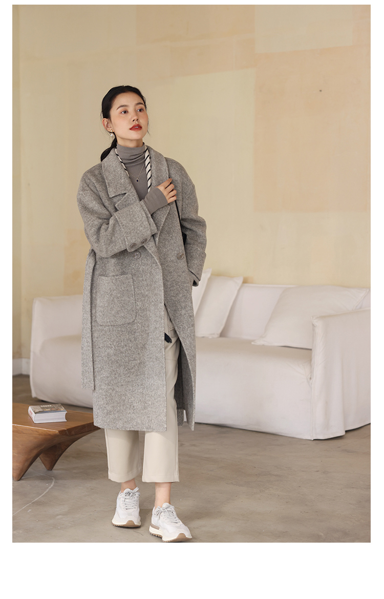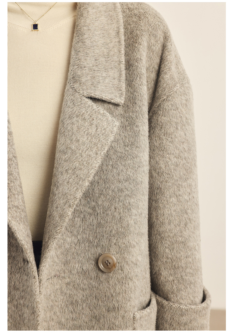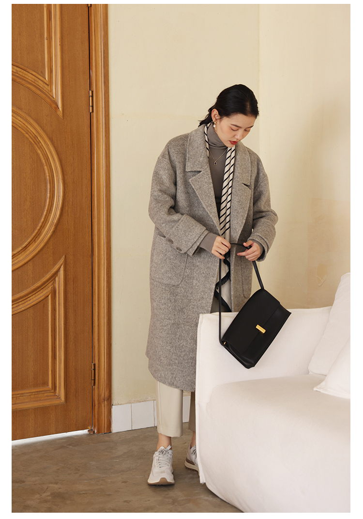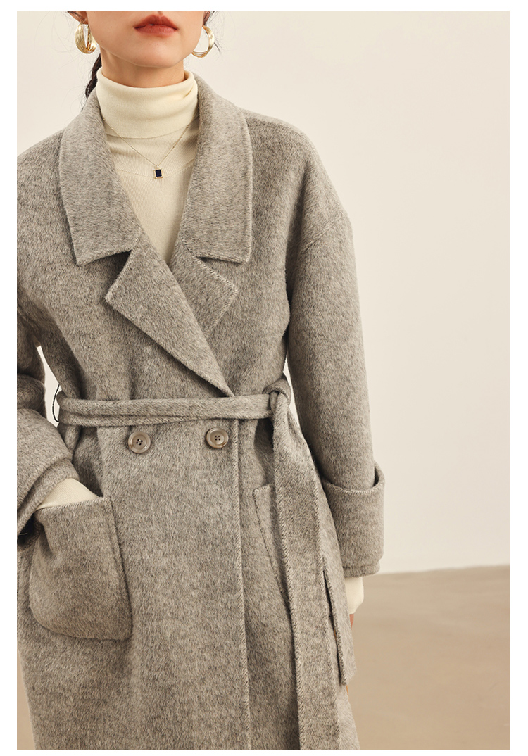 HeyDress丝兔绒毛呢外套女秋冬宽松收腰双面呢感温柔羊毛大衣