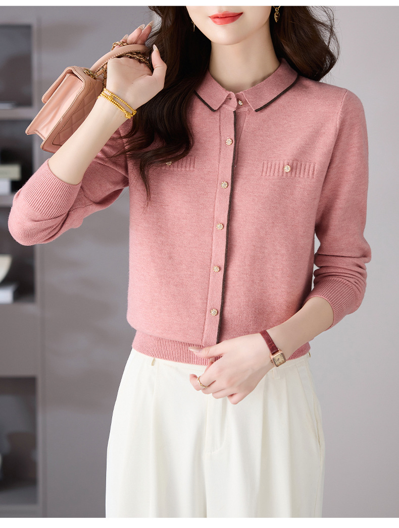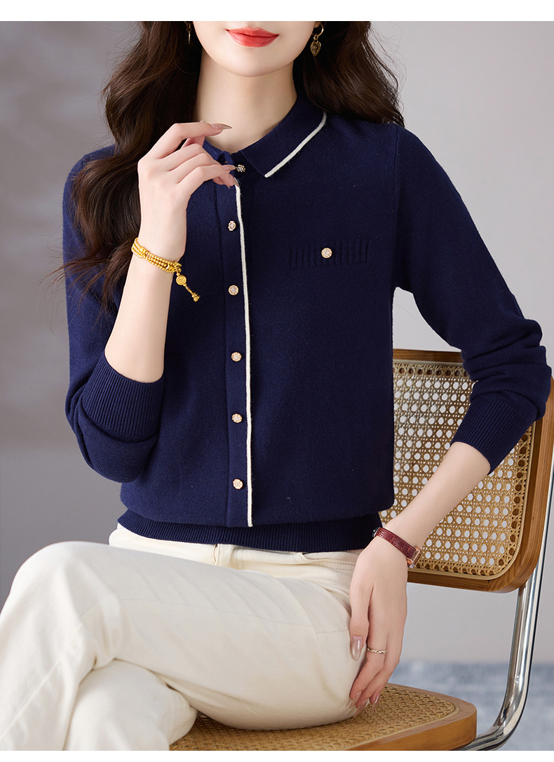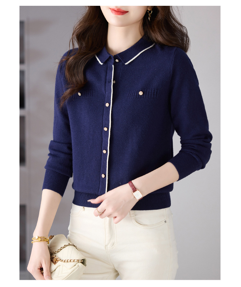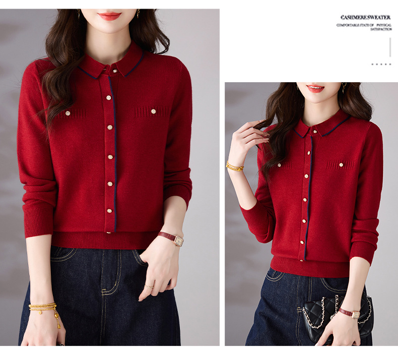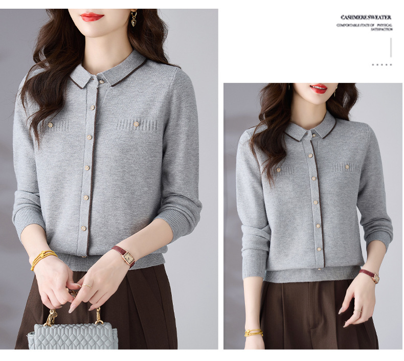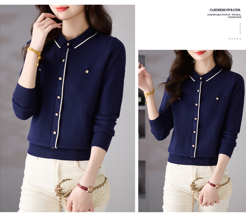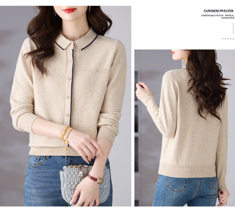 CC翻领长袖上衣秋装女款2025年新款polo针织衫洋气漂亮毛衣打底小衫