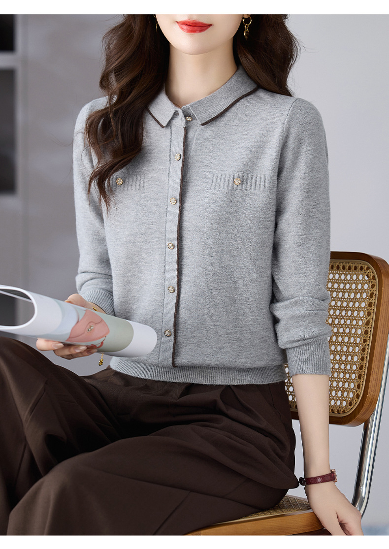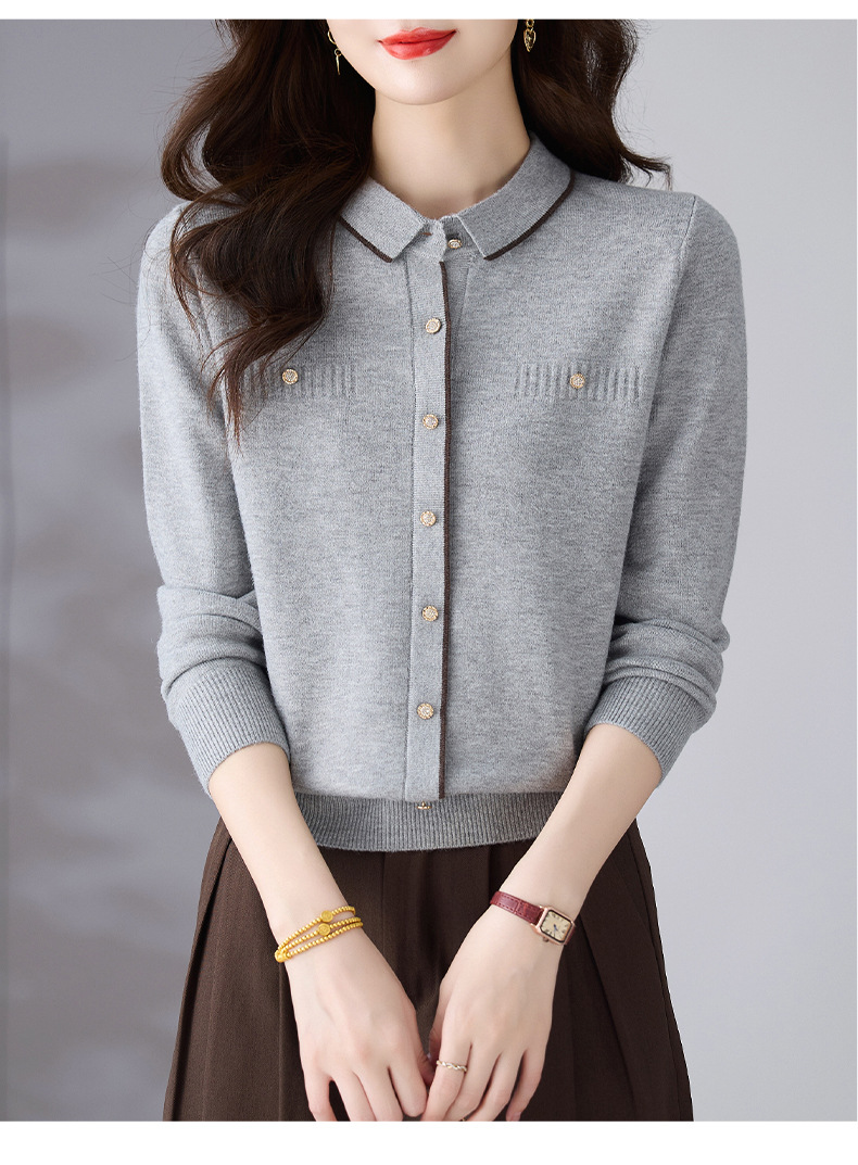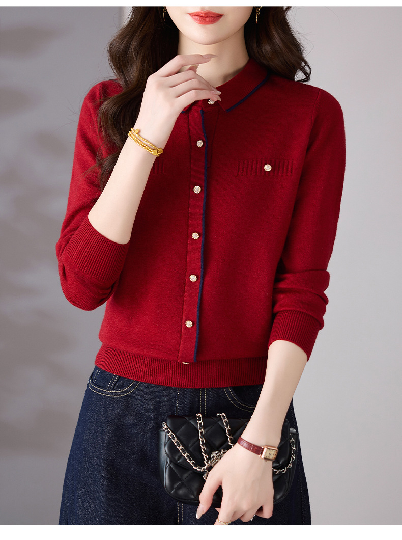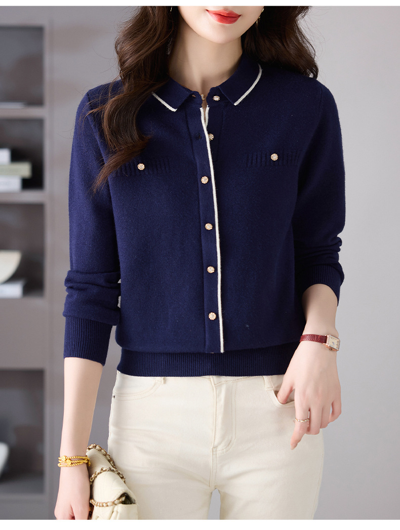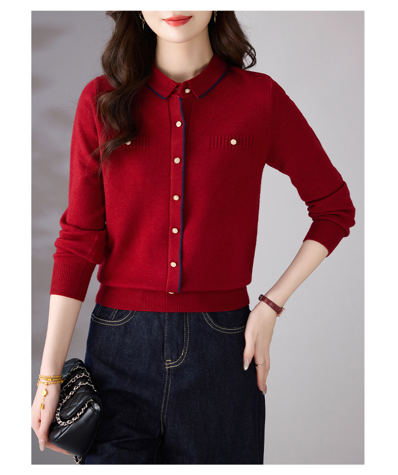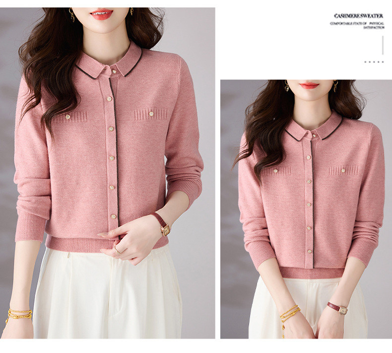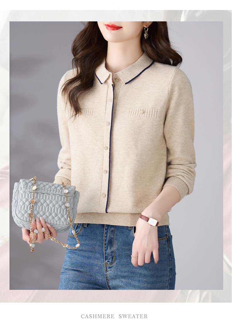 CC翻领长袖上衣秋装女款2025年新款polo针织衫洋气漂亮毛衣打底小衫
