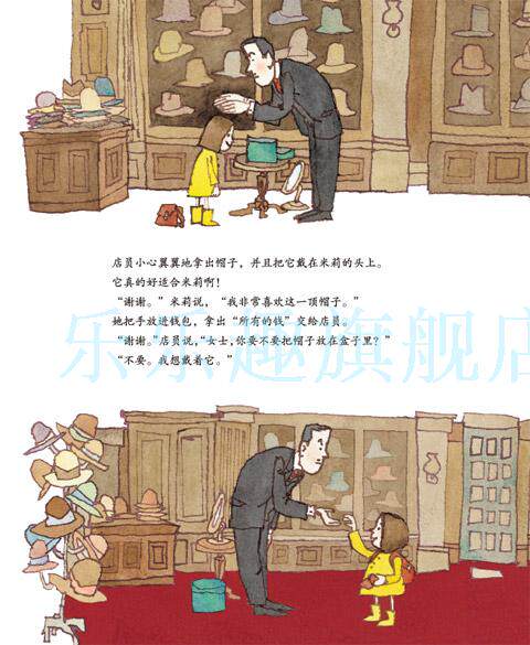 米莉看上了商店橱窗里一定非常漂亮的帽子,可是没有钱买。