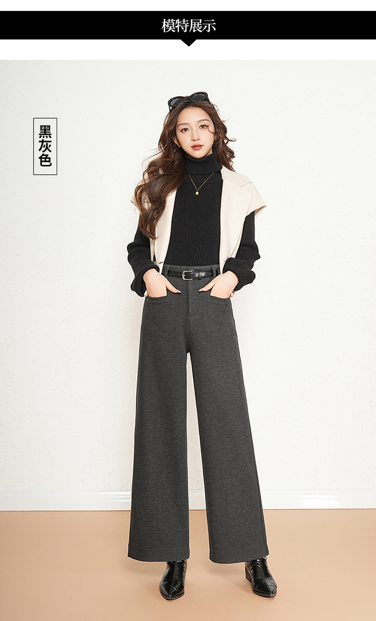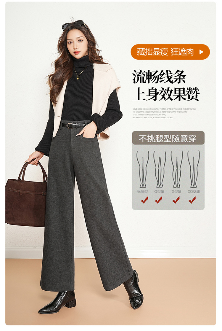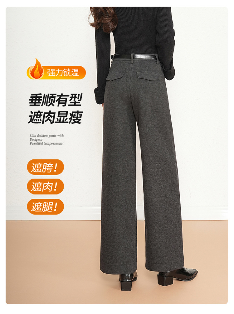 「自」全新升级【铂金会员201/天猫269/差价68】(05037)洛诗琳气质高腰阔腿裤2025冬季显瘦百搭加绒直筒休闲裤女