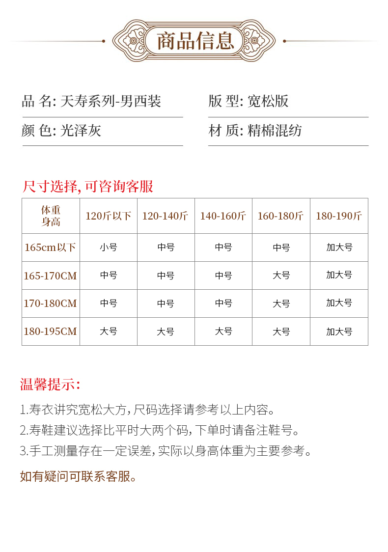 天寿系列-男西装(光泽灰)