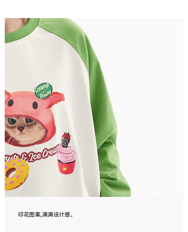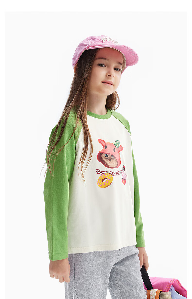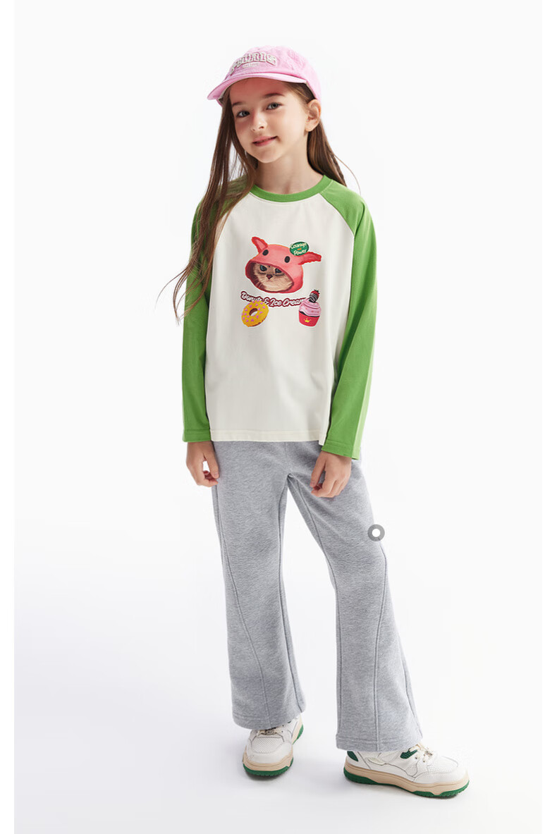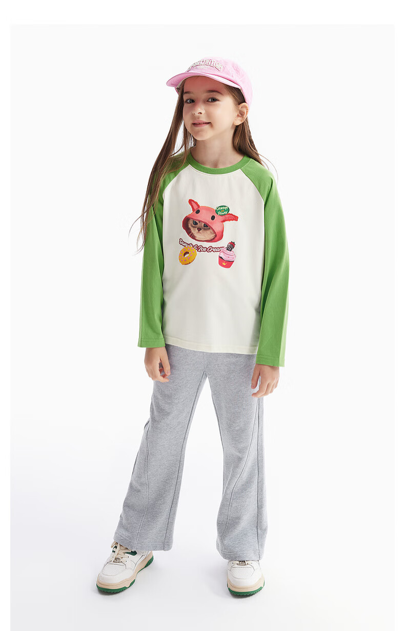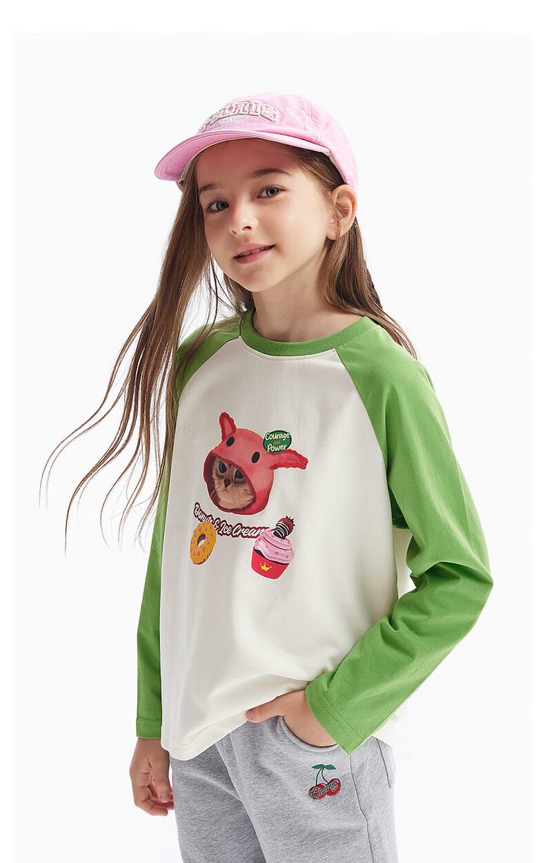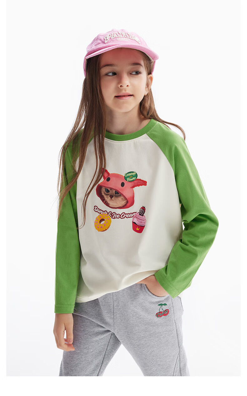 【MQD】童装女童秋款插肩袖印花甜美长袖T恤