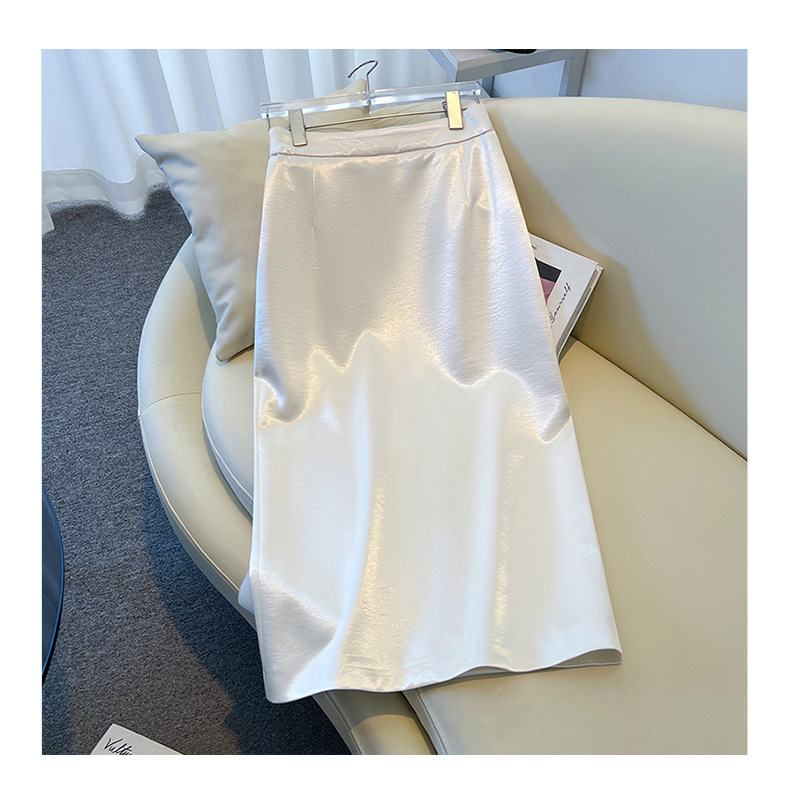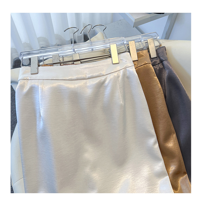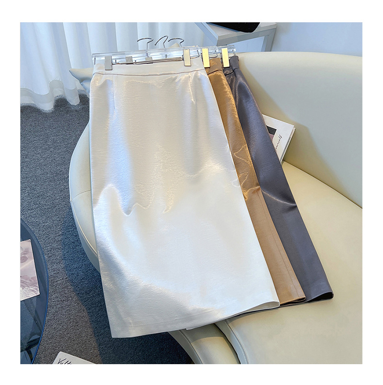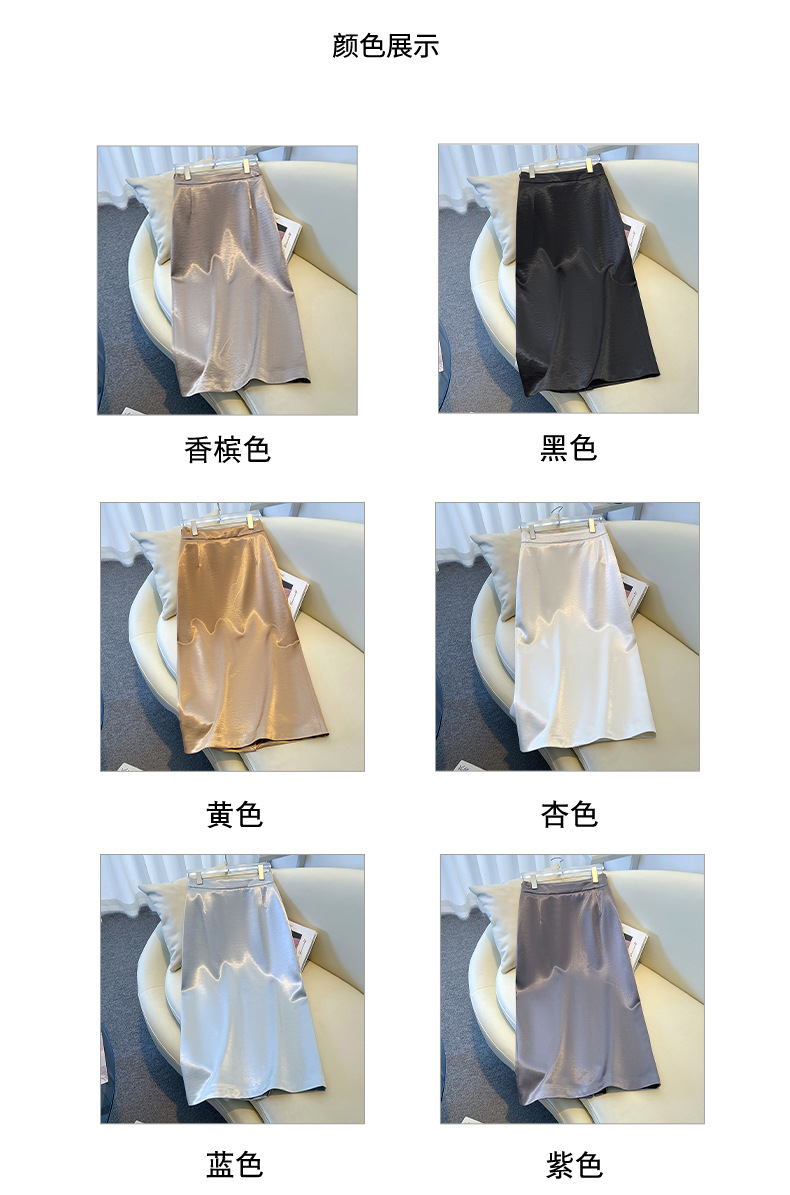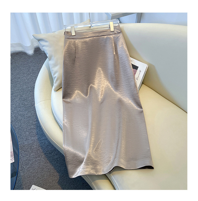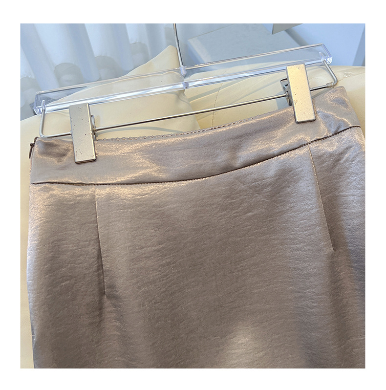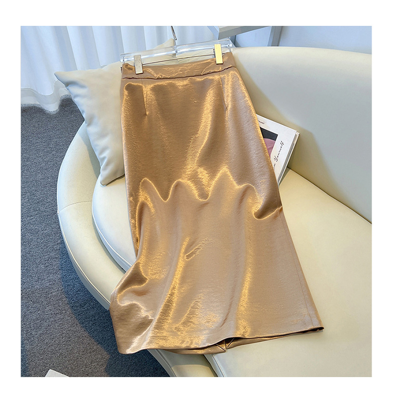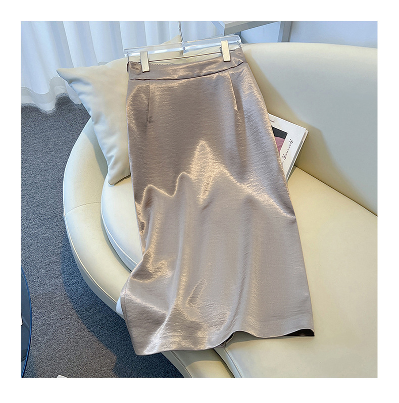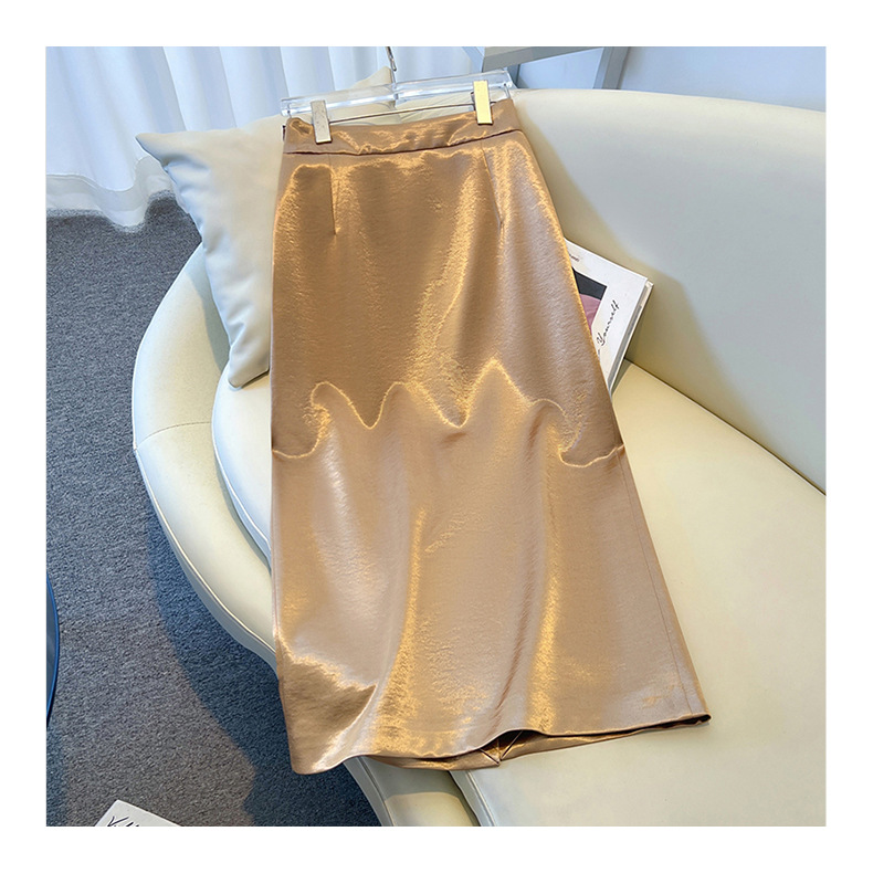 丁摩 香槟色缎面半身裙女春秋新款高腰垂感a字裙气质醋酸直筒裙子5ZF-2658