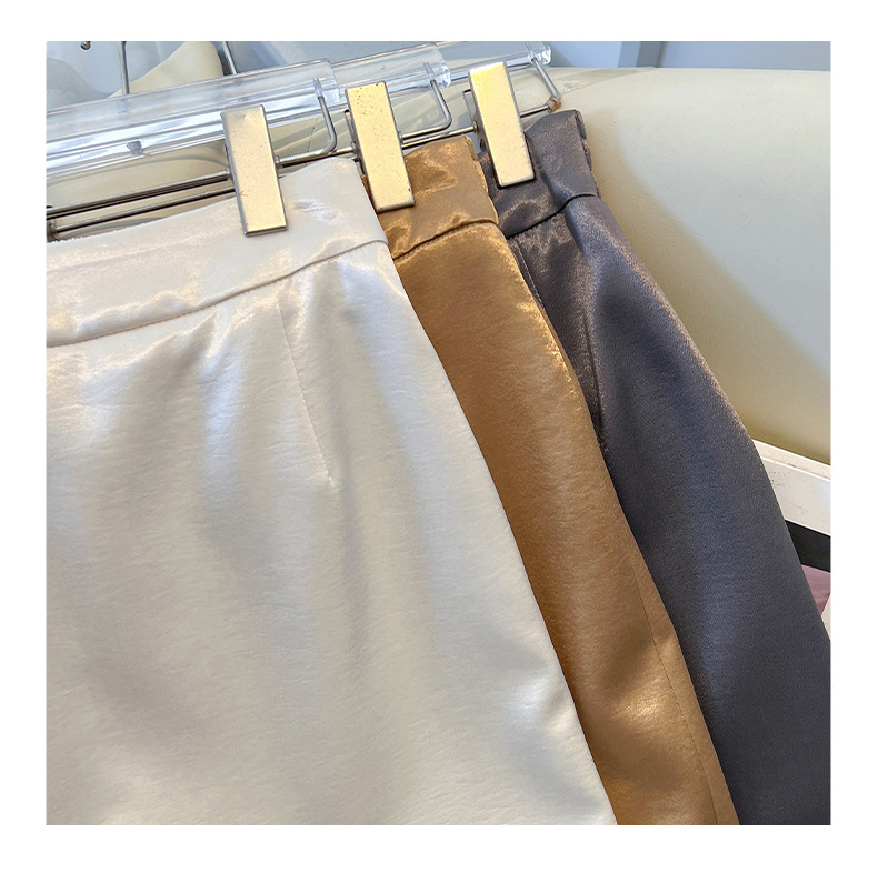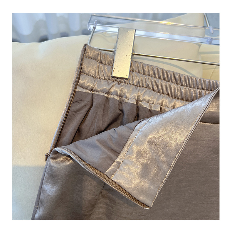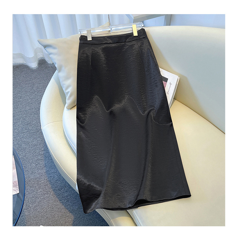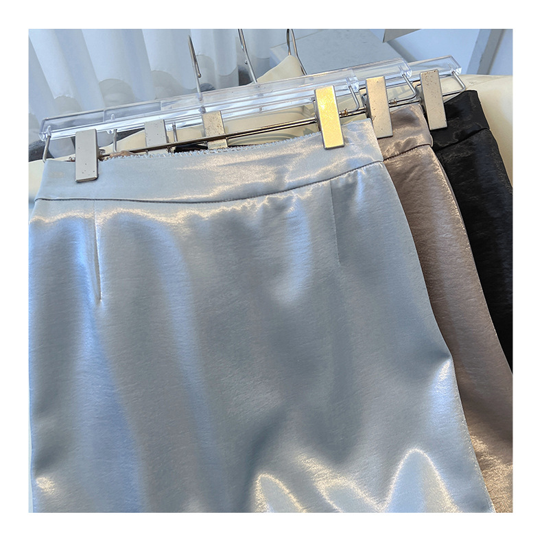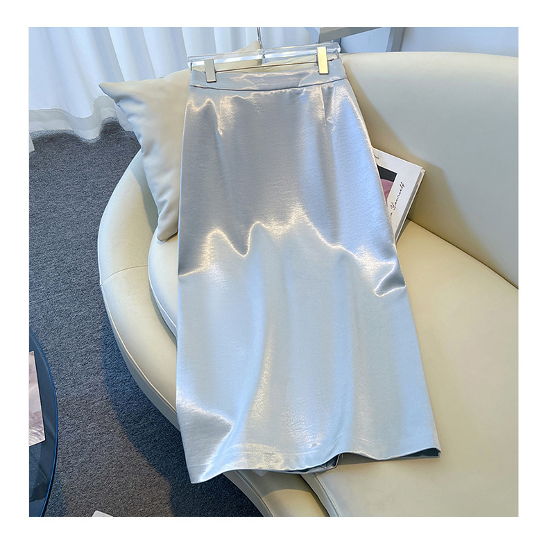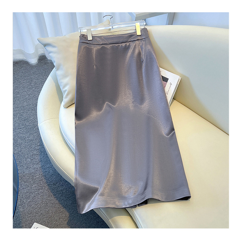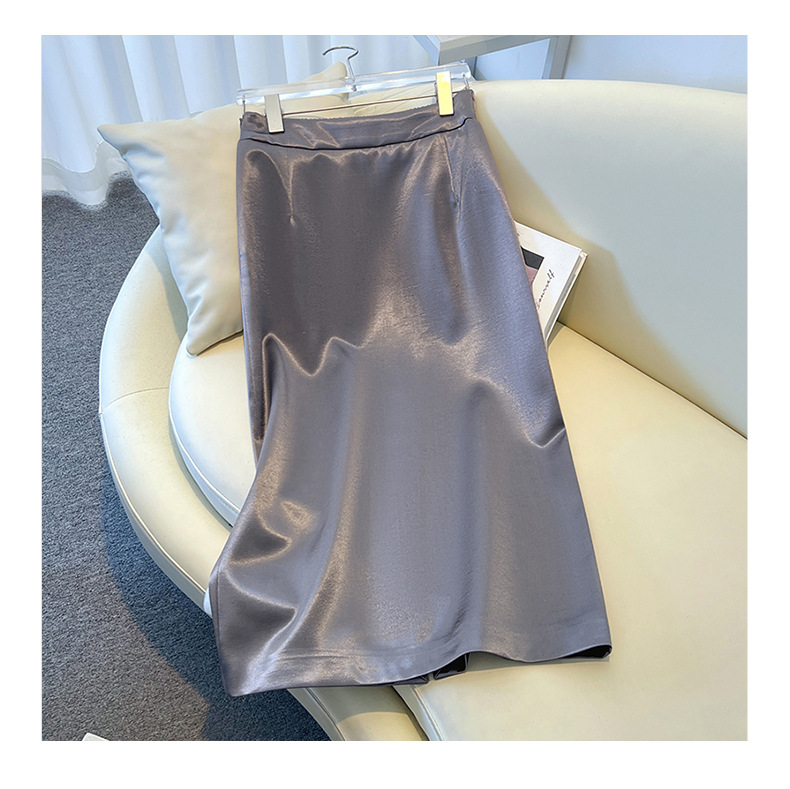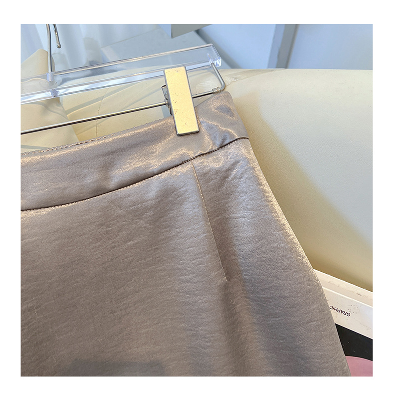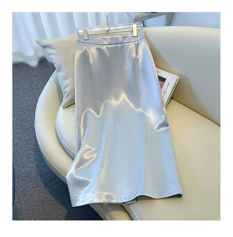 丁摩 香槟色缎面半身裙女春秋新款高腰垂感a字裙气质醋酸直筒裙子5ZF-2658