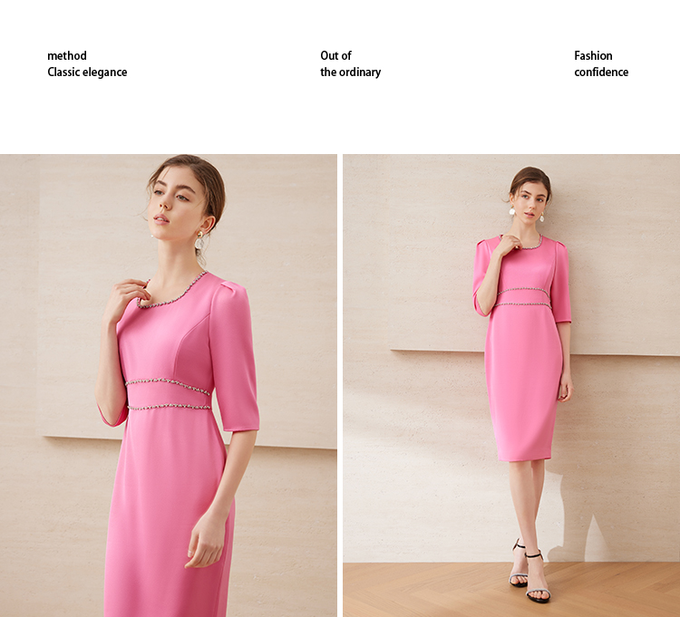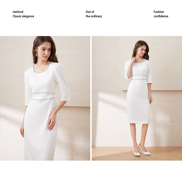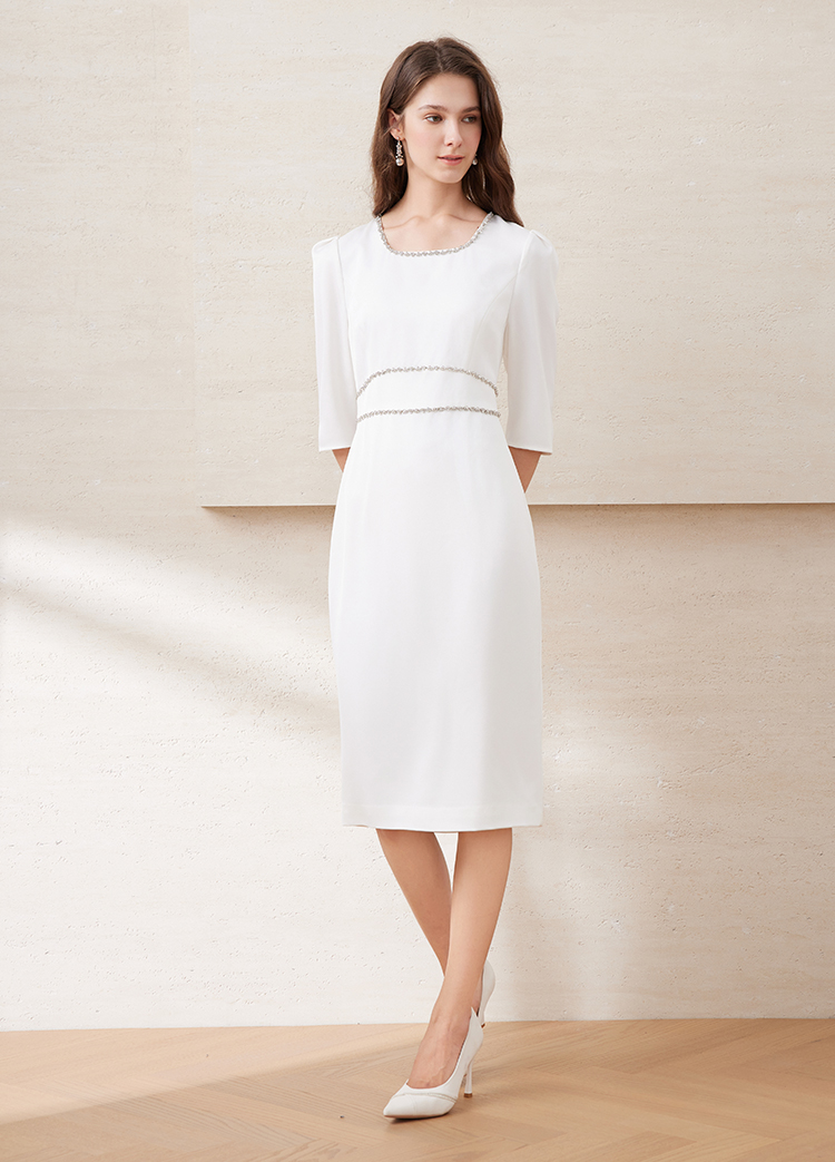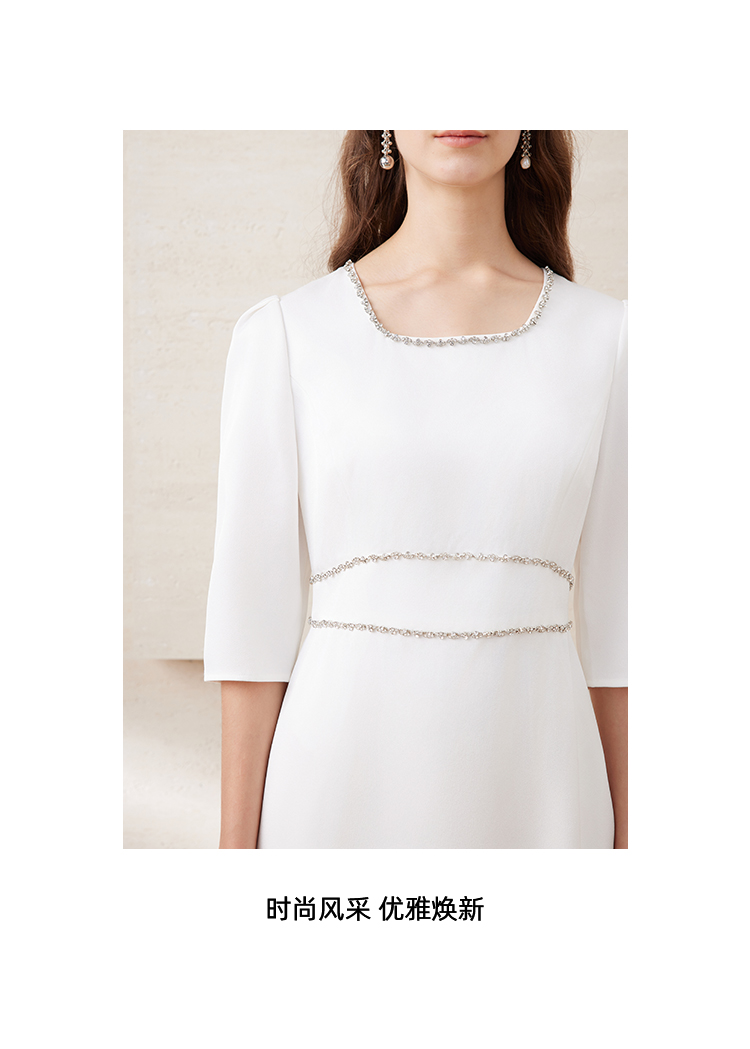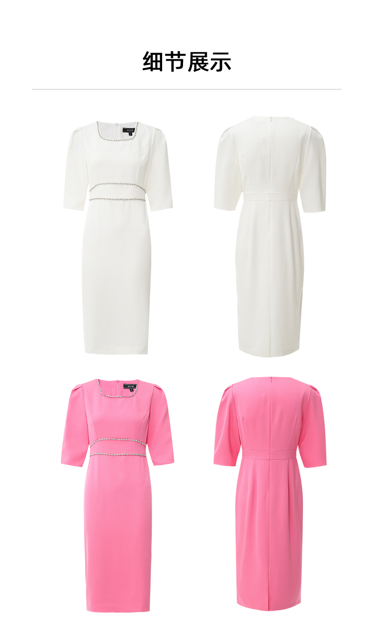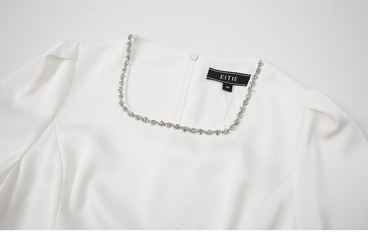EITIE爱特爱春季新款方领气质优雅钉珠收腰显瘦礼服连衣裙7777413