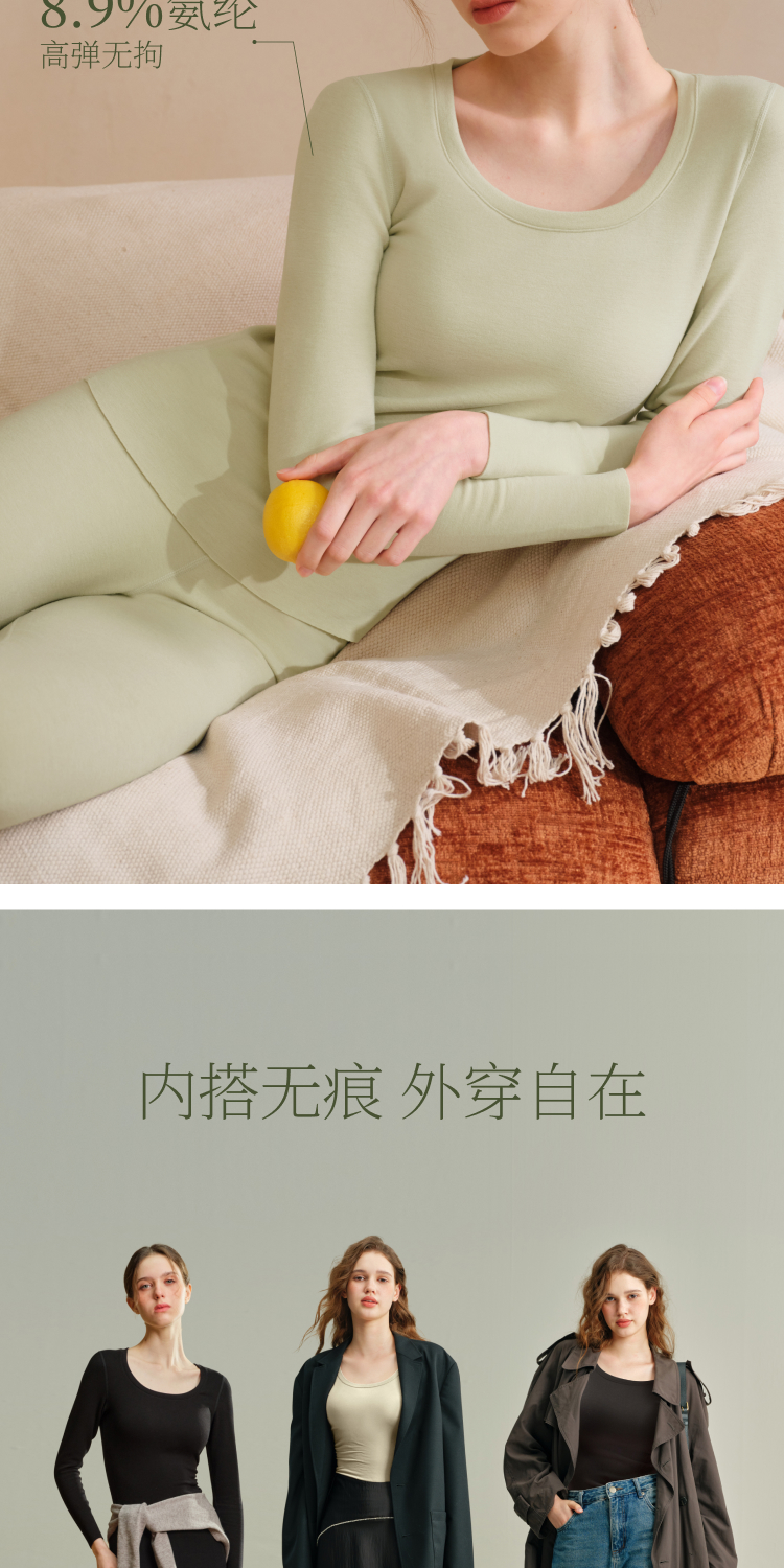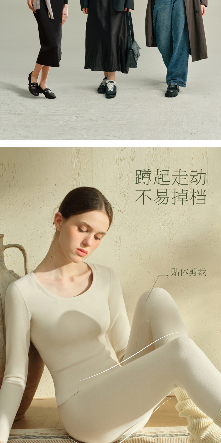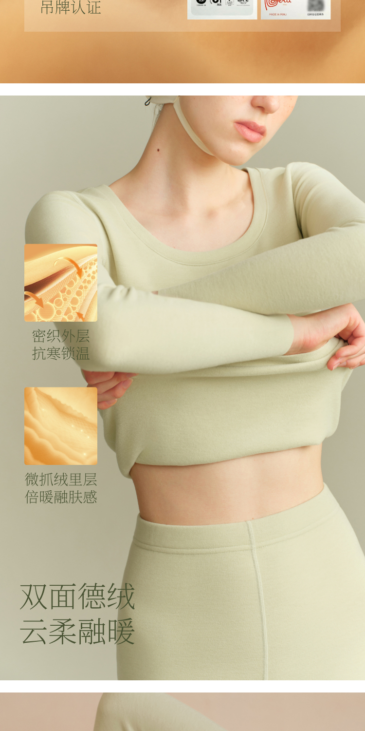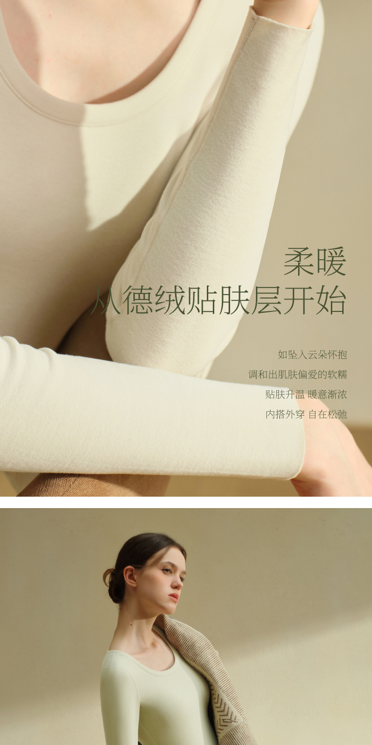 素肌良品【小暖云】德绒保暖套装女加绒加厚保暖背心发热秋衣秋裤WC060