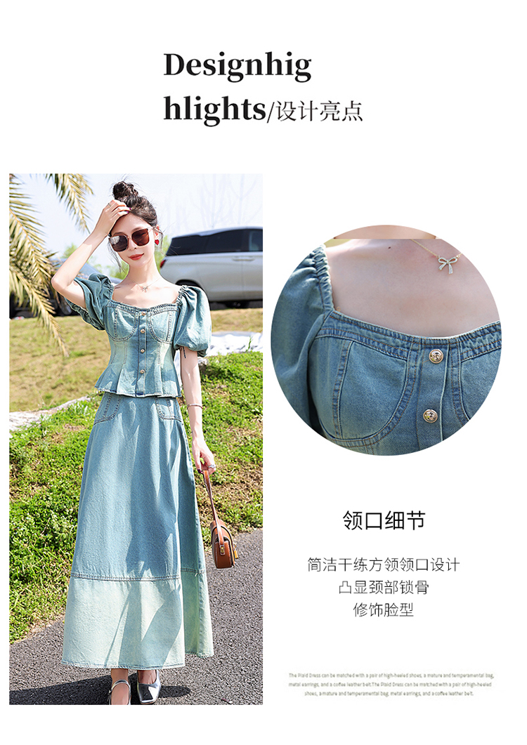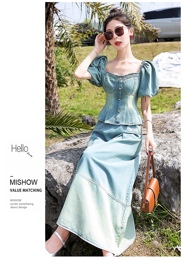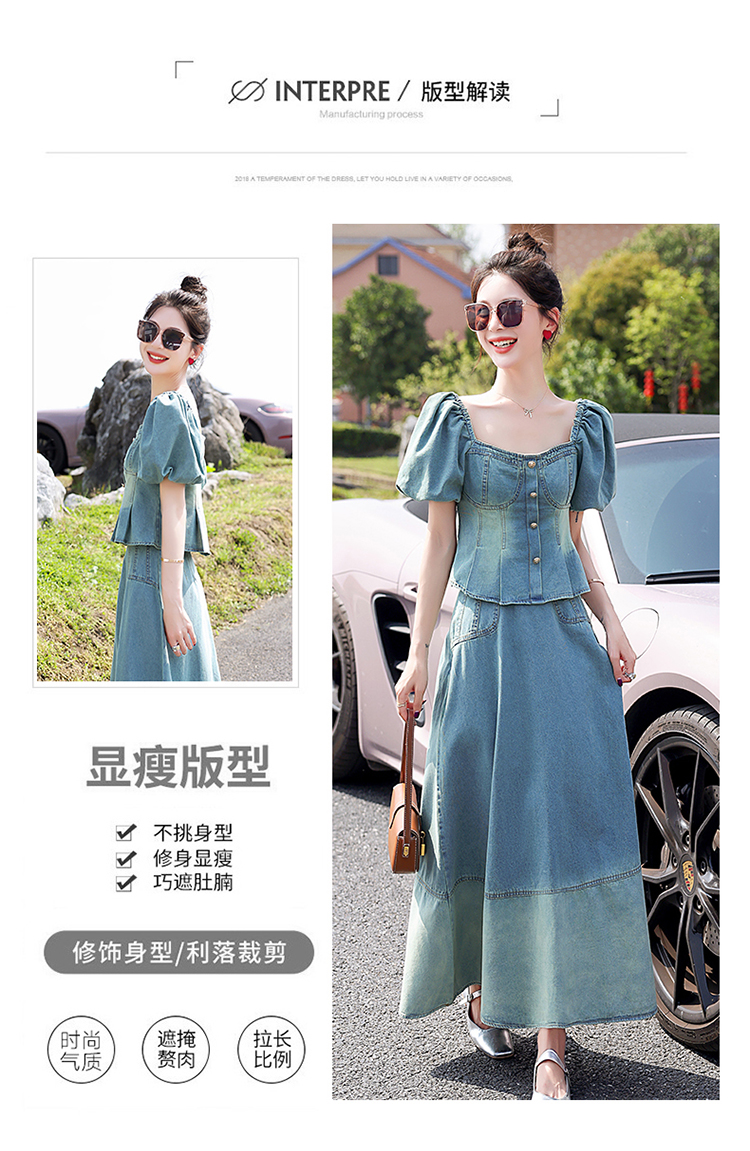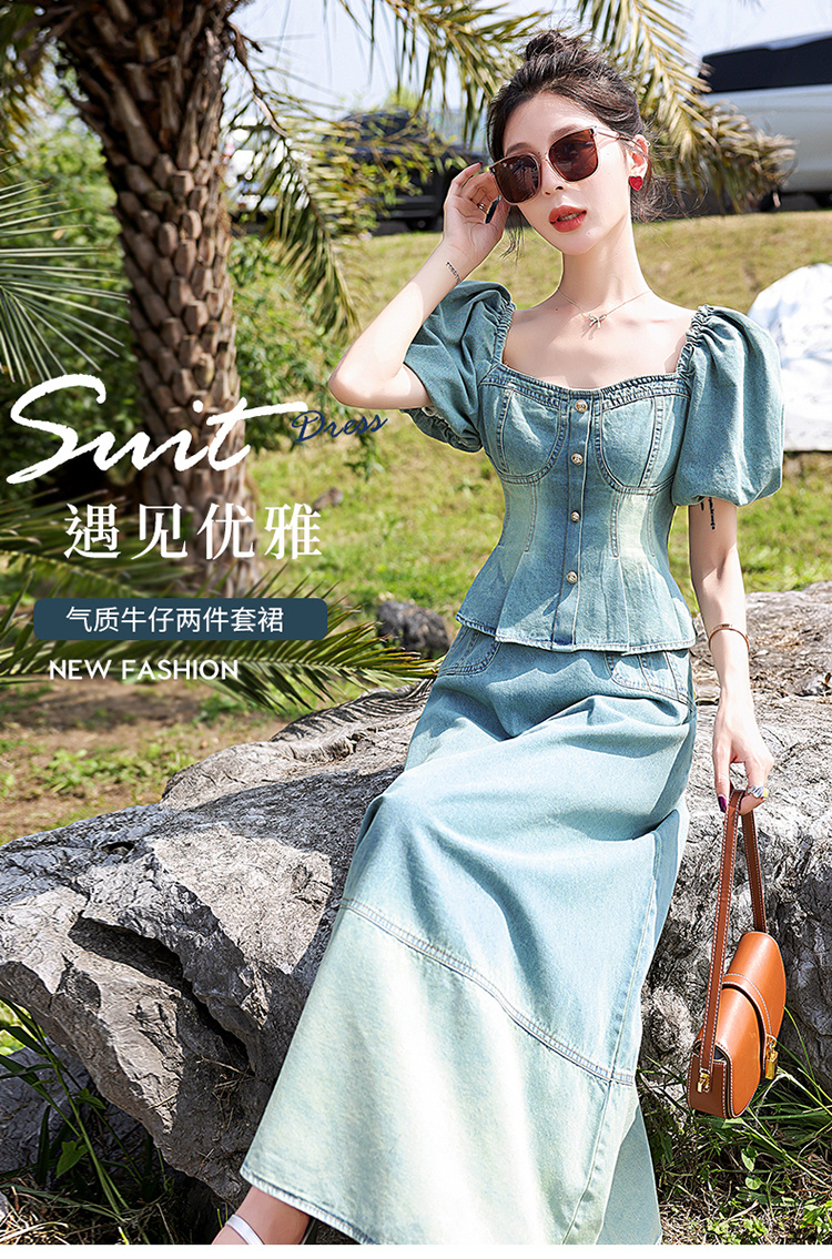 夏季新款,女装时尚气质显瘦炒洗色牛仔两件套HR-HMGF1922-1