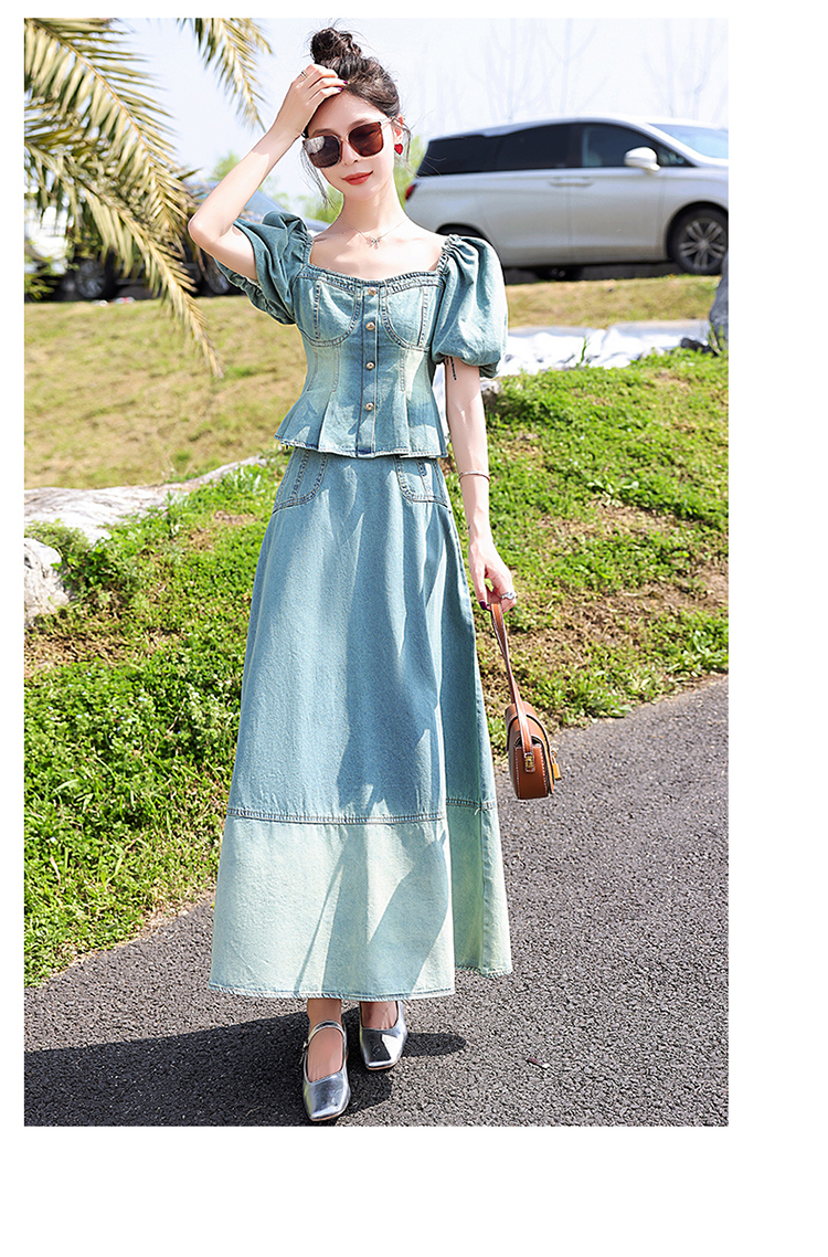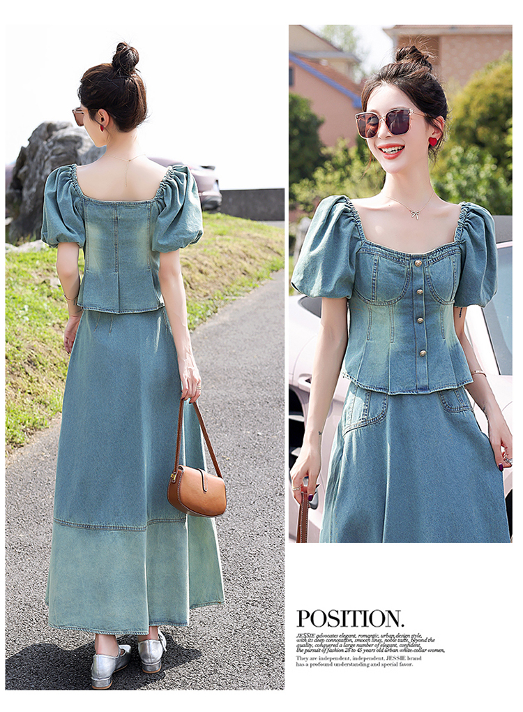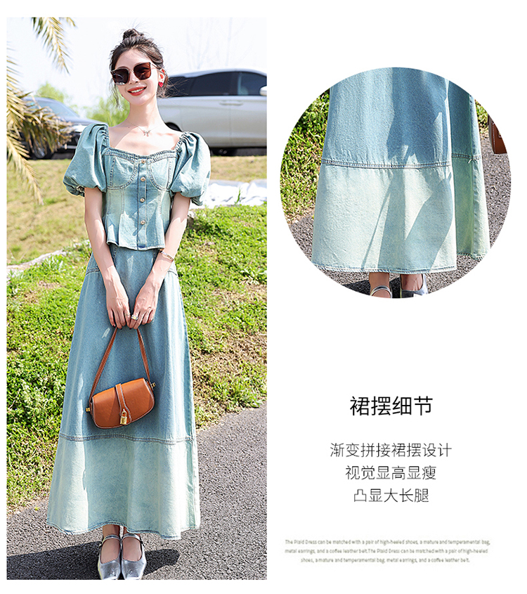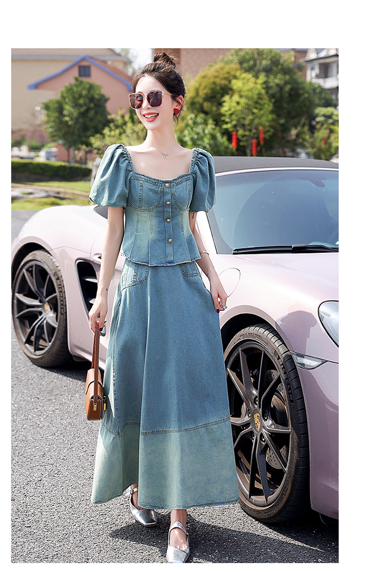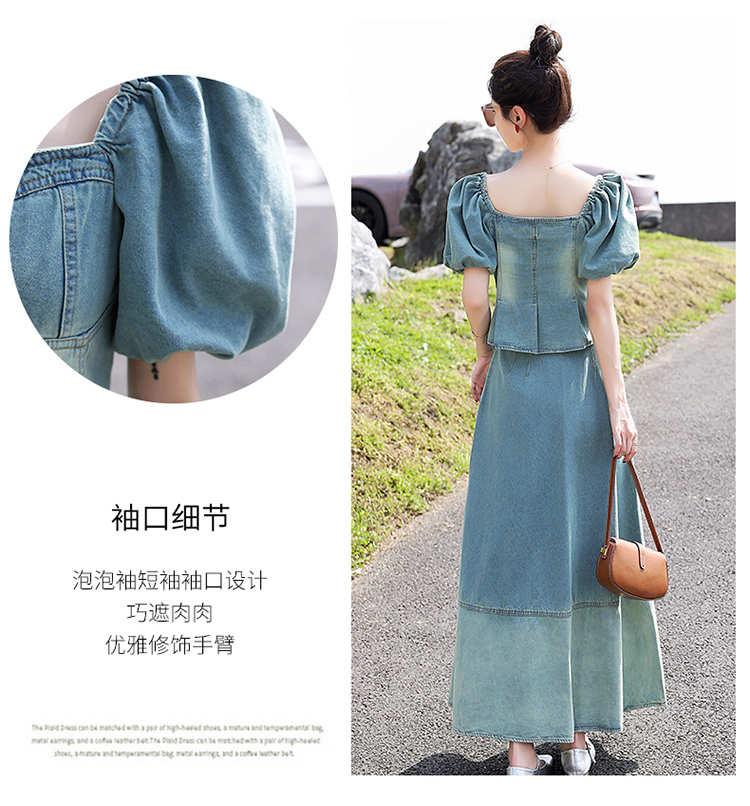 夏季新款,女装时尚气质显瘦炒洗色牛仔两件套HR-HMGF1922-1
