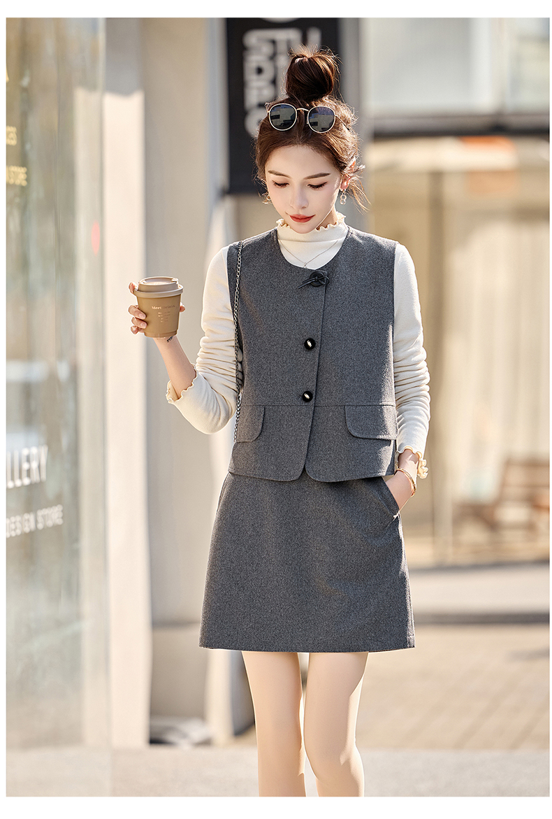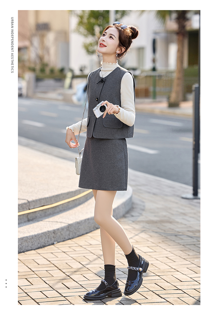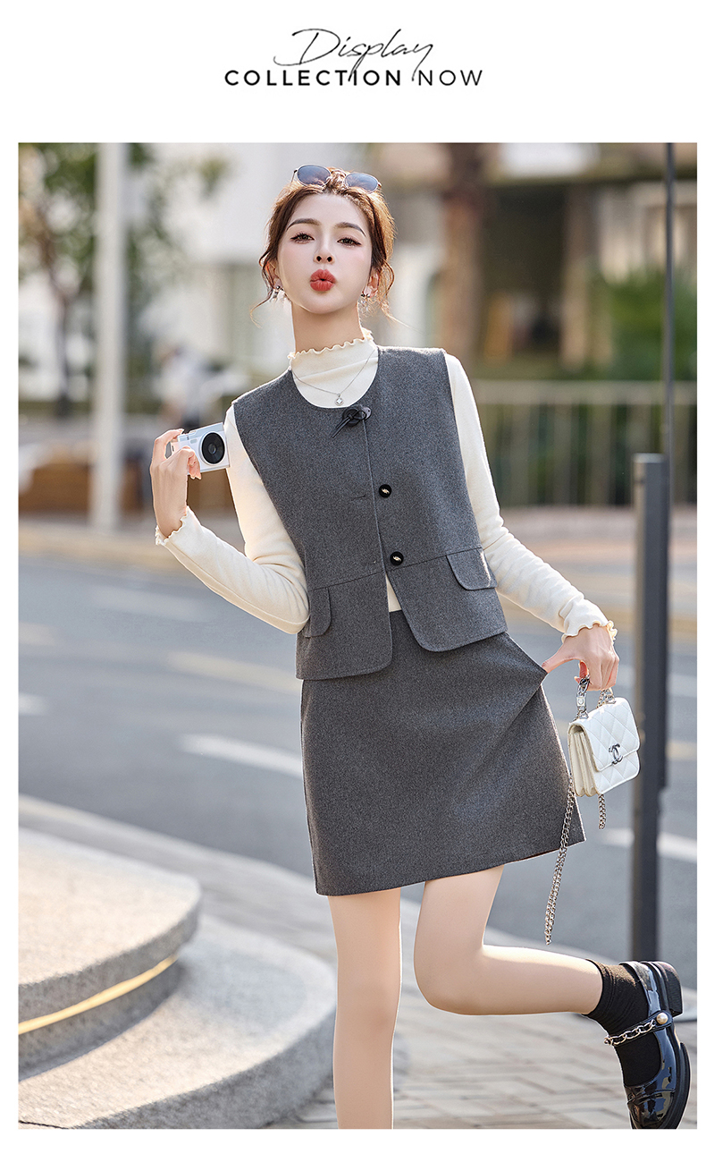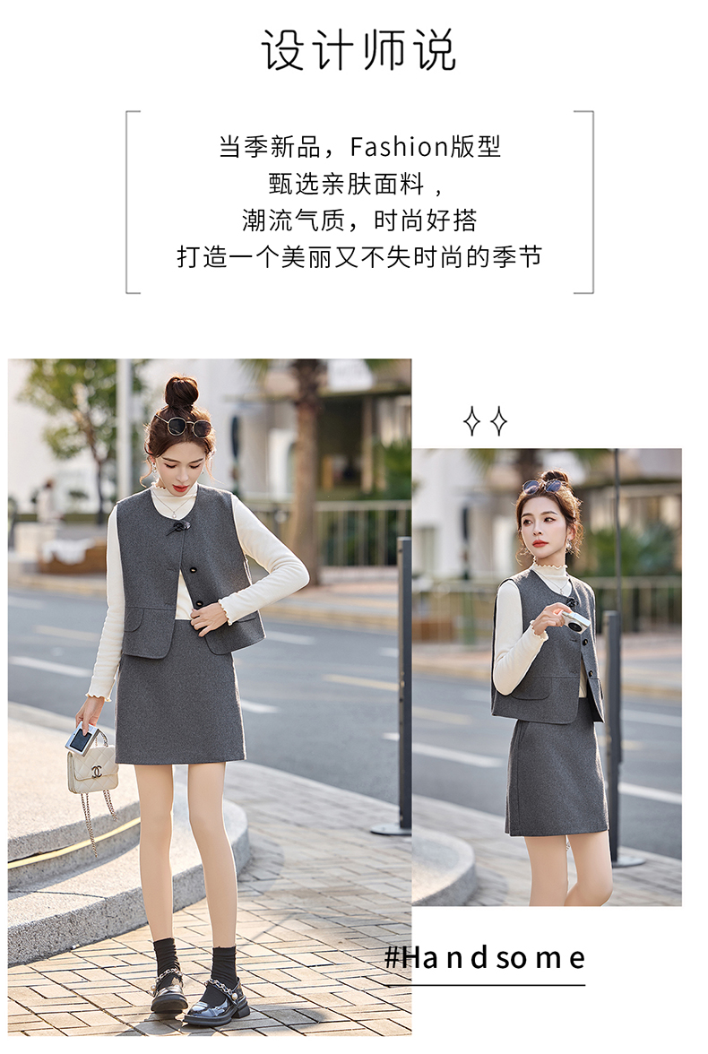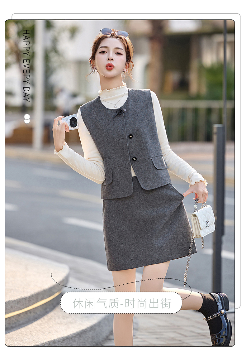 短款马甲裙子套装,超火穿搭一整套小个子减龄三件套HR-2669