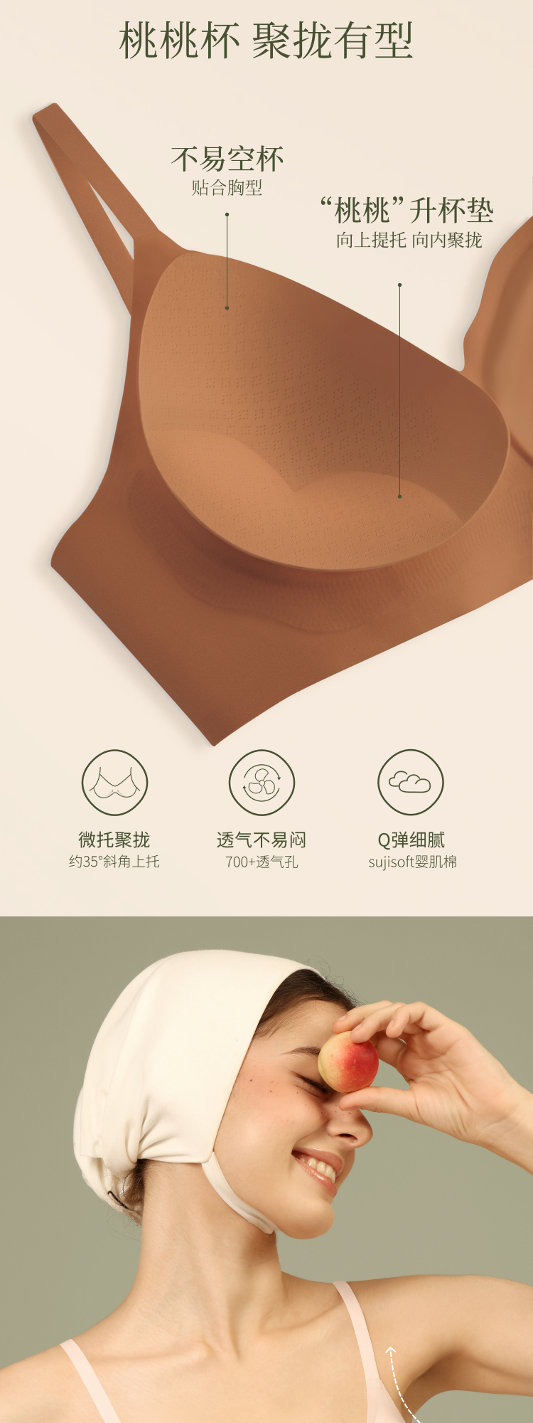 素肌良品 【微风桃桃】无钢圈内衣女聚拢小胸显大软支撑无痕文胸薄款MX225