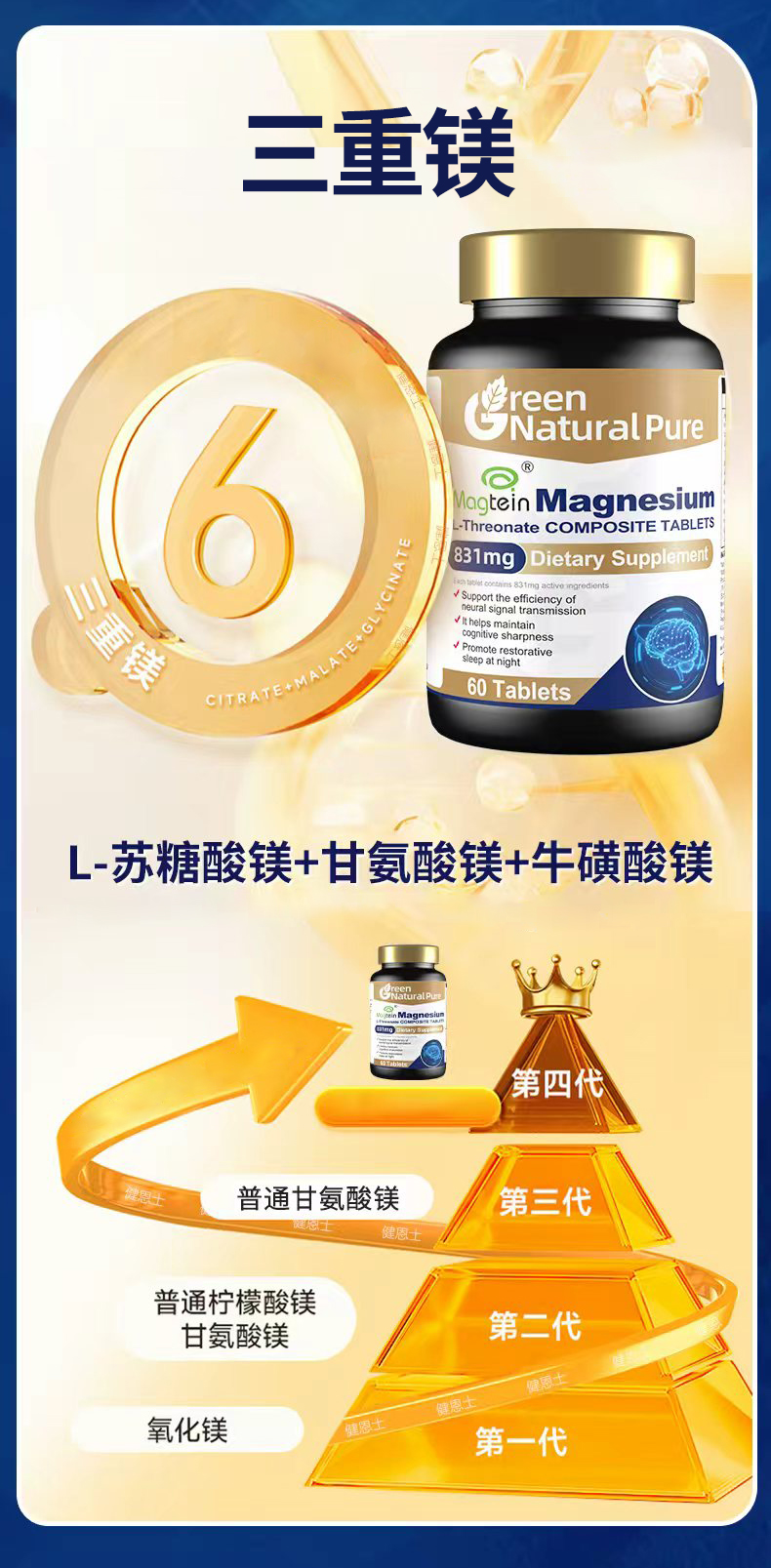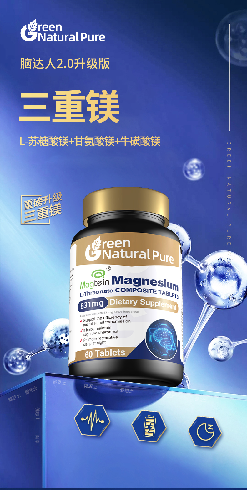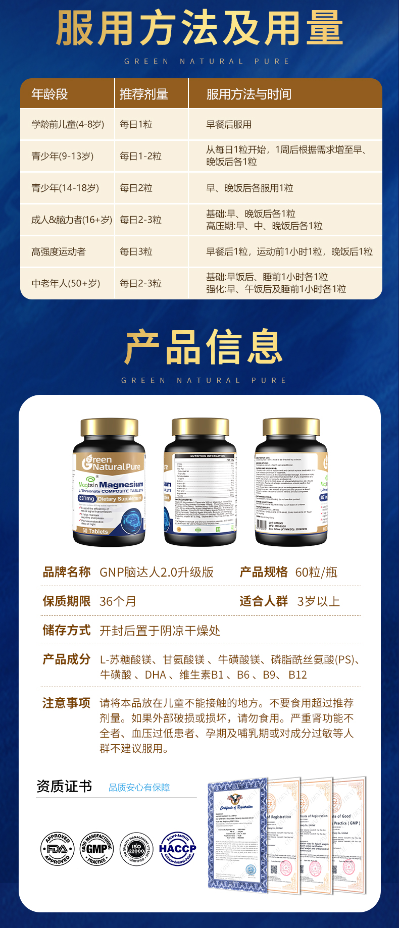 GNP脑达人2.0复合镁补充片剂儿童成人L-苏糖酸镁甘氨酸镁牛磺酸镁